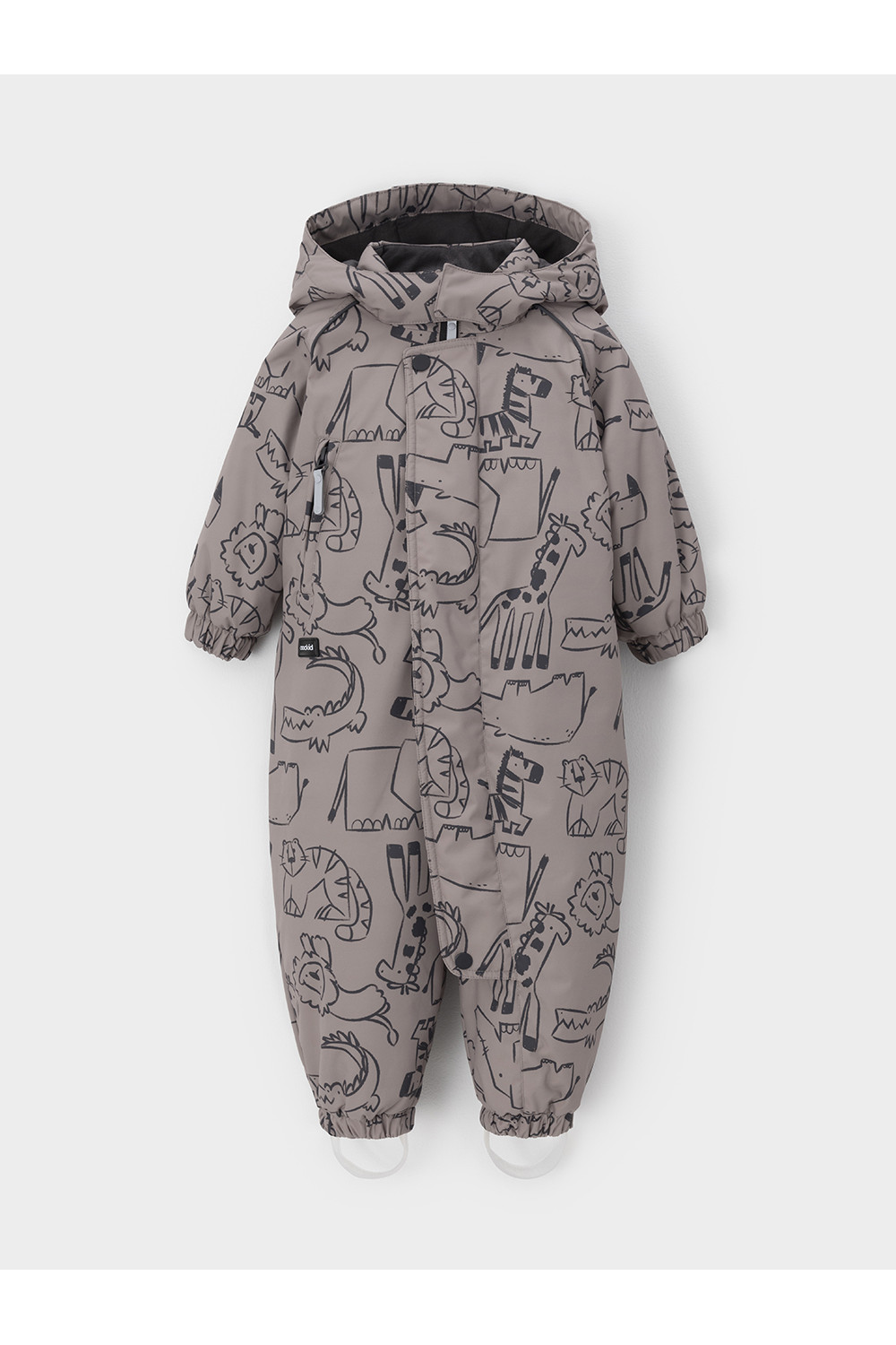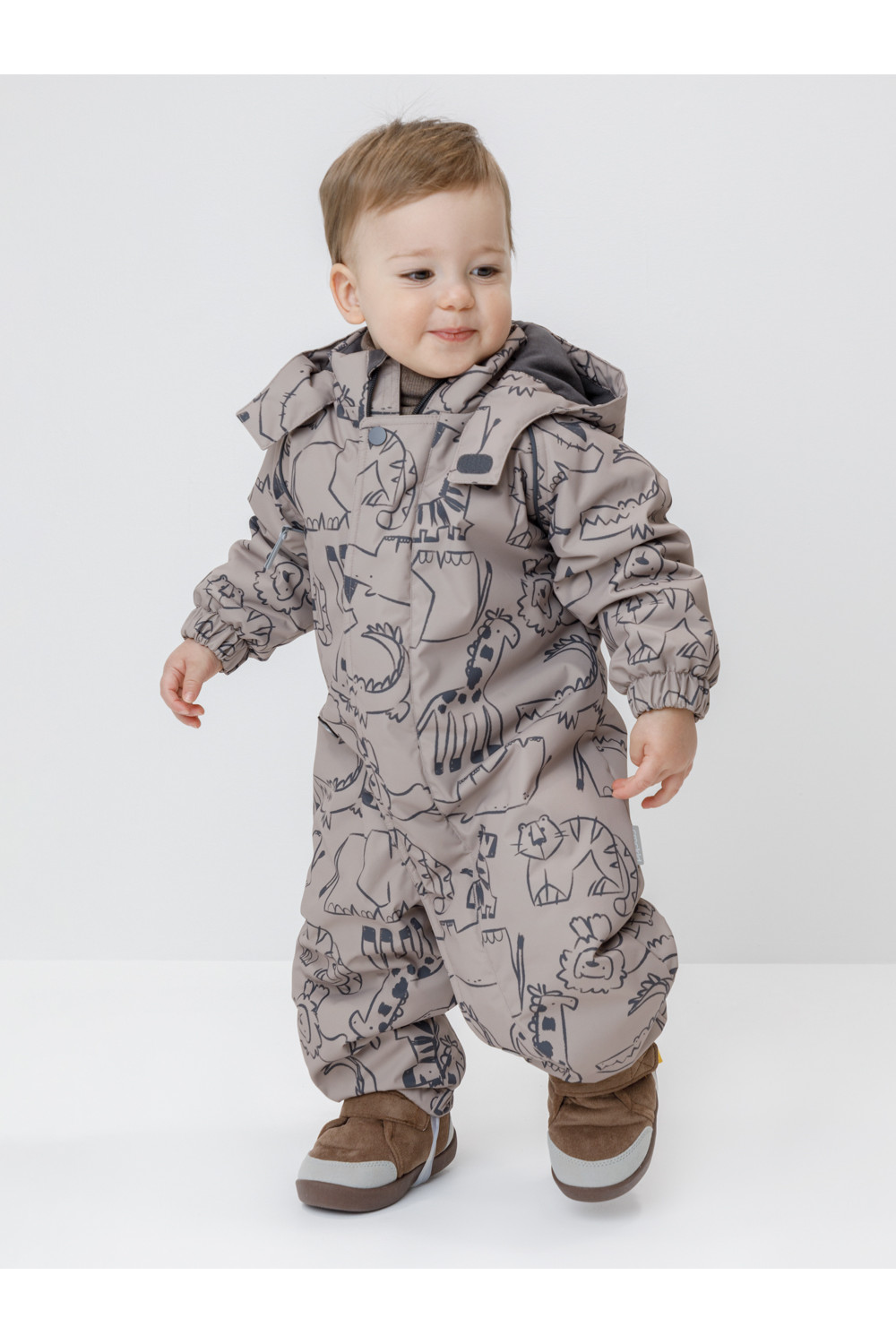 Демисезонный комбинезон ясельный с утеплителем Fellex®, 120 г/м2. Выполнен из мембранной ткани с дополнительной тефлоновой обработкой. Данный вид обработки предохраняет изделие от загрязнения и лучше отводит влагу. Подклад из 100% хлопка. Для удобного одевания комбинезон застёгивается на удлинённую молнию с защитой подбородка. Ветрозащитная планка фиксируется на липучках и кнопках. Утяжка на капюшоне с потайным стоппером. По низу рукавов и брючин, а также на спинке изделия предусмотрены эластичные резинки для лучшего прилегания. Для фиксации комбинезона используются съёмные силиконовые штрипки. В размерах 68-74 и 74-80 есть функциональные отвороты на рукавах и брючинах. Во всех изделиях верхнего ассортимента для безопасности ребёнка предусмотрены светоотражающие элементы.
