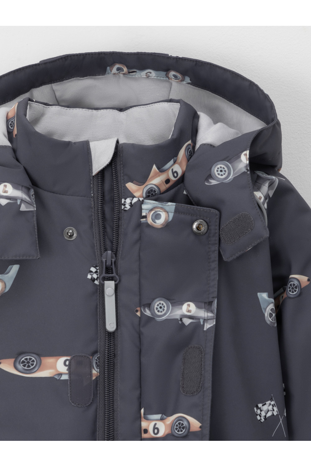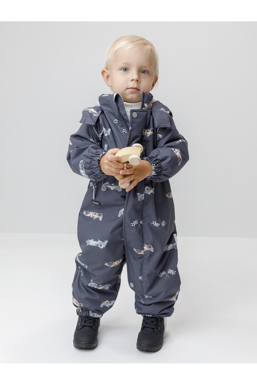 Демисезонный комбинезон ясельный с утеплителем Fellex®, 120 г/м2. Выполнен из мембранной ткани с дополнительной тефлоновой обработкой. Данный вид обработки предохраняет изделие от загрязнения и лучше отводит влагу. Подклад из 100% хлопка. Для удобного одевания комбинезон застёгивается на удлинённую молнию с защитой подбородка. Ветрозащитная планка фиксируется на липучках и кнопках. Утяжка на капюшоне с потайным стоппером. По низу рукавов и брючин, а также на спинке изделия предусмотрены эластичные резинки для лучшего прилегания. Для фиксации комбинезона используются съёмные силиконовые штрипки. В размерах 62-68, 68-74 и 74-80 есть функциональные отвороты на рукавах и брючинах. Во всех изделиях верхнего ассортимента для безопасности ребёнка предусмотрены светоотражающие элементы.