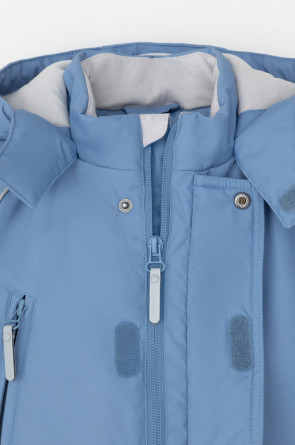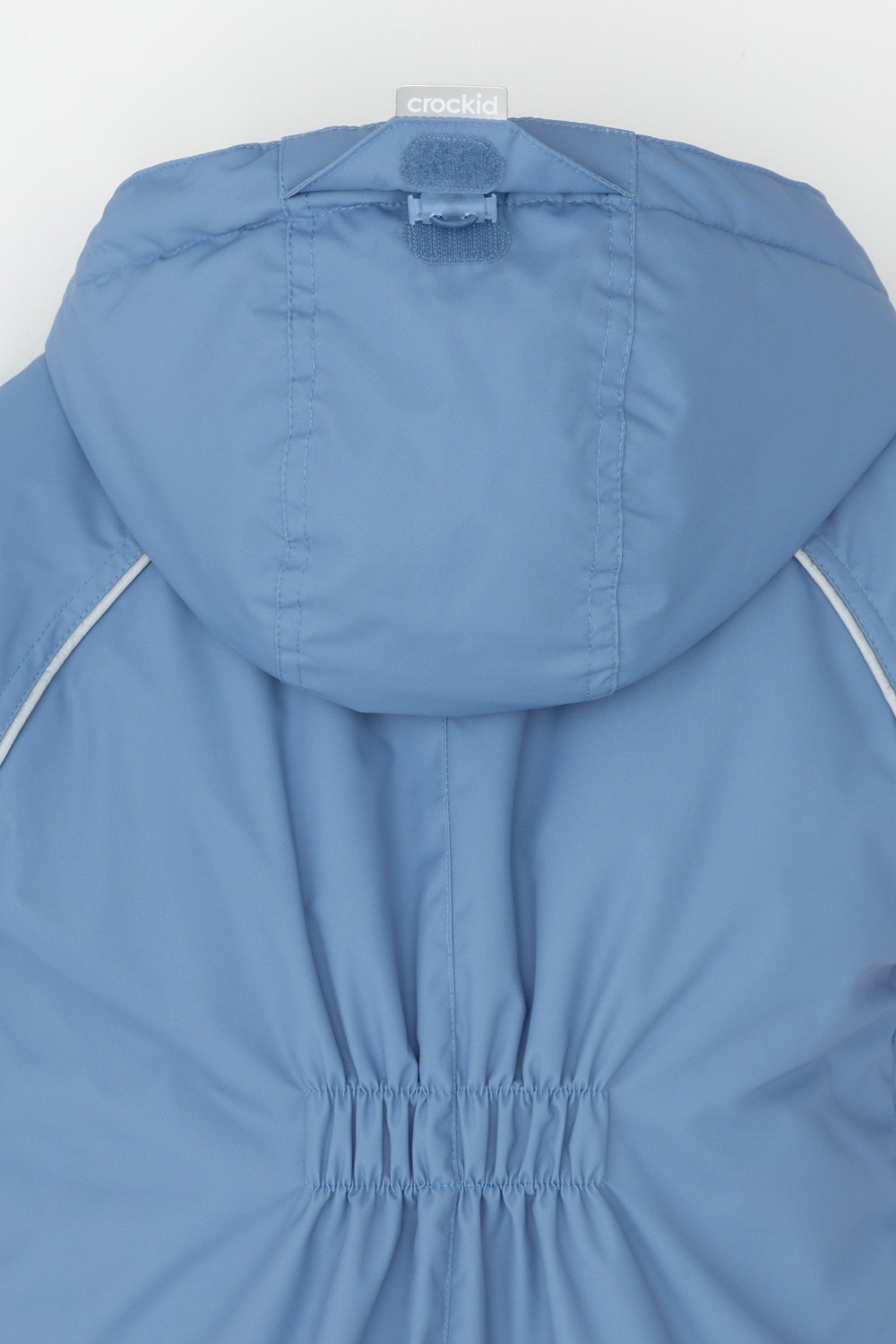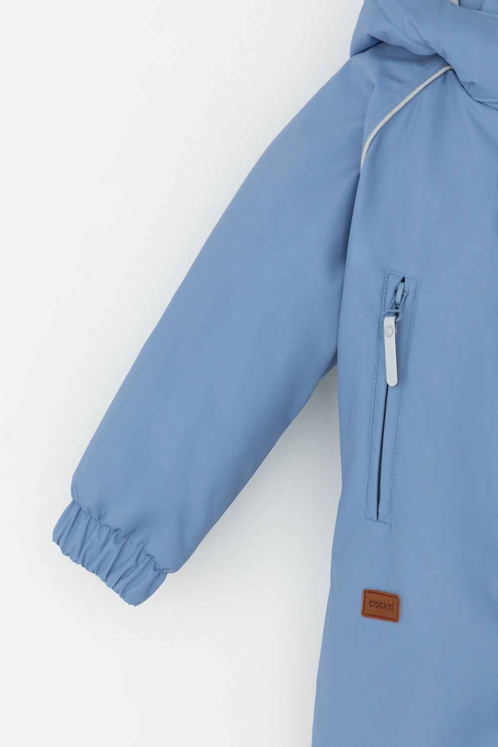 Демисезонный комбинезон ясельный с утеплителем Слайтекс Найс® 120 г/м2. Выполнен из мембранной ткани с дополнительной тефлоновой обработкой. Данный вид обработки предохраняет изделие от загрязнения и лучше отводит влагу. Подклад из 100% хлопка. Удлиненная молния для легкого одевания с защитой подбородка. Ветрозащитная планка фиксируется на липучках и кнопках. Утяжка на капюшоне с потайными стопперами. По низу рукавов и брючин, а также на спинке изделия предусмотрена эластичная резинка для лучшего прилегания. Для фиксации комбинезона используются съемные силиконовые штрипки. В размерах 74-80 функциональные отвороты на рукавах и брючинах. Во всех изделиях верхнего ассортимента для безопасности ребенка предусмотрены светоотражающие элементы.