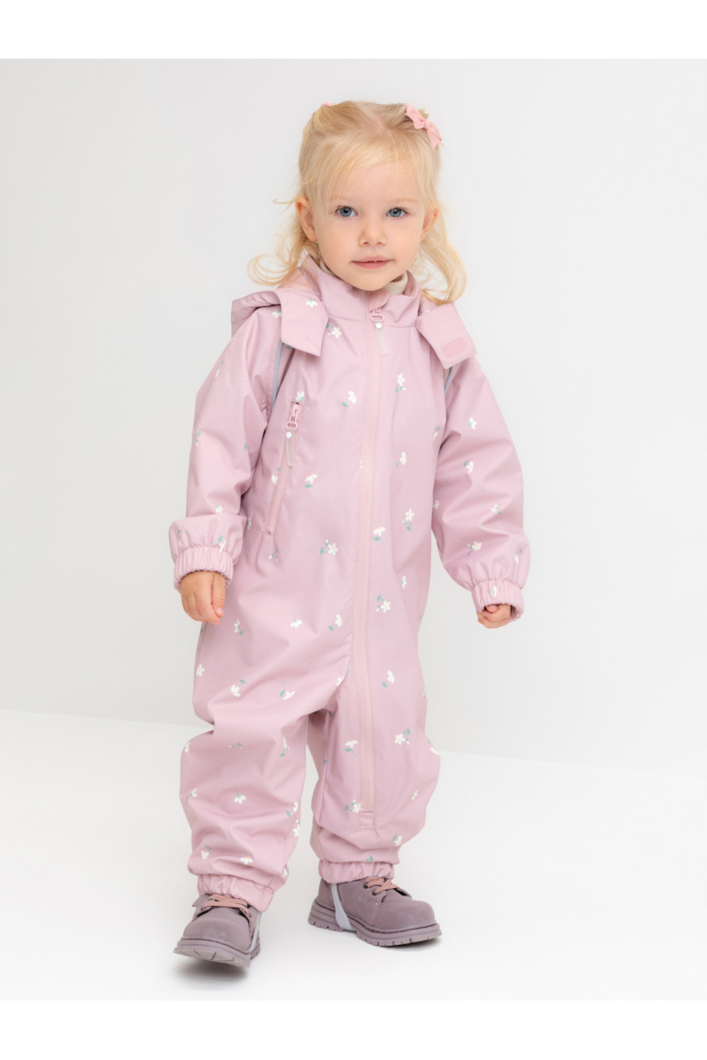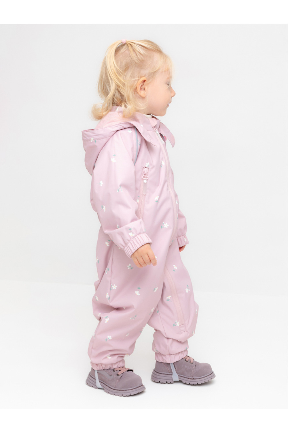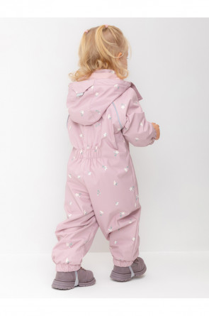 Ветровочный комбинезон ясельный из мембранной ткани с дополнительной тефлоновой обработкой. Данный вид обработки предохраняет изделие от загрязнения и лучше отводит влагу. Подклад из 100% хлопка. У изделия удлиненная молния для легкого одевания с защитой подбородка. Утяжка на капюшоне с потайными стопперами. По низу рукавов и брючин, а также на спинке изделия эластичная резинка для лучшего прилегания. Для фиксации комбинезона используются съемные силиконовые штрипки. В размерах 68-80 функциональные отвороты на рукавах и брючинах. Во всех изделиях верхнего ассортимента для безопасности ребенка предусмотрены светоотражающие элементы.