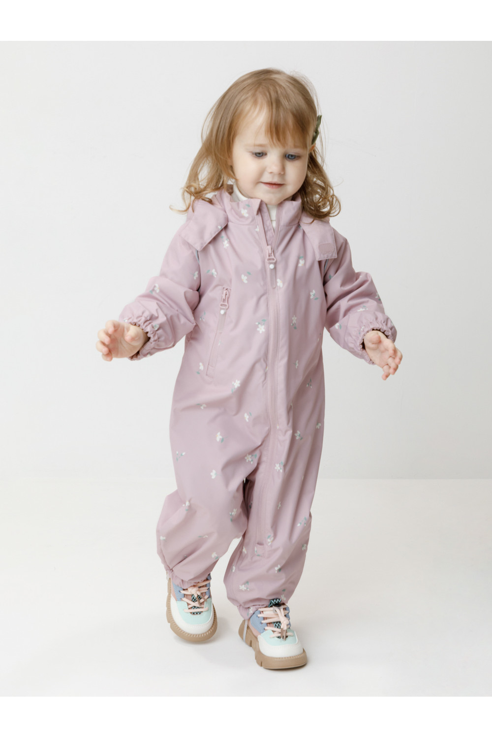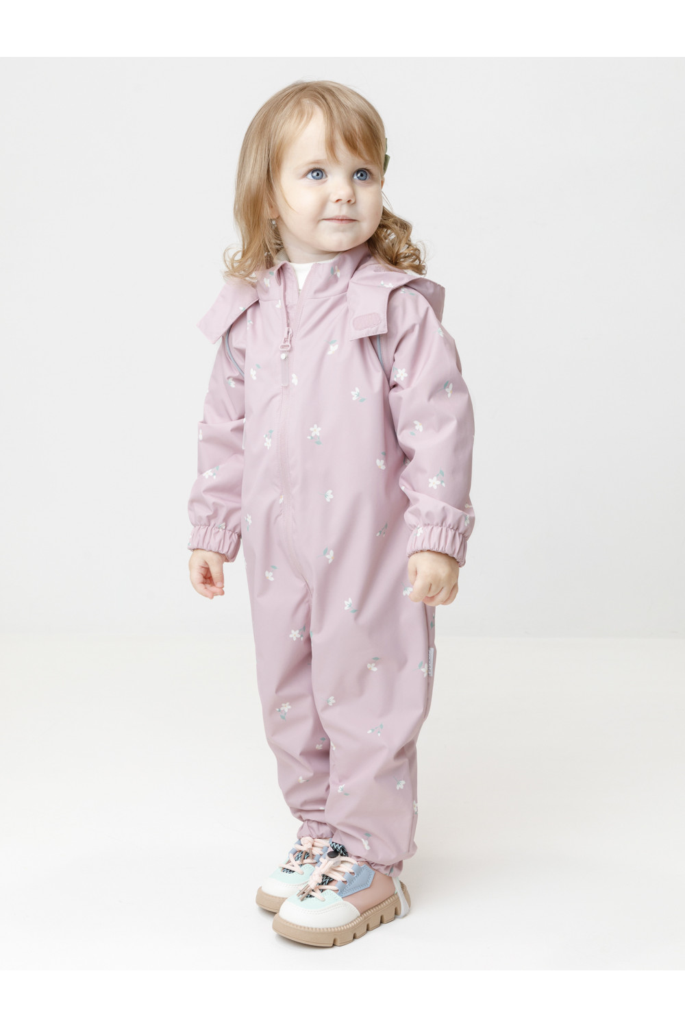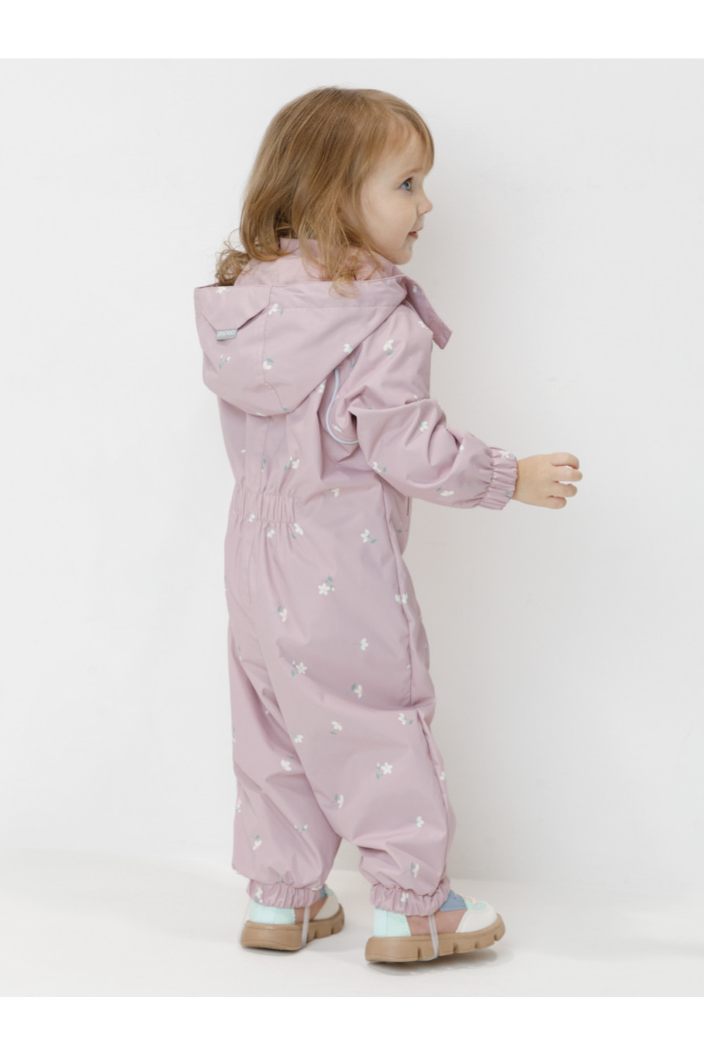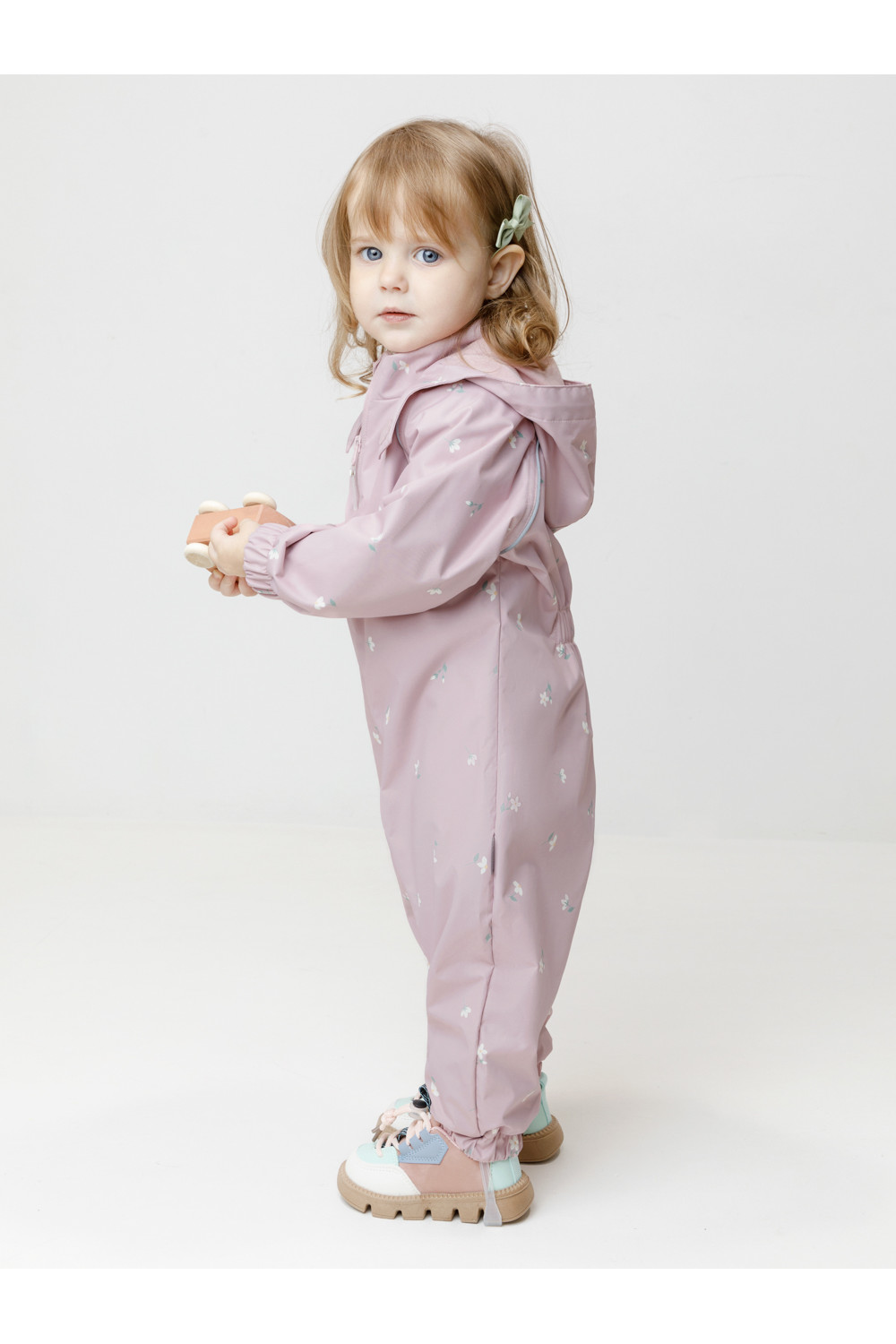 Ветровочный комбинезон ясельный из мембранной ткани с дополнительной тефлоновой обработкой. Данный вид обработки предохраняет изделие от загрязнения и лучше отводит влагу. Подклад из 100% хлопка. У изделия удлиненная молния для легкого одевания с защитой подбородка. Утяжка на капюшоне с потайными стопперами. По низу рукавов и брючин, а также на спинке изделия эластичная резинка для лучшего прилегания. Для фиксации комбинезона используются съемные силиконовые штрипки. В размерах 68-80 функциональные отвороты на рукавах и брючинах. Во всех изделиях верхнего ассортимента для безопасности ребенка предусмотрены светоотражающие элементы.