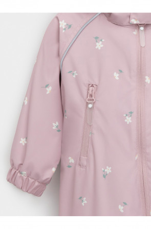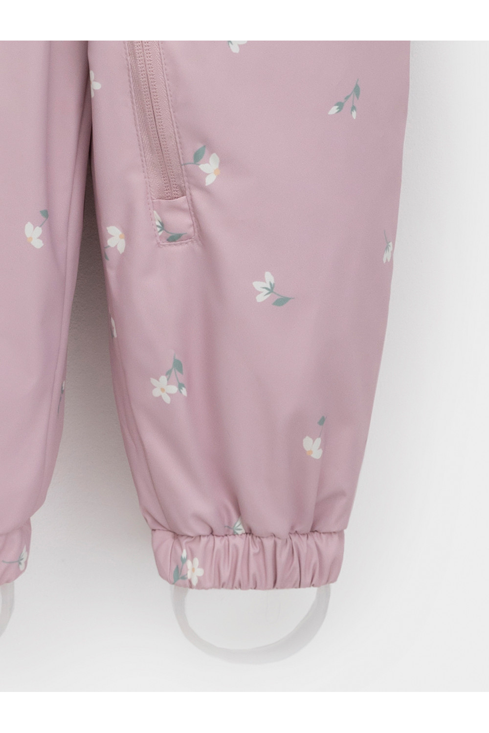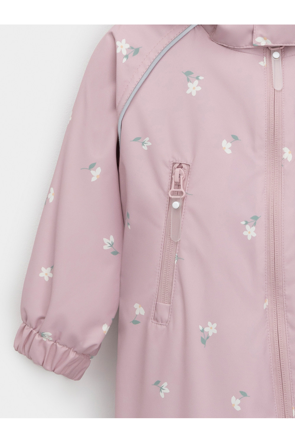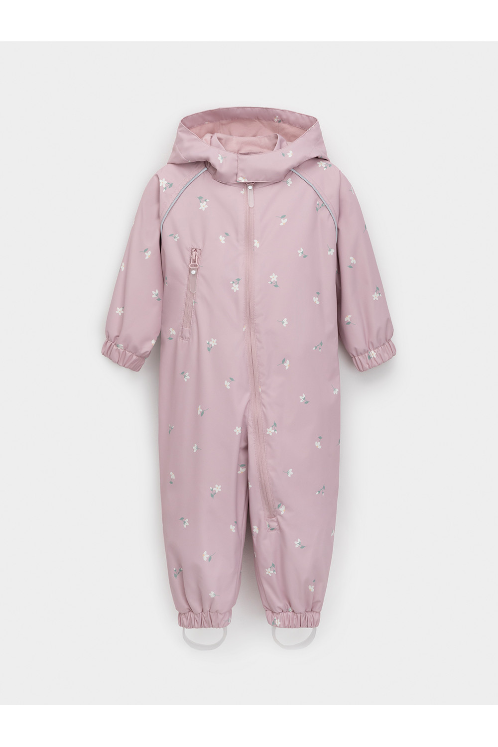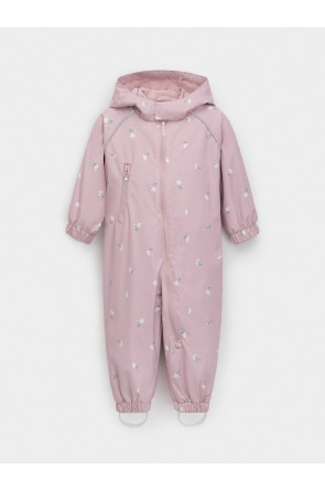 Ветровочный комбинезон ясельный из мембранной ткани с дополнительной тефлоновой обработкой. Данный вид обработки предохраняет изделие от загрязнения и лучше отводит влагу. Подклад из 100% хлопка. У изделия удлиненная молния для легкого одевания с защитой подбородка. Утяжка на капюшоне с потайными стопперами. По низу рукавов и брючин, а также на спинке изделия эластичная резинка для лучшего прилегания. Для фиксации комбинезона используются съемные силиконовые штрипки. В размерах 68-80 функциональные отвороты на рукавах и брючинах. Во всех изделиях верхнего ассортимента для безопасности ребенка предусмотрены светоотражающие элементы.