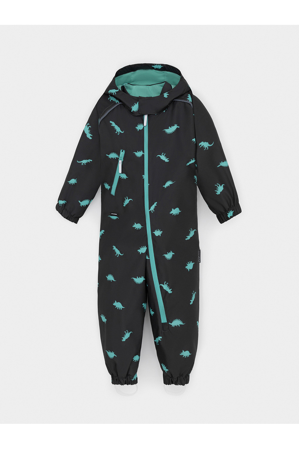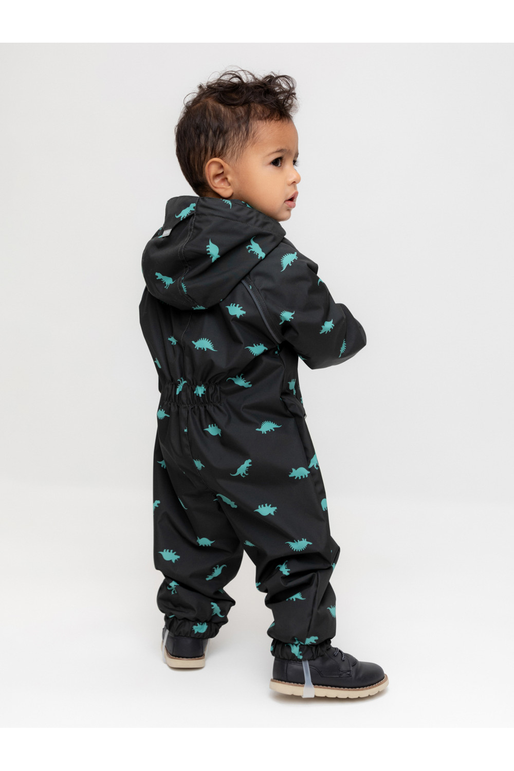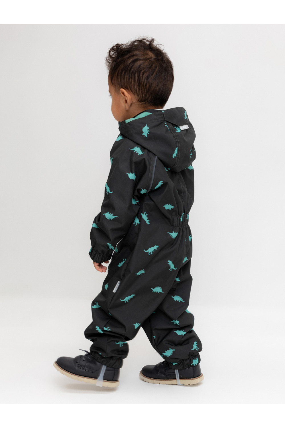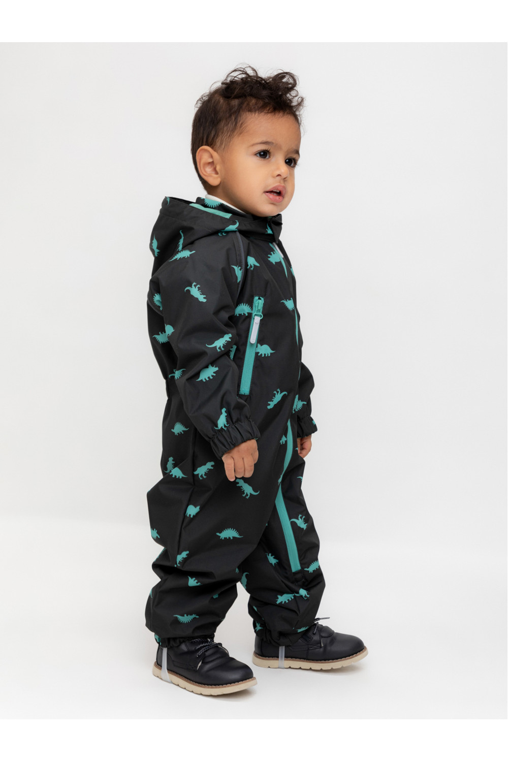 Ветровочный комбинезон ясельный из мембранной ткани с дополнительной тефлоновой обработкой. Данный вид обработки предохраняет изделие от загрязнения и лучше отводит влагу. Подклад из 100% хлопка. У изделия удлиненная молния для легкого одевания с защитой подбородка. Утяжка на капюшоне с потайными стопперами. По низу рукавов и брючин, а также на спинке изделия эластичная резинка для лучшего прилегания. Для фиксации комбинезона используются съемные силиконовые штрипки. В размере 74-80 функциональные отвороты на рукавах и брючинах. Во всех изделиях верхнего ассортимента для безопасности ребенка предусмотрены светоотражающие элементы.