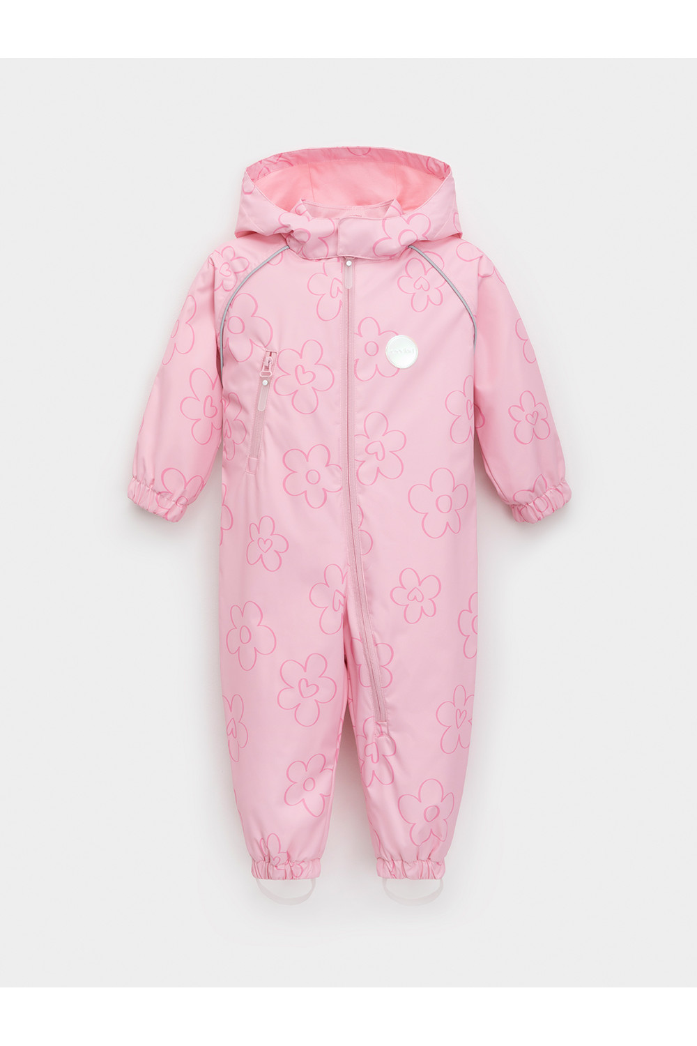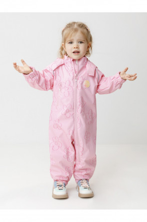 Ветровочный комбинезон ясельный без утеплителя. Выполнен из мембранной ткани с дополнительной тефлоновой обработкой. Данный вид обработки предохраняет изделие от загрязнения и лучше отводит влагу. Подклад из 100% хлопка. Для удобного одевания комбинезон застёгивается на удлинённую молнию с защитой подбородка. Утяжка на капюшоне с потайным стоппером. По низу рукавов и брючин, а также на спинке изделия предусмотрены эластичные резинки для лучшего прилегания. Для фиксации комбинезона используются съёмные силиконовые штрипки. В размерах 68-74 и 74-80 есть функциональные отвороты на рукавах и брючинах. Во всех изделиях верхнего ассортимента для безопасности ребёнка предусмотрены светоотражающие элементы.