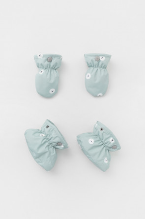 • Дополнительно в размерах 62-68, 68-74 пристегивающиеся варежки и пинетки