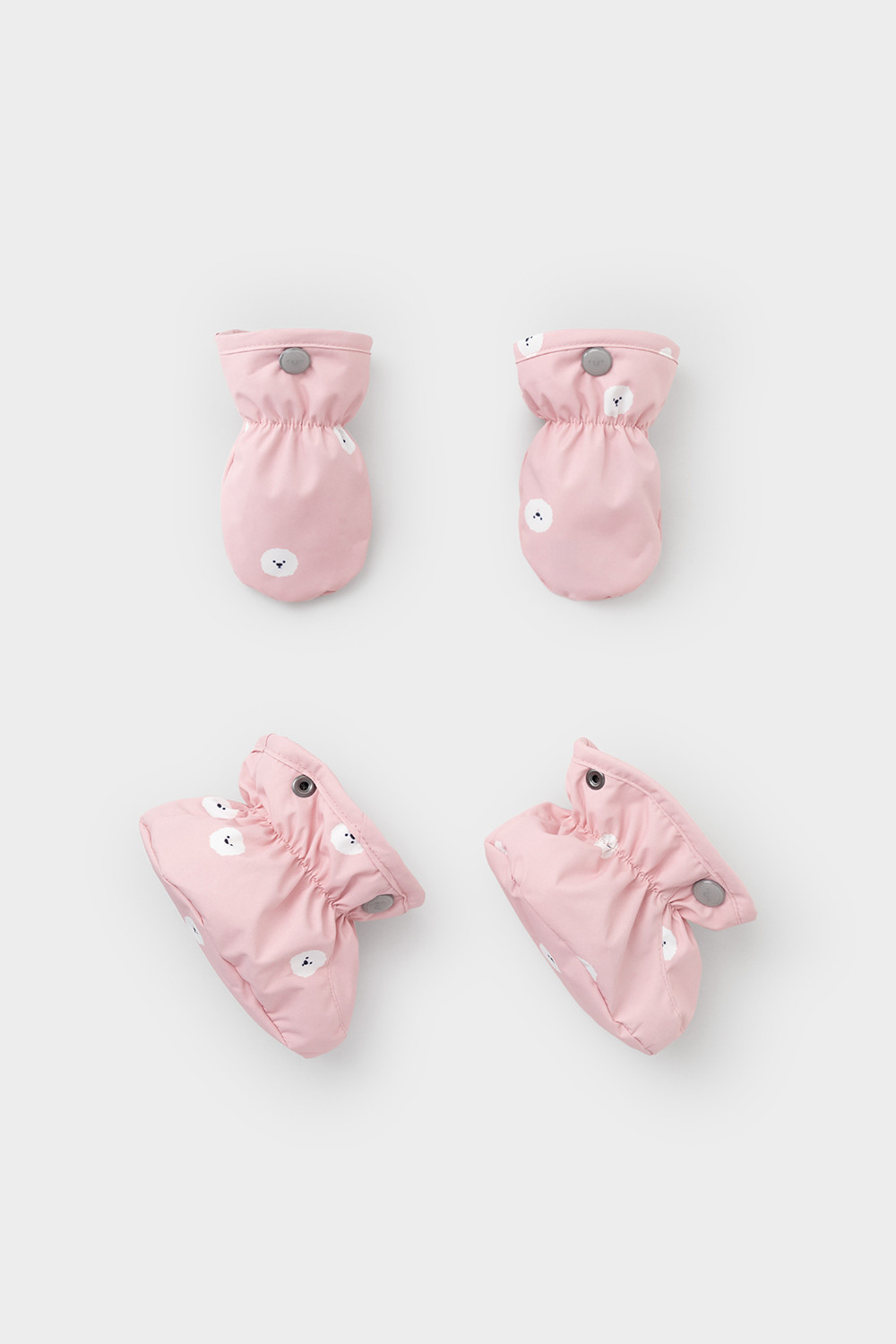 • Дополнительно в размерах 62-68, 68-74 пристегивающиеся варежки и пинетки
