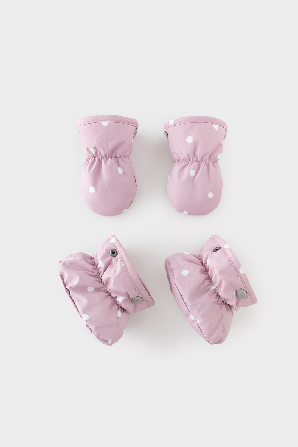 • Дополнительно в размерах 62-68, 68-74 пристегивающиеся варежки и пинетки