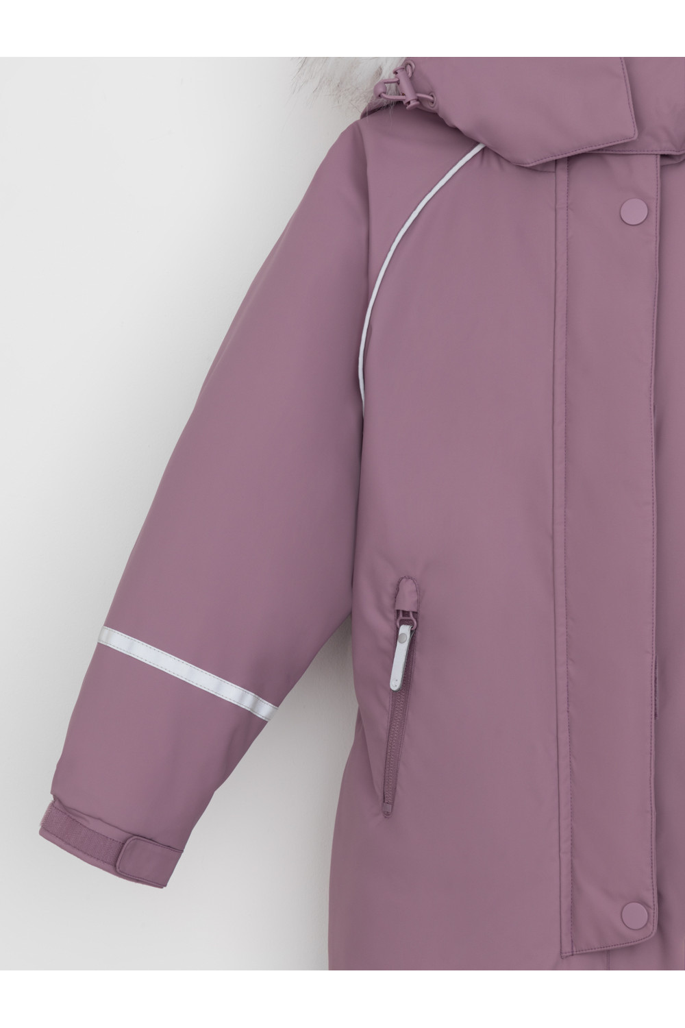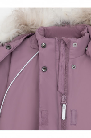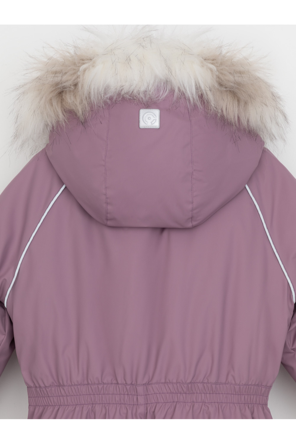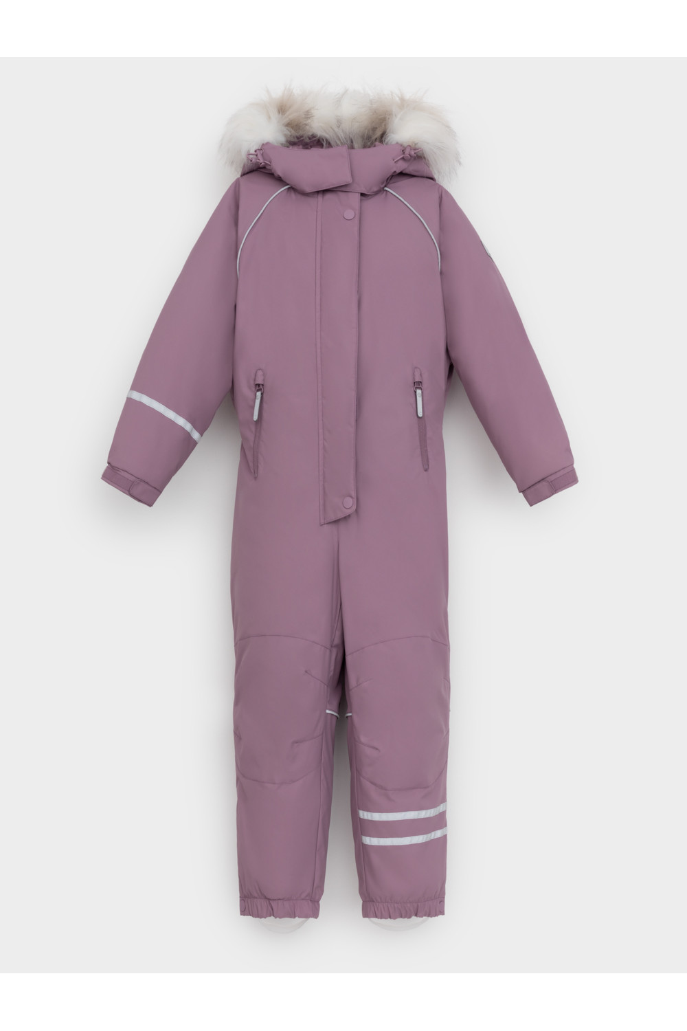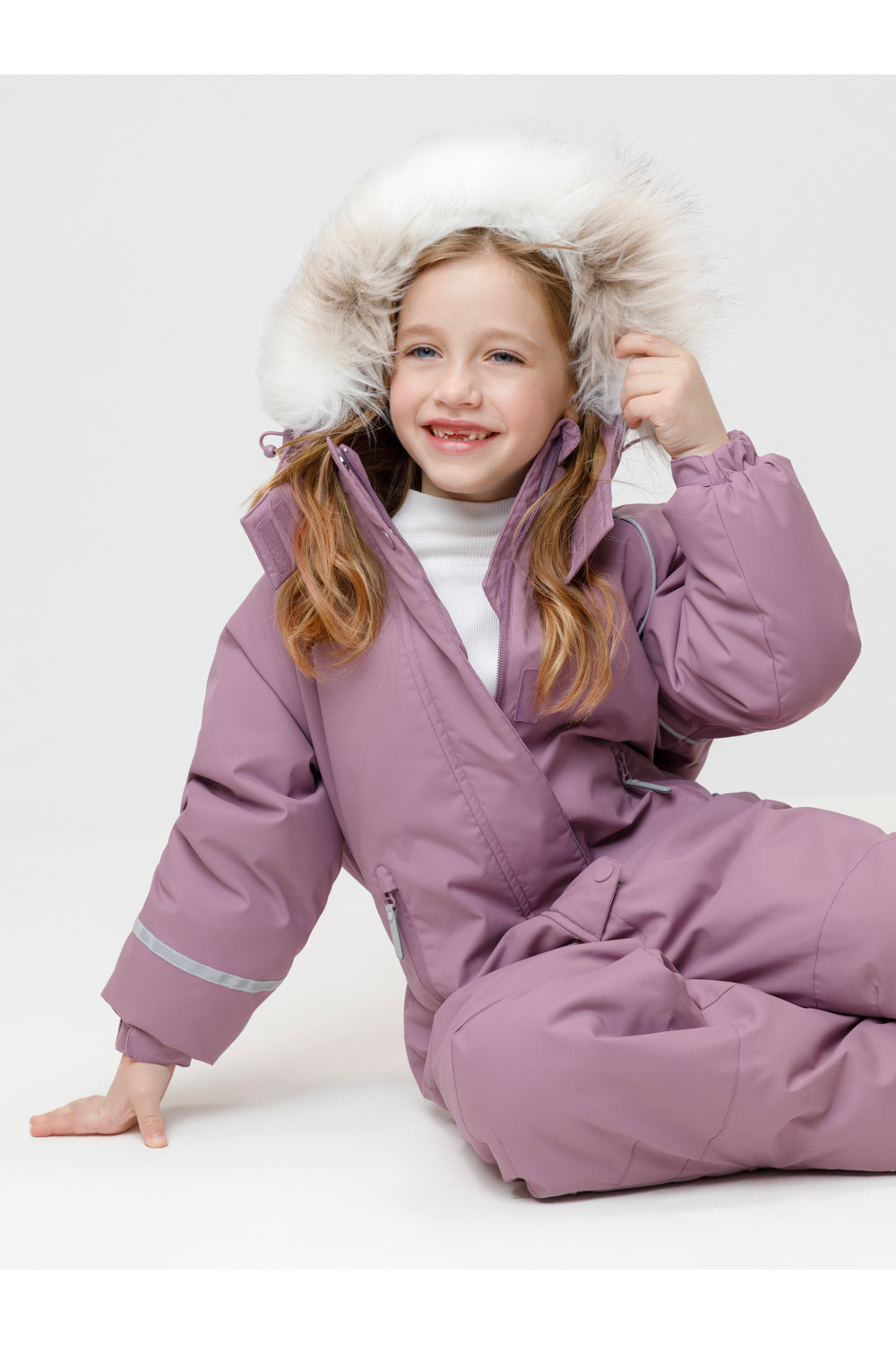 Зимний комбинезон для девочки с утеплителем Fellex®: 250 г/м2 . Выполнен из мембранной ткани с дополнительной тефлоновой обработкой, которая предохраняет изделие от загрязнений и отталкивает влагу. Подклад выполнен из 100% полиэстера Tricot. Комбинезон застёгивается на молнию и внешнюю планку на липучках и кнопках, предусмотрена защита подбородка. Съёмный капюшон имеет эластичную утяжку со стопперами и отстёгивающийся мех на молнии. Резинка по спинке обеспечивает лучшее прилегание. По бокам два кармана на молнии. Эластичные манжеты на рукавах регулируются по ширине с помощью липучки, по низу изделия - с помощью кнопки. Внутренняя противоснежная юбка защищает обувь от попадания снега и удерживает комбинезон в закреплённом положении. В размерах с 98-104 по 116-122 предусмотрены отстёгивающиеся штрипки. Во всех изделиях верхнего ассортимента для безопасности ребёнка предусмотрены светоотражающие элементы.