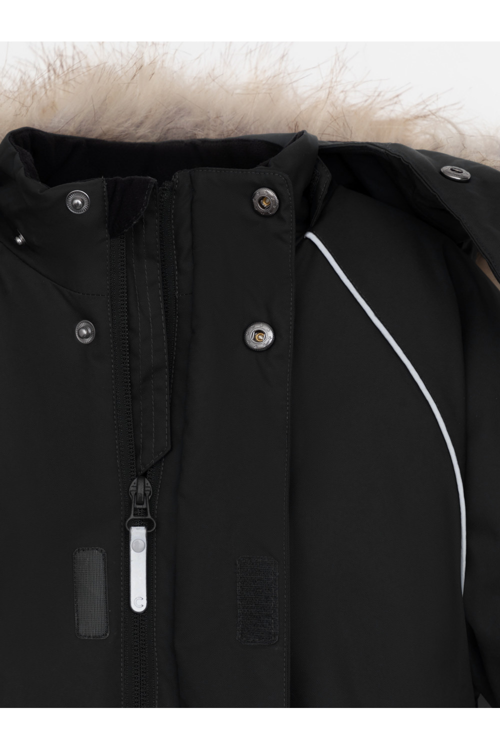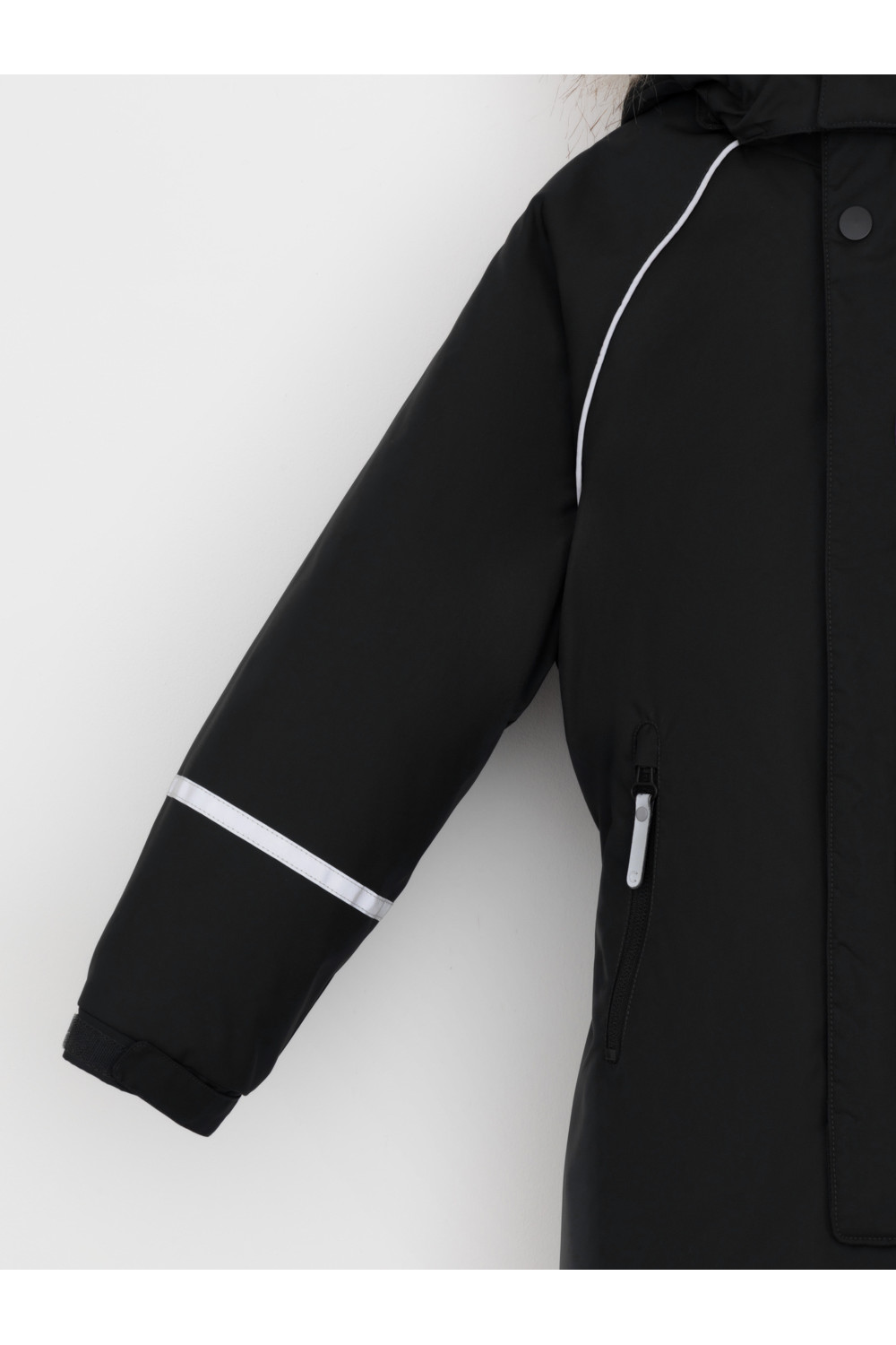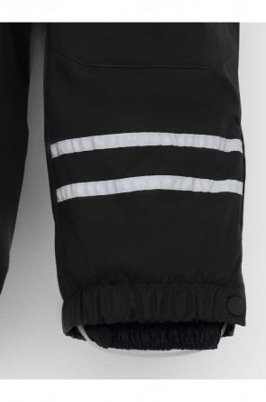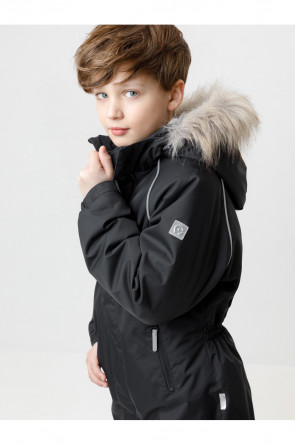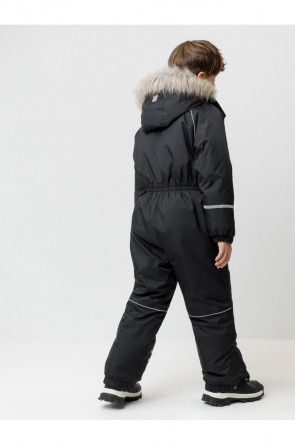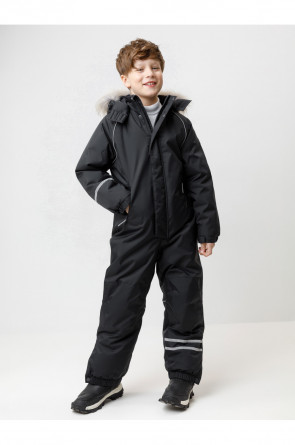 Зимний комбинезон для мальчика с утеплителем Fellex®: 250 г/м2 . Выполнен из мембранной ткани с дополнительной тефлоновой обработкой, которая предохраняет изделие от загрязнений и отталкивает влагу. Подклад выполнен из 100% полиэстера Tricot. Комбинезон застёгивается на молнию и внешнюю планку на липучках и кнопках, предусмотрена защита подбородка. Съёмный капюшон имеет эластичную утяжку со стопперами и отстёгивающийся мех на молнии. Резинка по спинке обеспечивает лучшее прилегание. По бокам два кармана на молнии. Эластичные манжеты на рукавах регулируются по ширине с помощью липучки, по низу изделия - с помощью кнопки. Внутренняя противоснежная юбка защищает обувь от попадания снега и удерживает комбинезон в закреплённом положении. В размерах с 98-104 по 116-122 предусмотрены отстёгивающиеся штрипки. Во всех изделиях верхнего ассортимента для безопасности ребёнка предусмотрены светоотражающие элементы.