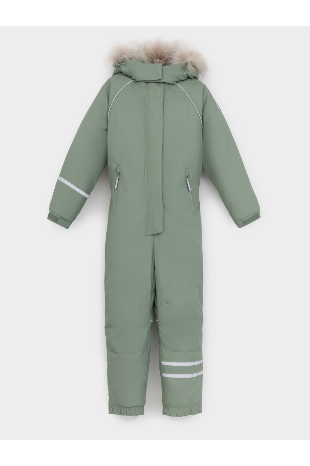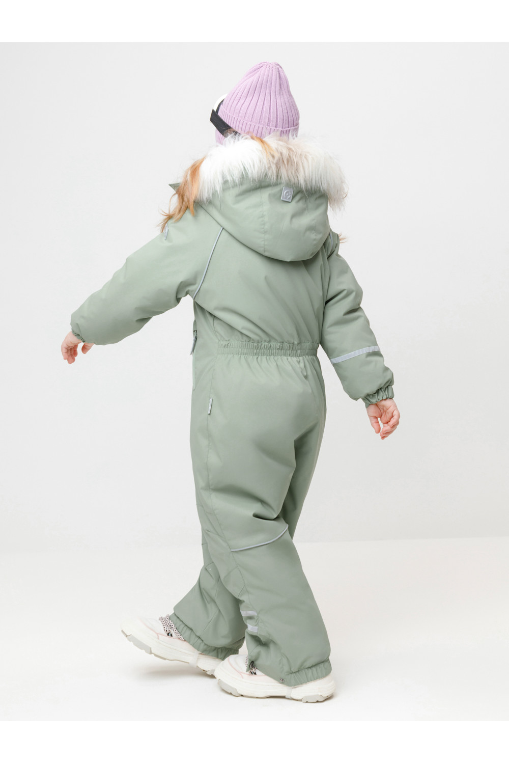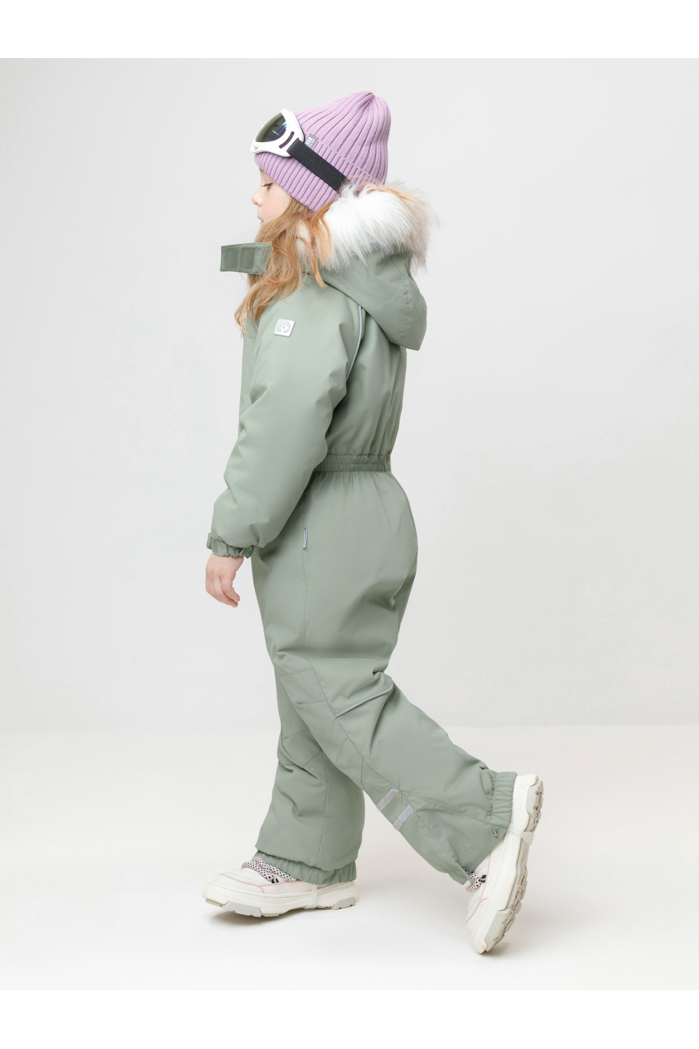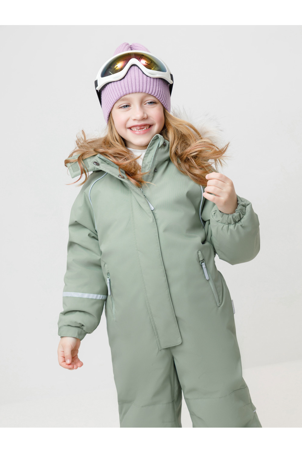 Зимний комбинезон для девочки с утеплителем Fellex®: 250 г/м2 . Выполнен из мембранной ткани с дополнительной тефлоновой обработкой, которая предохраняет изделие от загрязнений и отталкивает влагу. Подклад выполнен из 100% полиэстера Tricot. Комбинезон застёгивается на молнию и внешнюю планку на липучках и кнопках, предусмотрена защита подбородка. Съёмный капюшон имеет эластичную утяжку со стопперами и отстёгивающийся мех на молнии. Резинка по спинке обеспечивает лучшее прилегание. По бокам два кармана на молнии. Эластичные манжеты на рукавах регулируются по ширине с помощью липучки, по низу изделия - с помощью кнопки. Внутренняя противоснежная юбка защищает обувь от попадания снега и удерживает комбинезон в закреплённом положении. В размерах с 98-104 по 116-122 предусмотрены отстёгивающиеся штрипки. Во всех изделиях верхнего ассортимента для безопасности ребёнка предусмотрены светоотражающие элементы.