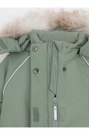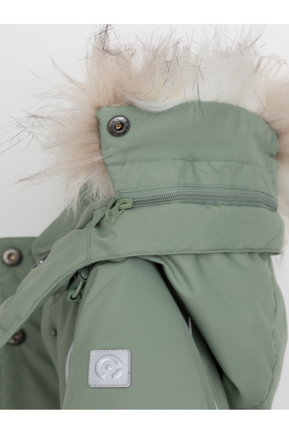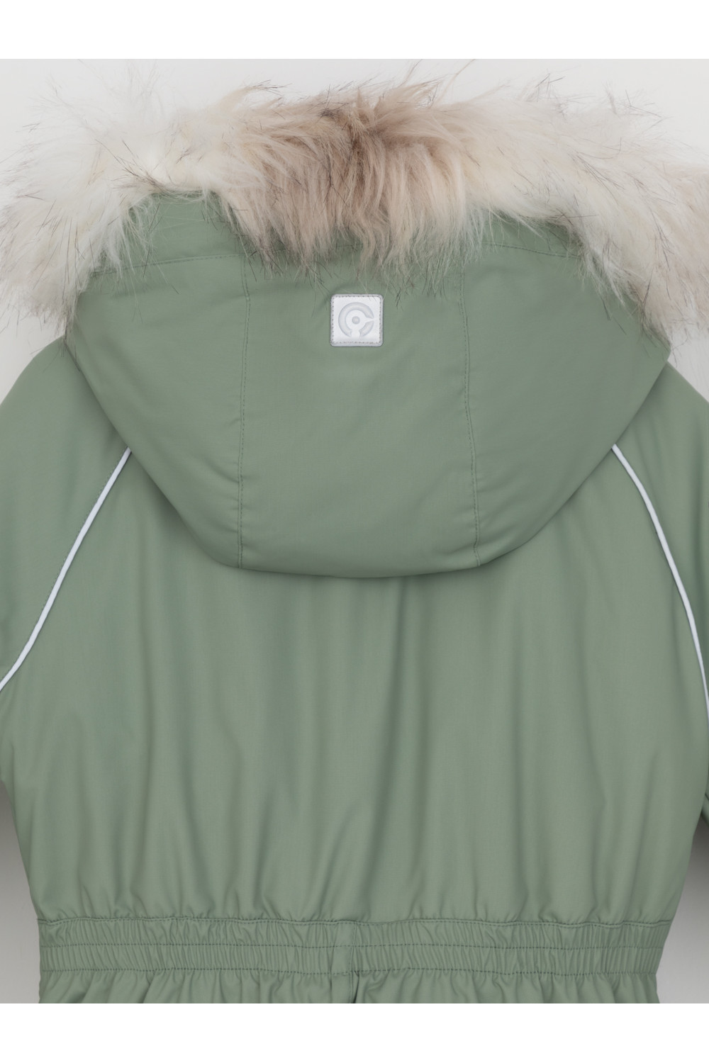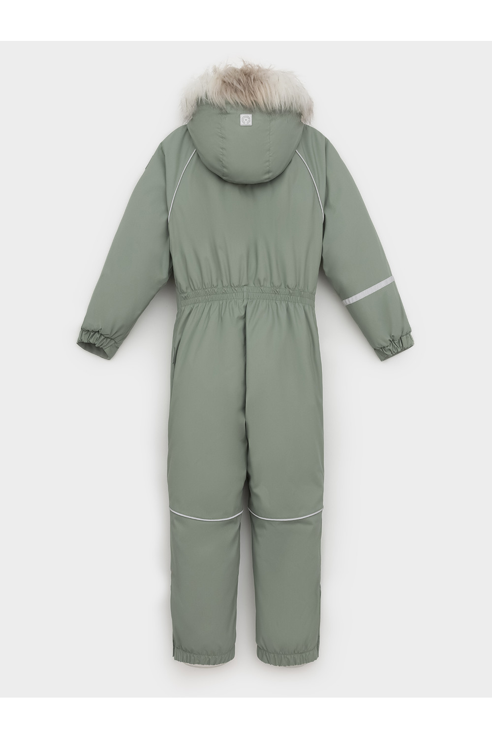 Зимний комбинезон для девочки с утеплителем Fellex®: 250 г/м2 . Выполнен из мембранной ткани с дополнительной тефлоновой обработкой, которая предохраняет изделие от загрязнений и отталкивает влагу. Подклад выполнен из 100% полиэстера Tricot. Комбинезон застёгивается на молнию и внешнюю планку на липучках и кнопках, предусмотрена защита подбородка. Съёмный капюшон имеет эластичную утяжку со стопперами и отстёгивающийся мех на молнии. Резинка по спинке обеспечивает лучшее прилегание. По бокам два кармана на молнии. Эластичные манжеты на рукавах регулируются по ширине с помощью липучки, по низу изделия - с помощью кнопки. Внутренняя противоснежная юбка защищает обувь от попадания снега и удерживает комбинезон в закреплённом положении. В размерах с 98-104 по 116-122 предусмотрены отстёгивающиеся штрипки. Во всех изделиях верхнего ассортимента для безопасности ребёнка предусмотрены светоотражающие элементы.