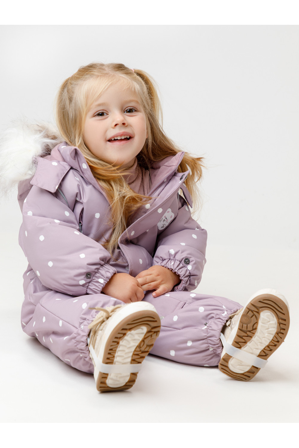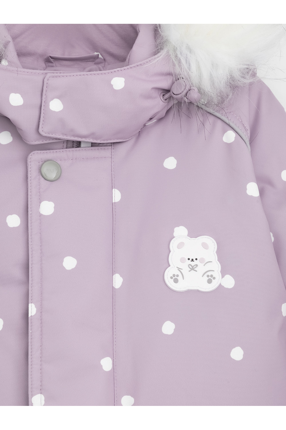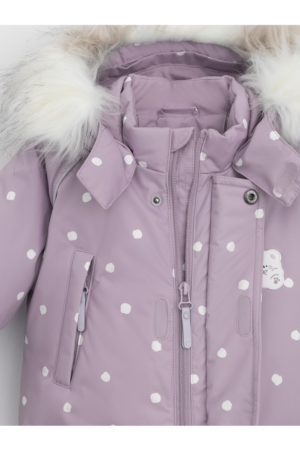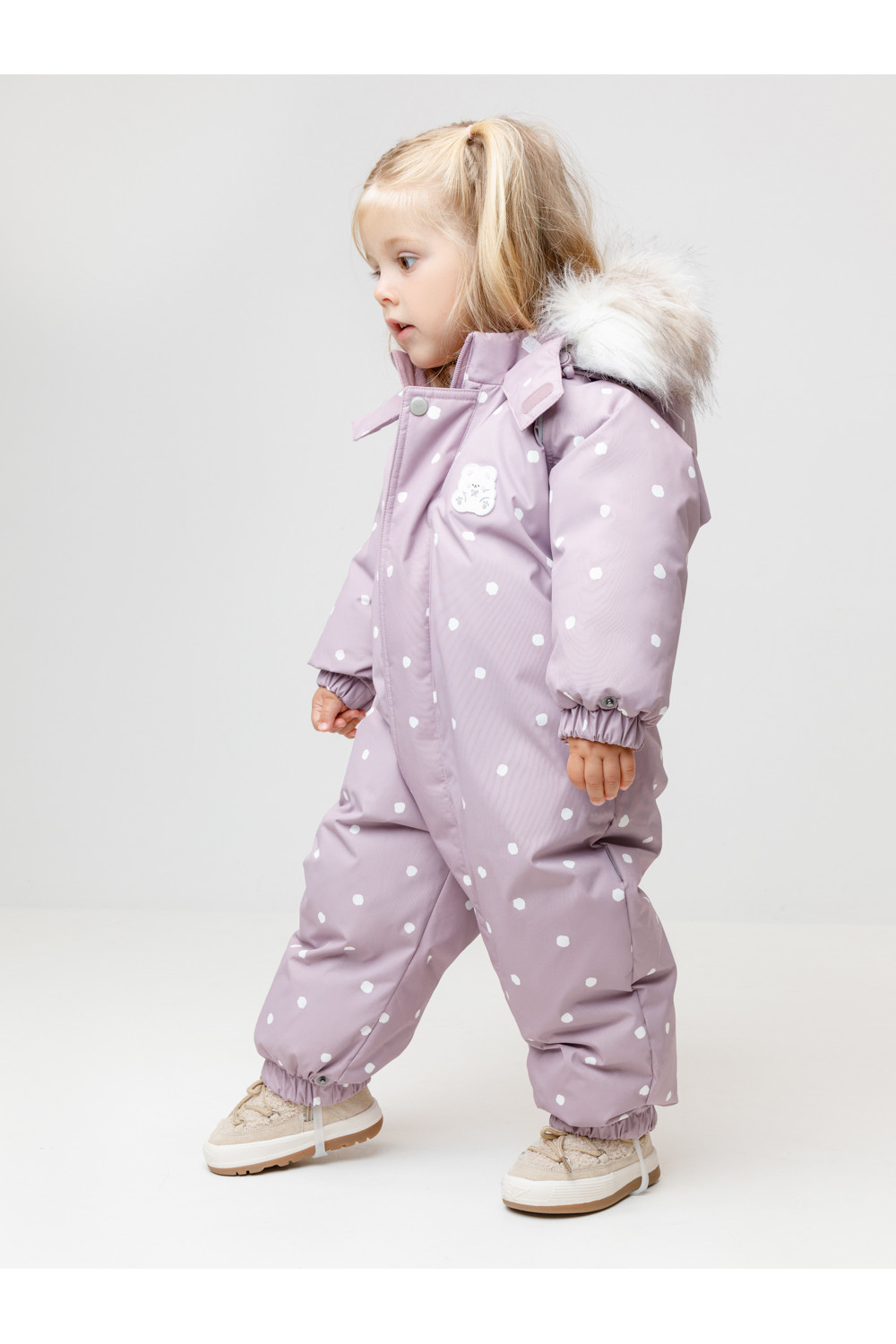 Зимний комбинезон ясельный с натуральным утеплителем из гусиного пуха (70%) и пера (30%). Выполнен из мембранной ткани с дополнительной тефлоновой обработкой, которая предохраняет изделие от загрязнений и отталкивает влагу. Подклад выполнен из 100% хлопка. Комбинезон застёгивается на молнию и внешнюю планку на липучках, предусмотрена защита подбородка. Несъёмный капюшон имеет эластичную утяжку со стопперами и отстёгивающийся мех на молнии. Резинка по спинке для лучшего прилегания. На груди карман на молнии. По рукавам и низу изделия эластичные манжеты, на ножках отстёгивающиеся силиконовые штрипки. В размерах с 68-74 по 80-86 в комплекте идут рукавицы и пинетки. Во всех изделиях верхнего ассортимента для безопасности ребёнка предусмотрены светоотражающие элементы.