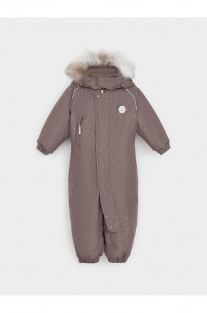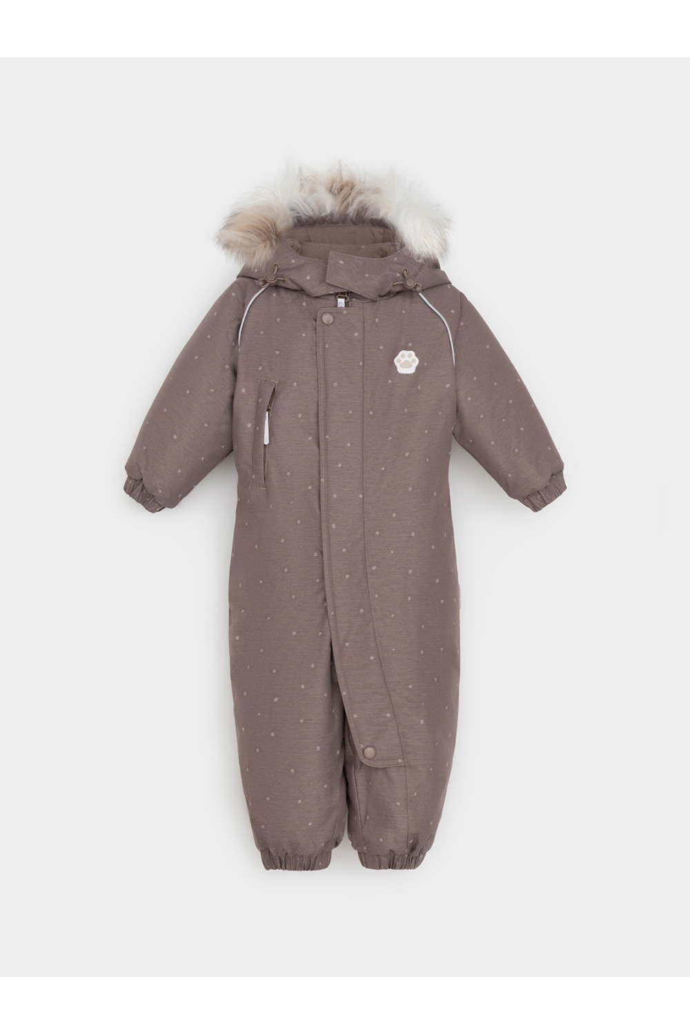 Зимний комбинезон ясельный с натуральным утеплителем из гусиного пуха (70%) и пера (30%). Выполнен из мембранной ткани с дополнительной тефлоновой обработкой, которая предохраняет изделие от загрязнений и отталкивает влагу. Подклад выполнен из 100% хлопка. Комбинезон застёгивается на молнию и внешнюю планку на липучках, предусмотрена защита подбородка. Несъёмный капюшон имеет эластичную утяжку со стопперами и отстёгивающийся мех на молнии. Резинка по спинке для лучшего прилегания. На груди карман на молнии. По рукавам и низу изделия эластичные манжеты, на ножках отстёгивающиеся силиконовые штрипки. В размерах с 68-74 по 80-86 в комплекте идут рукавицы и пинетки. Во всех изделиях верхнего ассортимента для безопасности ребёнка предусмотрены светоотражающие элементы.