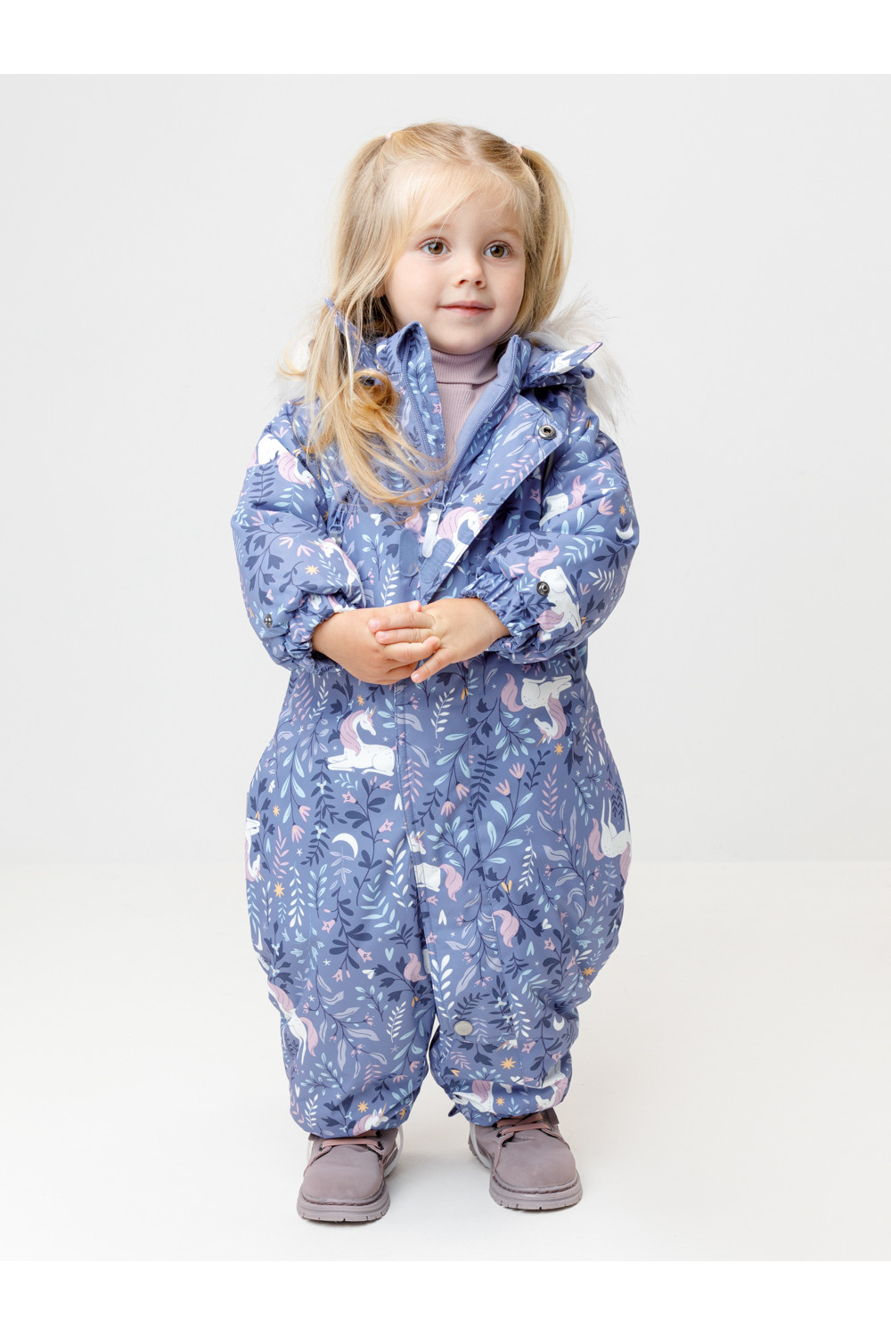 • Дополнительно в размерах 74-80, 80-86 пристегивающиеся утепленные варежки и пинетки.