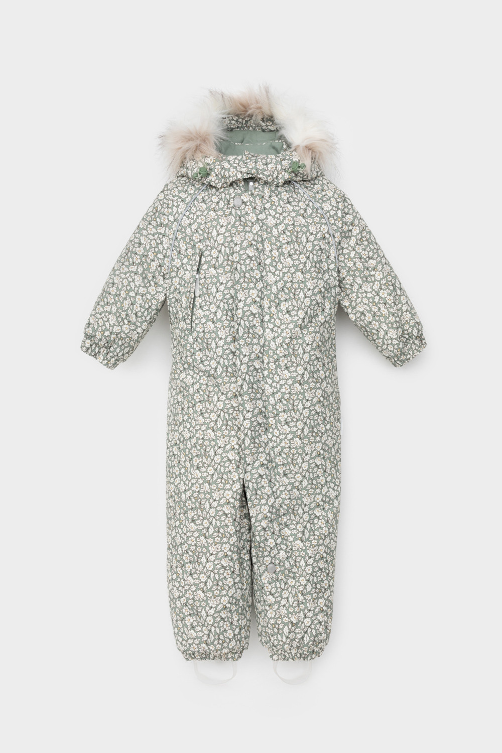 • Дополнительно в размерах 74-80, 80-86 пристегивающиеся утепленные варежки и пинетки.