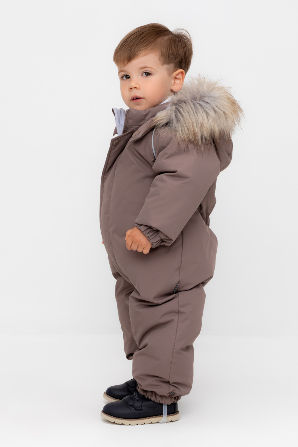 Комбинезон с натуральным утеплителем из гипоаллергенного гусиного пуха (70%) и пера (30%).
