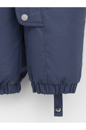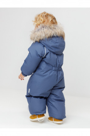 Зимний комбинезон ясельный с натуральным утеплителем из гусиного пуха (70%) и пера (30%). Выполнен из мембранной ткани с дополнительной тефлоновой обработкой, которая предохраняет изделие от загрязнений и отталкивает влагу. Подклад выполнен из 100% хлопка. Комбинезон застёгивается на молнию и внешнюю планку на липучках, предусмотрена защита подбородка. Несъёмный капюшон имеет эластичную утяжку со стопперами и отстёгивающийся мех на молнии. Резинка по спинке для лучшего прилегания. На груди карман на молнии. По рукавам и низу изделия эластичные манжеты, на ножках отстёгивающиеся силиконовые штрипки. В размерах с 68-74 по 80-86 в комплекте идут рукавицы и пинетки. Во всех изделиях верхнего ассортимента для безопасности ребёнка предусмотрены светоотражающие элементы.