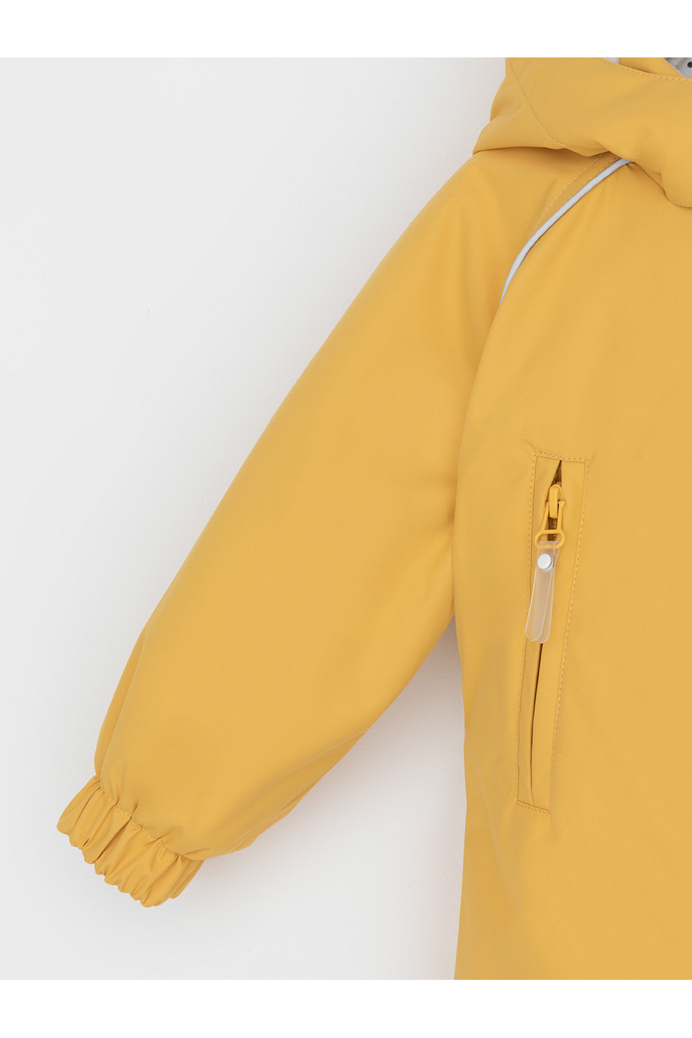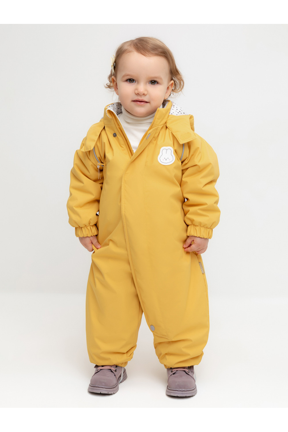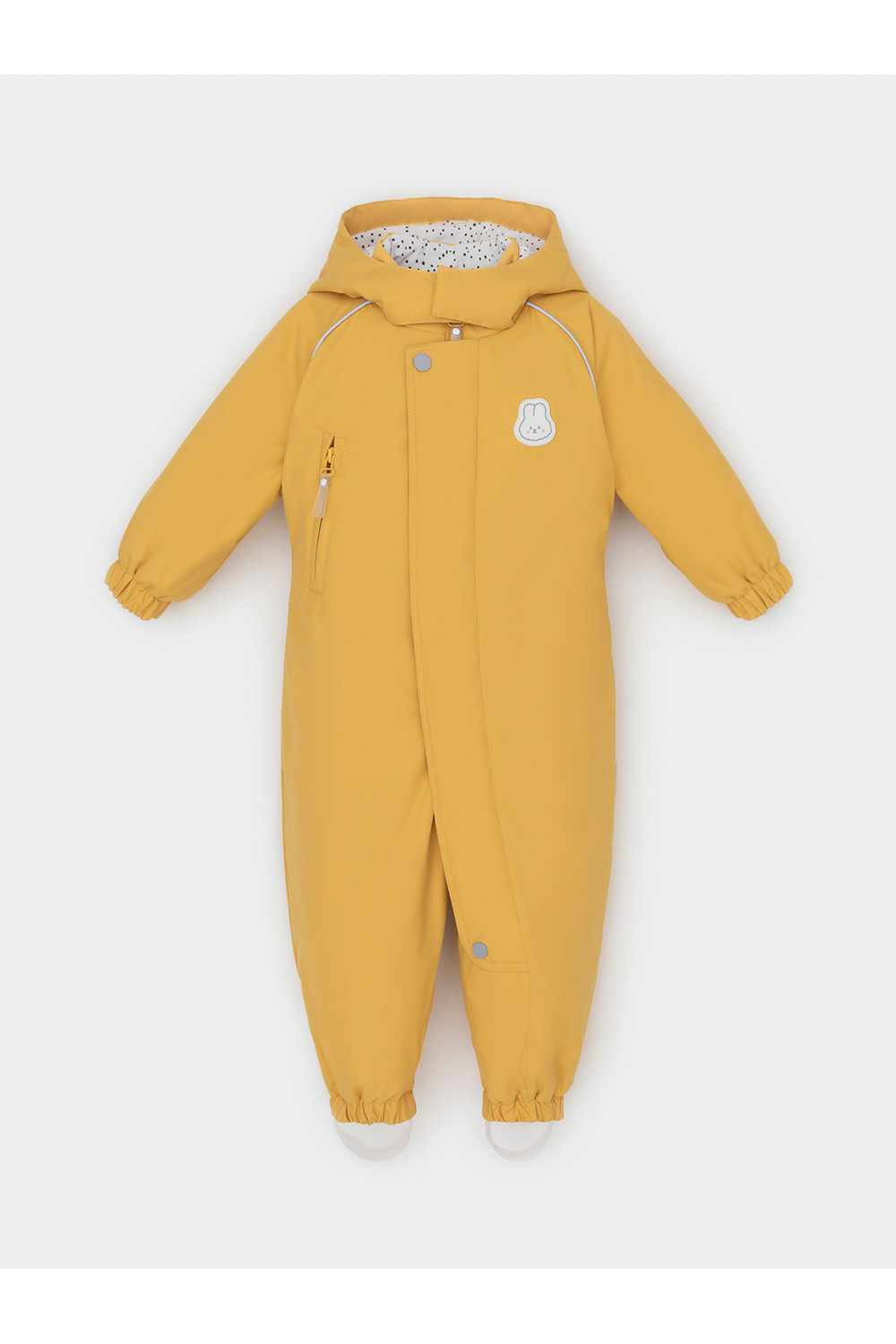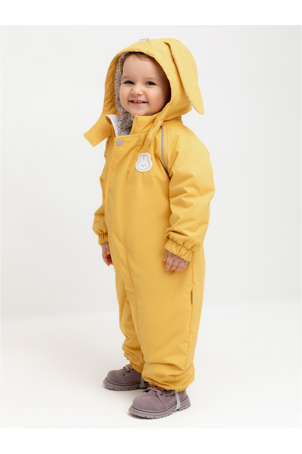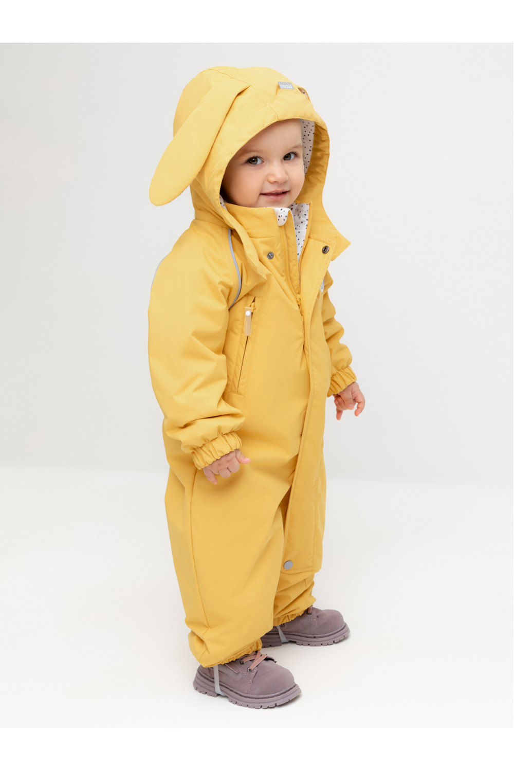 Демисезонный комбинезон ясельный с утеплителем SEE® 120 г/м2. Выполнен из мембранной ткани с дополнительной тефлоновой обработкой. Данный вид обработки предохраняет изделие от загрязнения и лучше отводит влагу. Подклад из 100% хлопка. Удлиненная молния для легкого одевания с защитой подбородка. Ветрозащитная планка фиксируется на липучках и кнопках. Утяжка на капюшоне с потайными стопперами. По низу рукавов и брючин, а также на спинке изделия предусмотрена эластичная резинка для лучшего прилегания. Для фиксации комбинезона используются съемные силиконовые штрипки. В размере 74-80 функциональные отвороты на рукавах и брючинах. Во всех изделиях верхнего ассортимента для безопасности ребенка предусмотрены светоотражающие элементы.