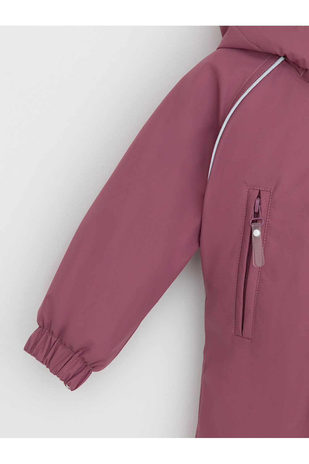 Демисезонный комбинезон ясельный с утеплителем SEE® 120 г/м2. Выполнен из мембранной ткани с дополнительной тефлоновой обработкой. Данный вид обработки предохраняет изделие от загрязнения и лучше отводит влагу. Подклад из 100% хлопка. Удлиненная молния для легкого одевания с защитой подбородка. Ветрозащитная планка фиксируется на липучках и кнопках. Утяжка на капюшоне с потайными стопперами. По низу рукавов и брючин, а также на спинке изделия предусмотрена эластичная резинка для лучшего прилегания. Для фиксации комбинезона используются съемные силиконовые штрипки. В размере 74-80 функциональные отвороты на рукавах и брючинах. Во всех изделиях верхнего ассортимента для безопасности ребенка предусмотрены светоотражающие элементы.