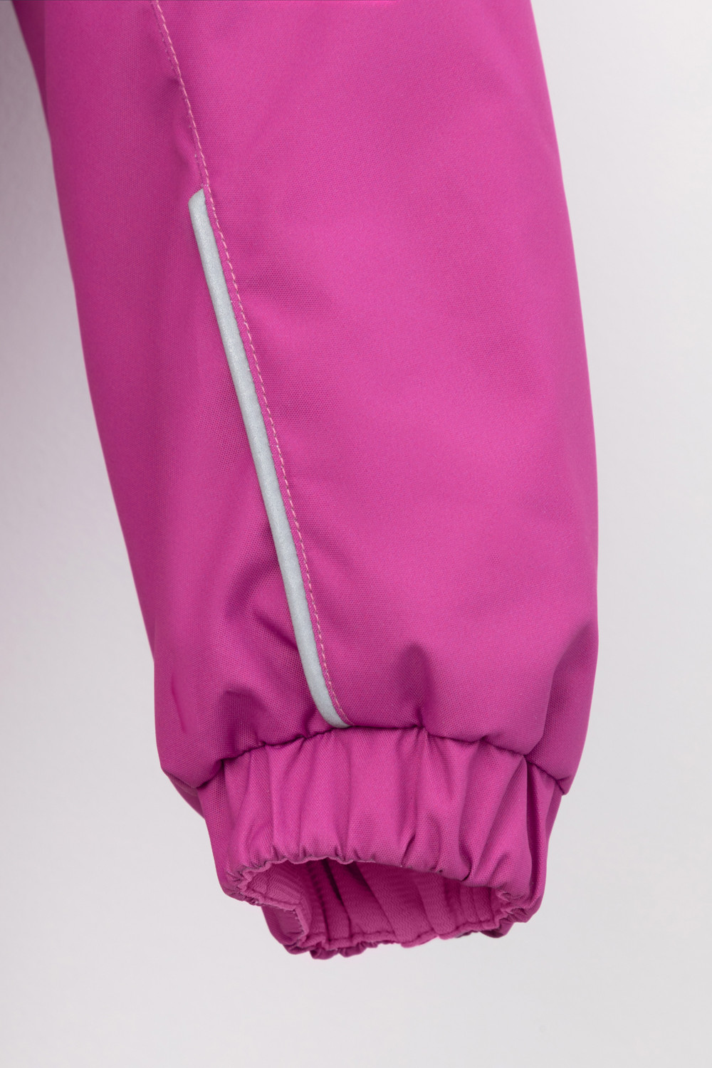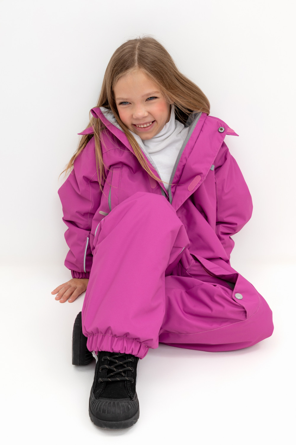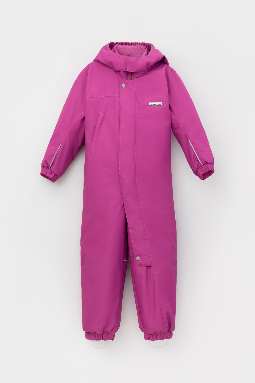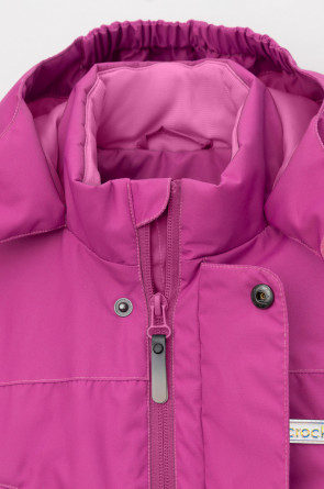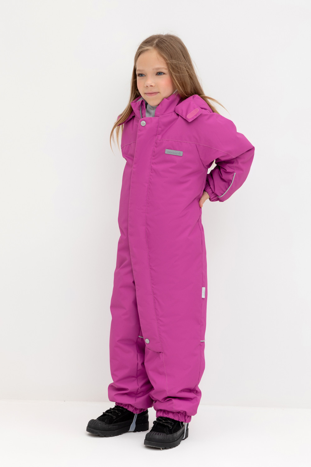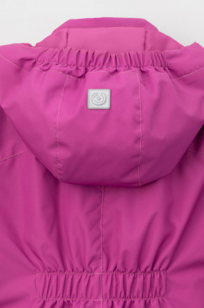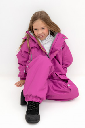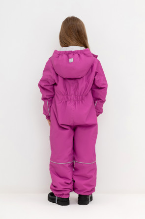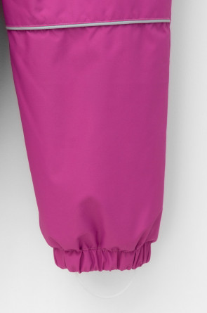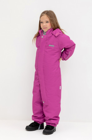 Демисезонный комбинезон для девочки с утеплителем SEE®: 120 г/м2. Выполнен из мембранной ткани с дополнительной тефлоновой обработкой. Данный вид обработки предохраняет изделие от загрязнения и лучше отводит влагу. Подклад из 100% полиэстра. У изделия удлиненная молния для легкого одевания с защитой подбородка. Ветрозащитная планка фиксируется на липучках и кнопках. Несъемный капюшон с эластичной резинкой и застежкой на липучку.По низу рукавов и брючин, а также на спинке изделия предусмотрена эластичная резинка для лучшего прилегания. Функциональный карман с молнией на груди. Для фиксации комбинезона используются съемные силиконовые штрипки. Во всех изделиях верхнего ассортимента для безопасности ребенка предусмотрены светоотражающие элементы.