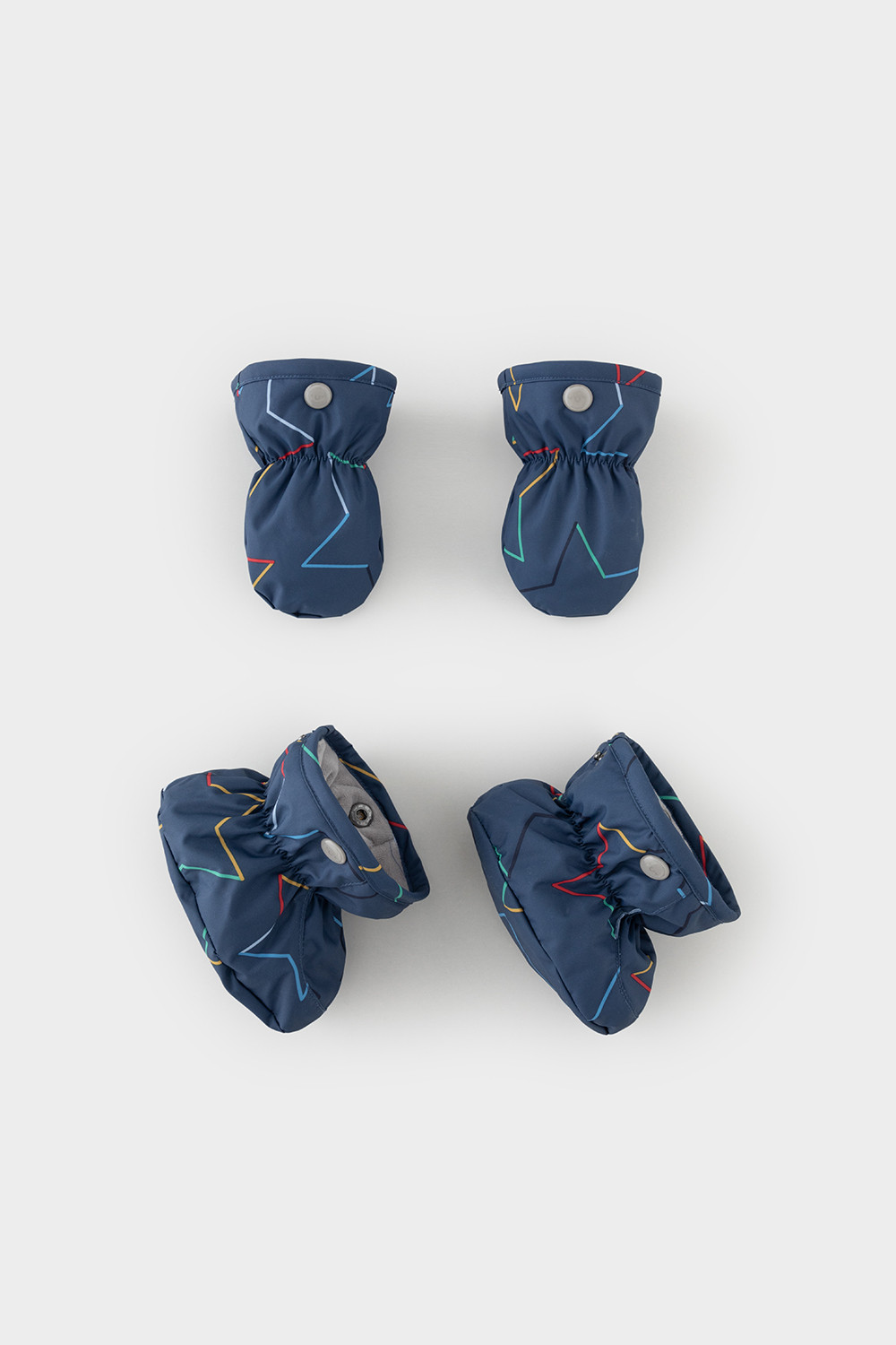 • Дополнительно в размерах 68-74, 74-80, 80-86 пристегивающиеся утепленные варежки и пинетки.