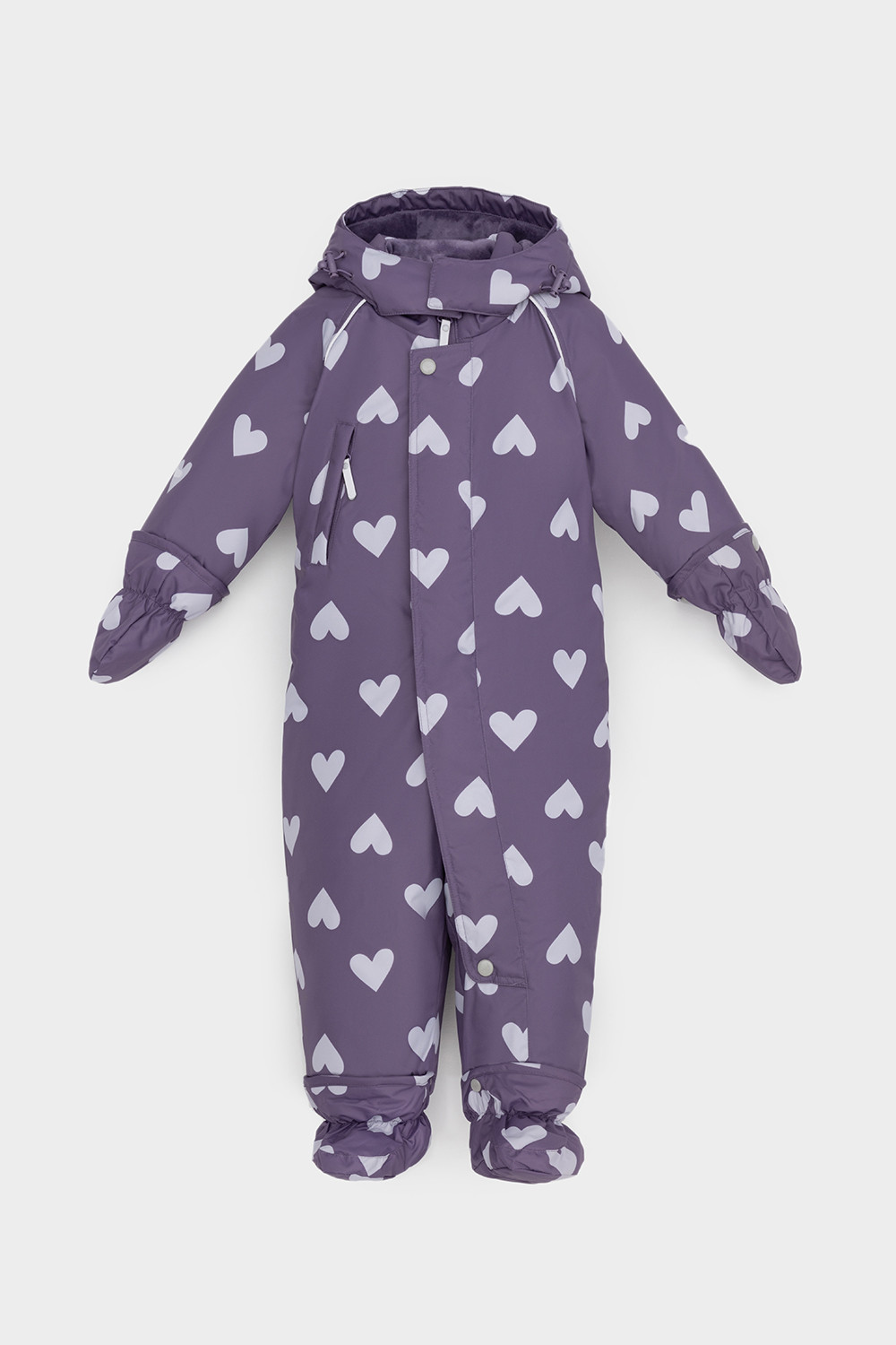 • Дополнительно в размерах 68-74, 74-80, 80-86 пристегивающиеся утепленные варежки и пинетки.