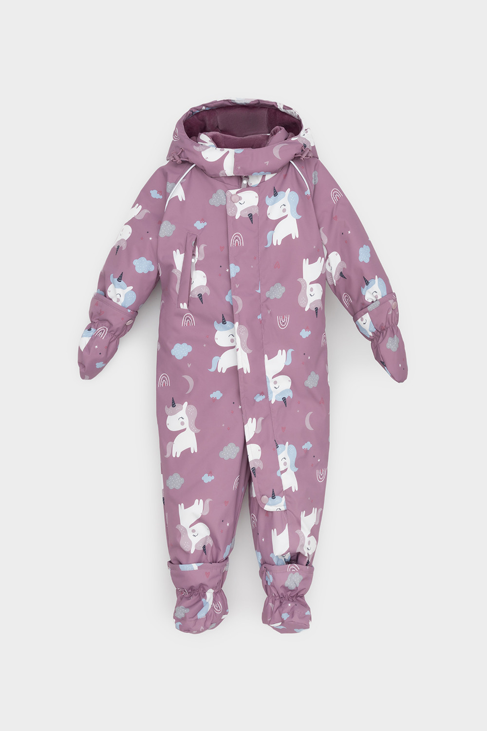 • Дополнительно в размерах 68-74, 74-80, 80-86 пристегивающиеся утепленные варежки и пинетки.