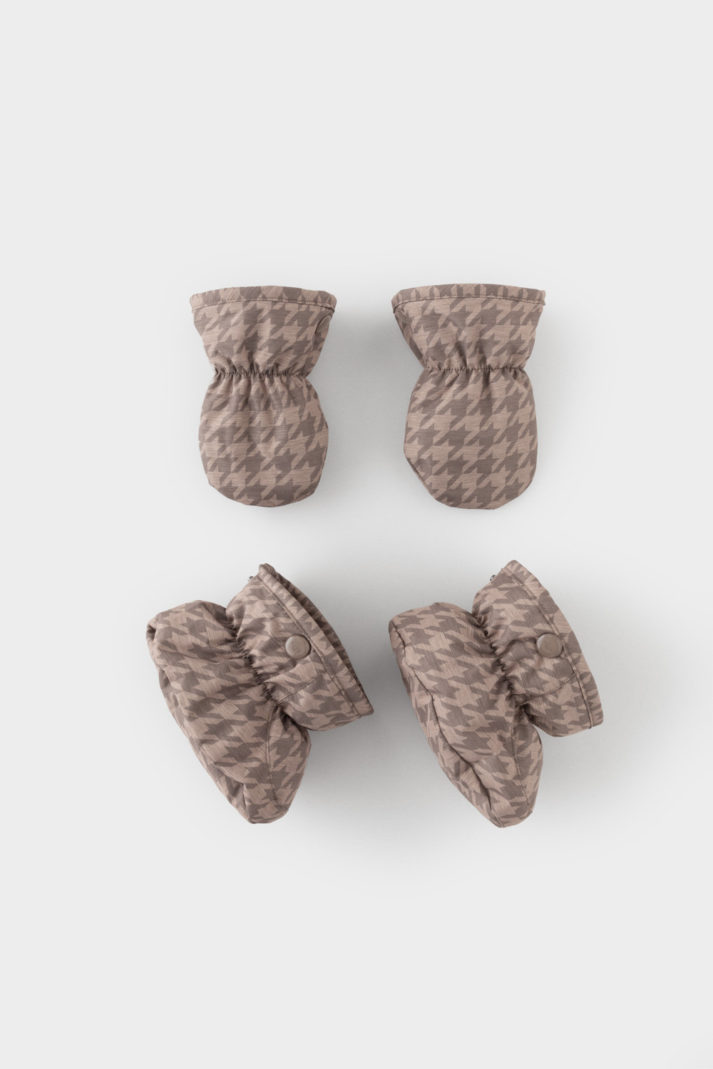 • Дополнительно в размерах 74-80, 80-86 пристегивающиеся утепленные варежки и пинетки.