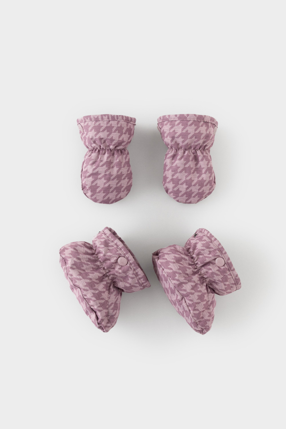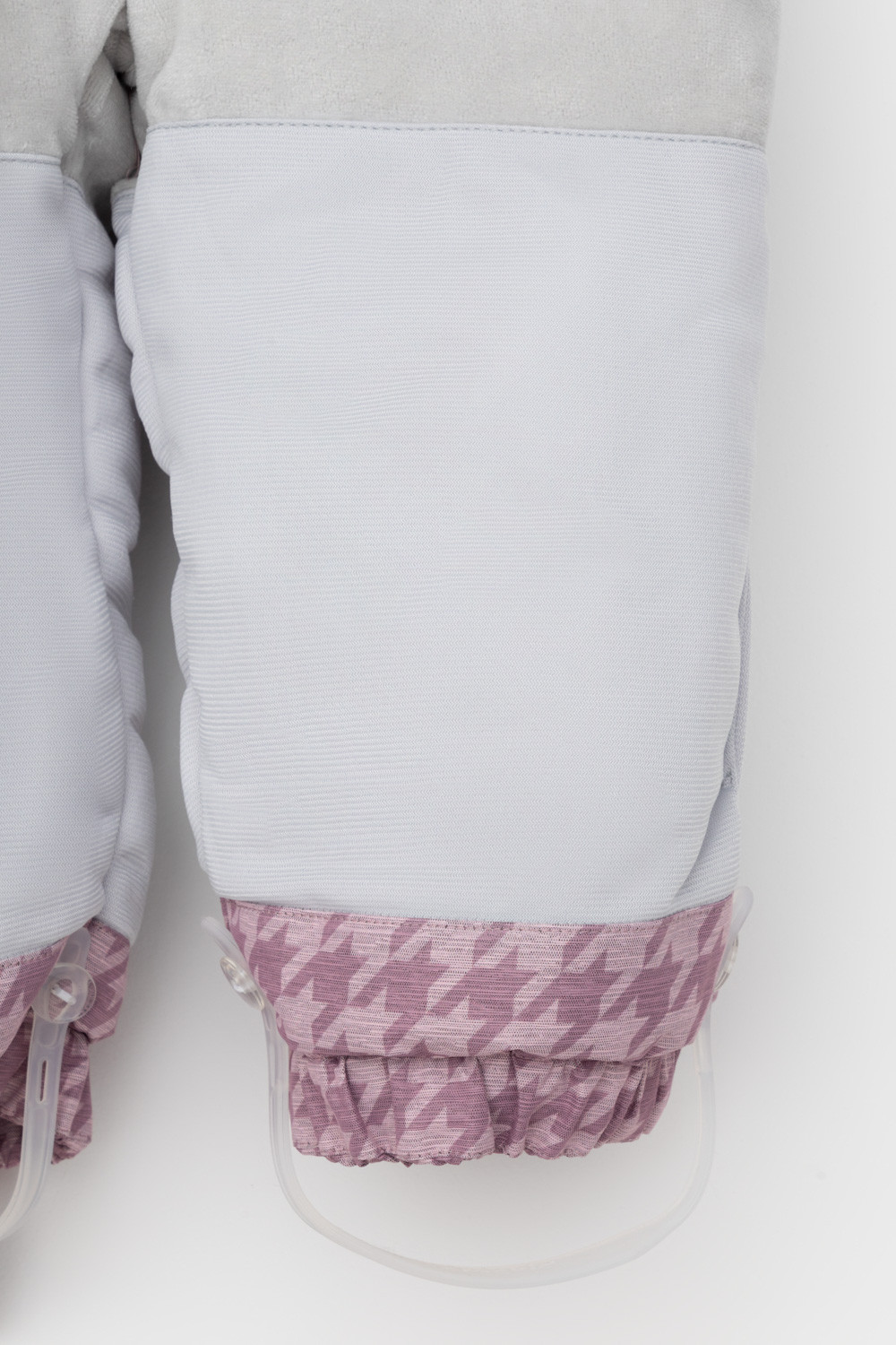 • Дополнительно в размерах 74-80, 80-86 пристегивающиеся утепленные варежки и пинетки.