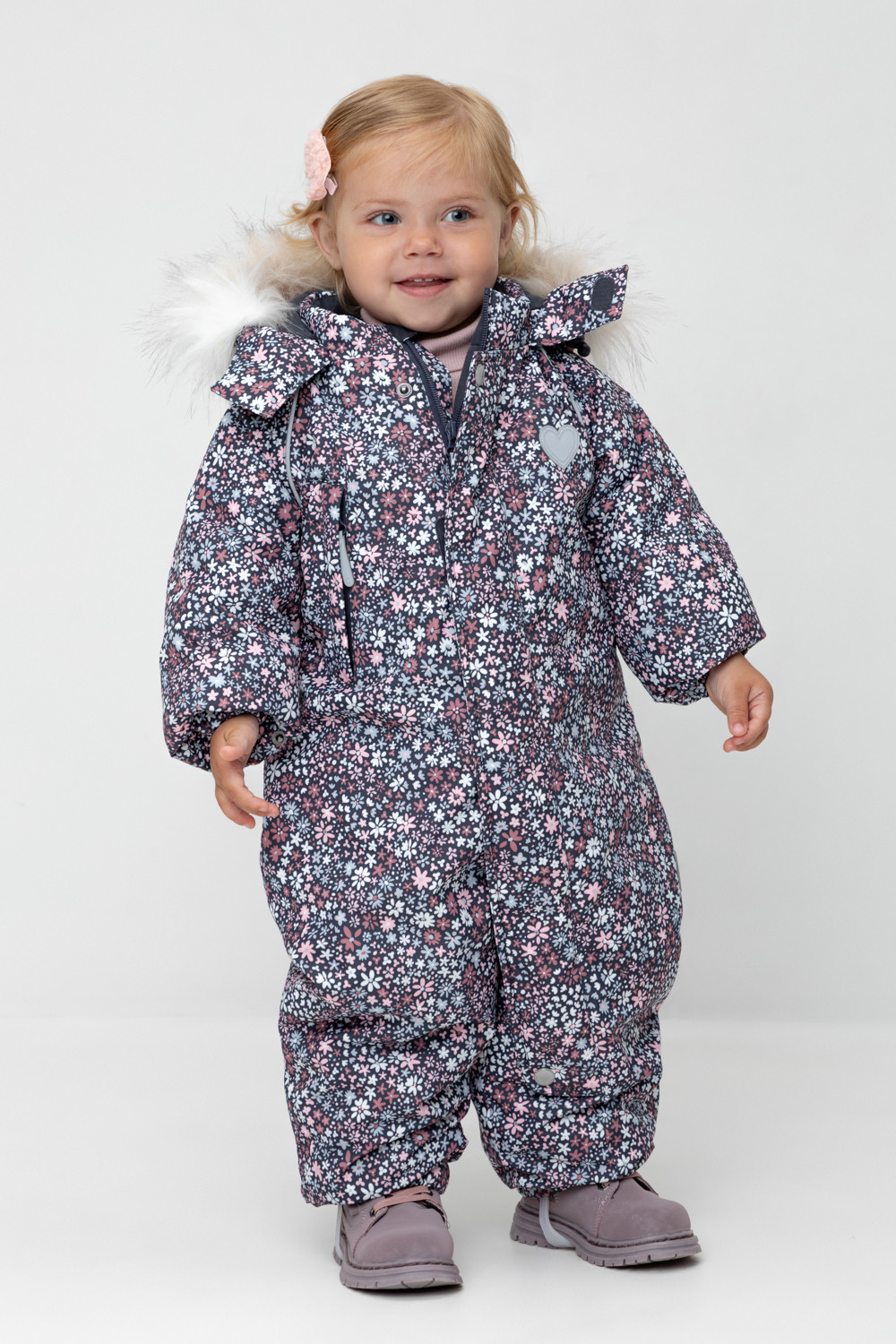 • Дополнительно в размерах 74-80, 80-86 пристегивающиеся утепленные варежки и пинетки.