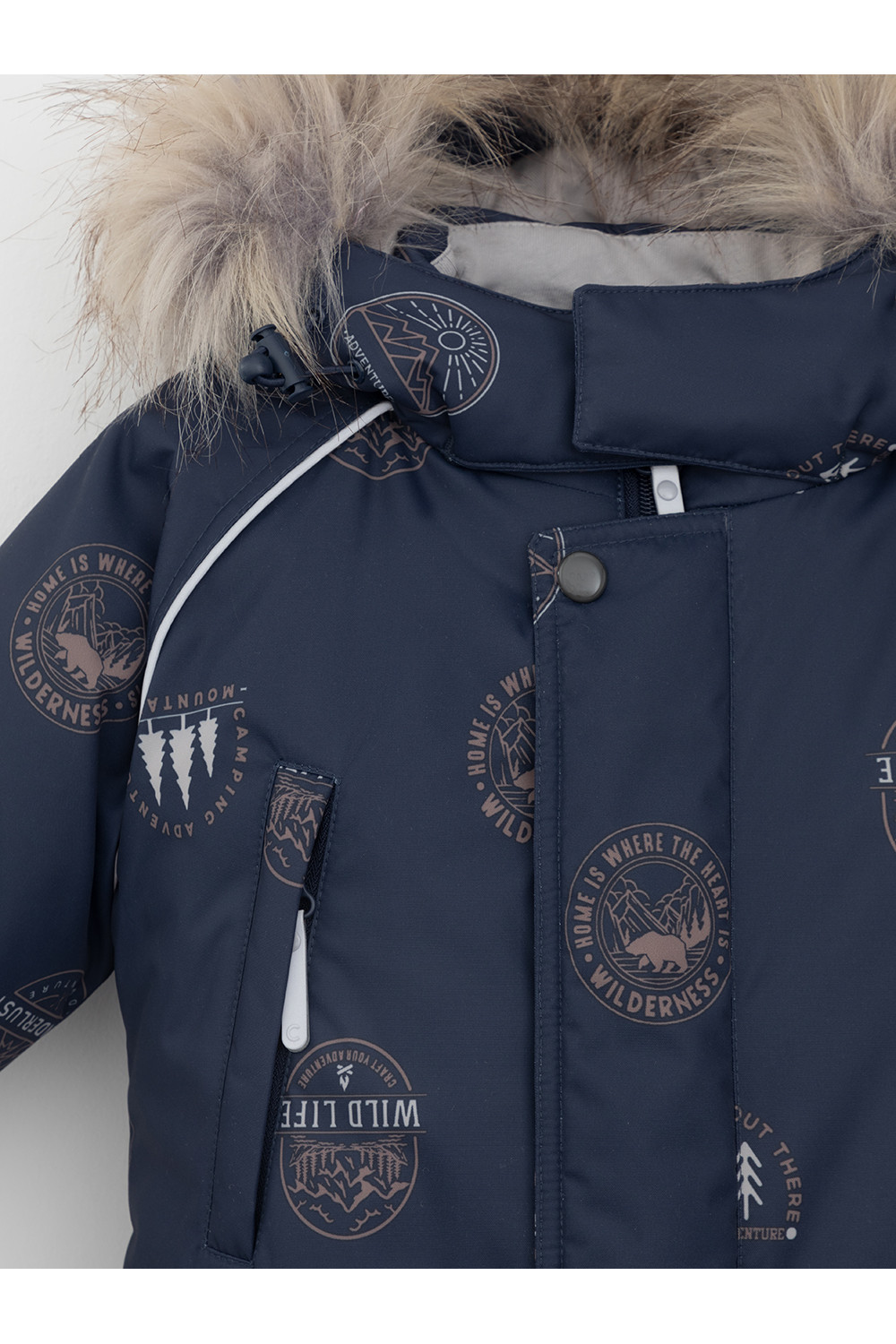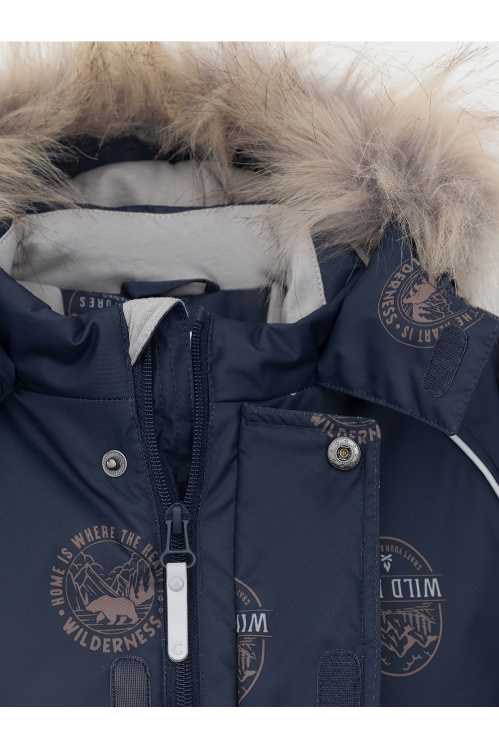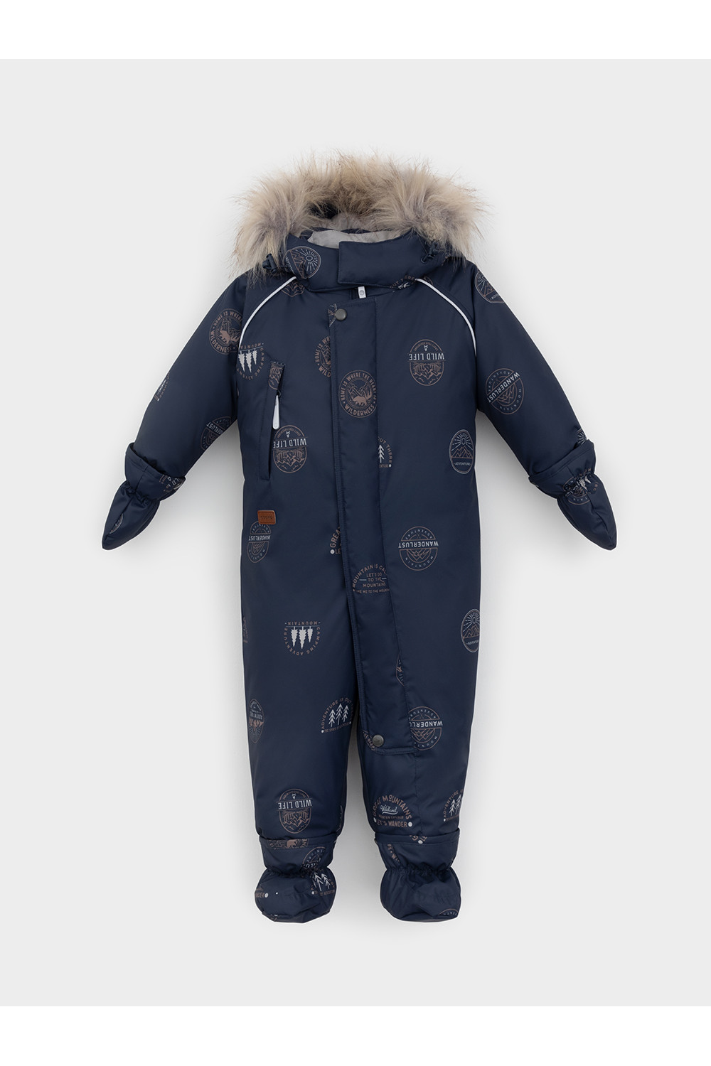 Зимний комбинезон ясельный с утеплителем Fellex®: 300 г/м2. Выполнен из мембранной ткани с дополнительной тефлоновой обработкой, которая предохраняет изделие от загрязнений и отталкивает влагу. Подклад выполнен из 100% хлопка. Комбинезон застёгивается на молнию и внешнюю планку на липучках, предусмотрена защита подбородка. Несъёмный капюшон имеет эластичную утяжку со стопперами и отстёгивающийся мех на молнии. Резинка по спинке для лучшего прилегания. На груди карман на молнии. По рукавам и низу изделия эластичные манжеты, на ножках отстёгивающиеся силиконовые штрипки. В размерах 74-80 и 80-86 в комплекте идут рукавицы и пинетки. Во всех изделиях верхнего ассортимента для безопасности ребёнка предусмотрены светоотражающие элементы.