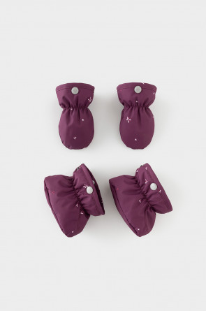 • Дополнительно в размерах 74-80, 80-86 пристегивающиеся утепленные варежки и пинетки.