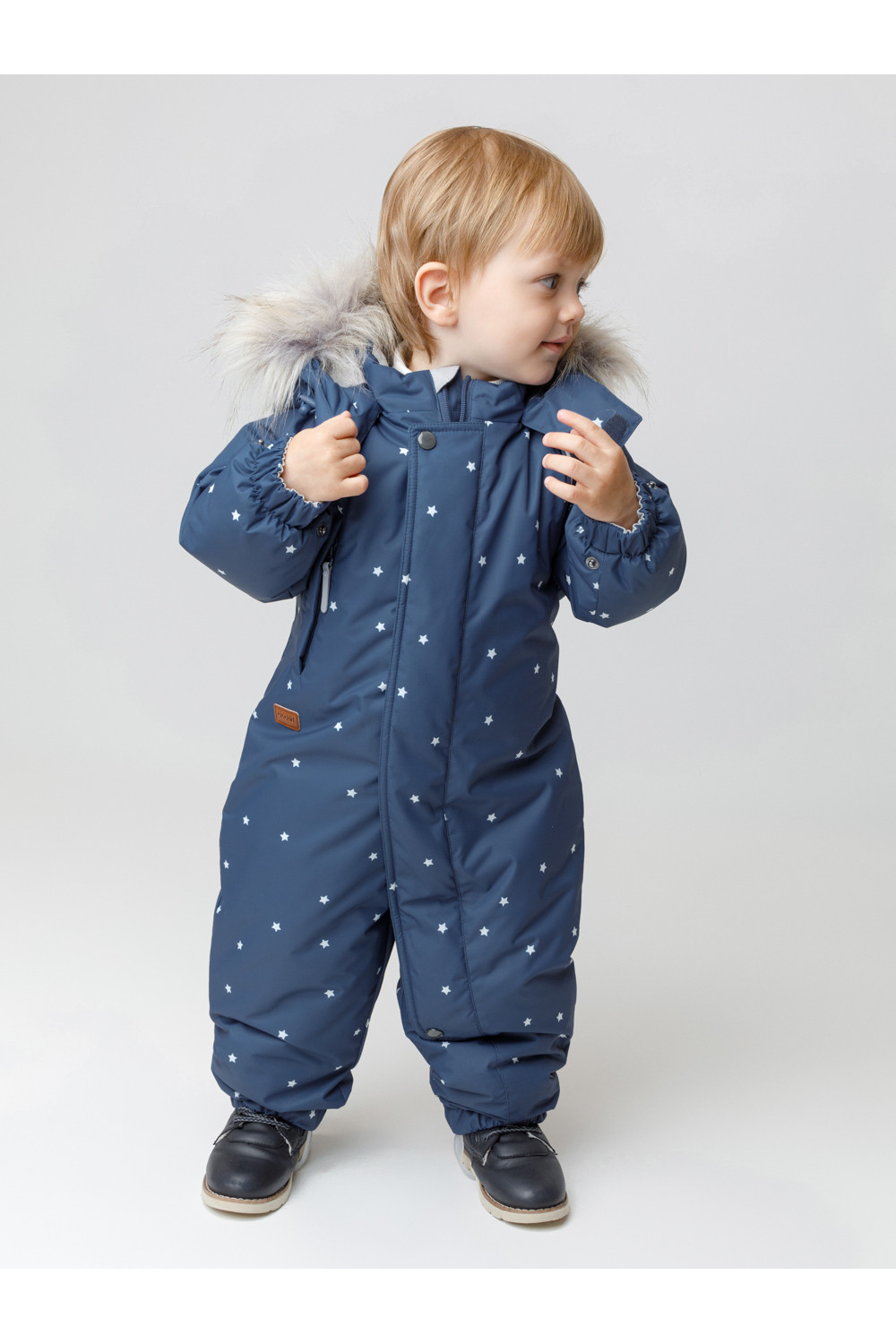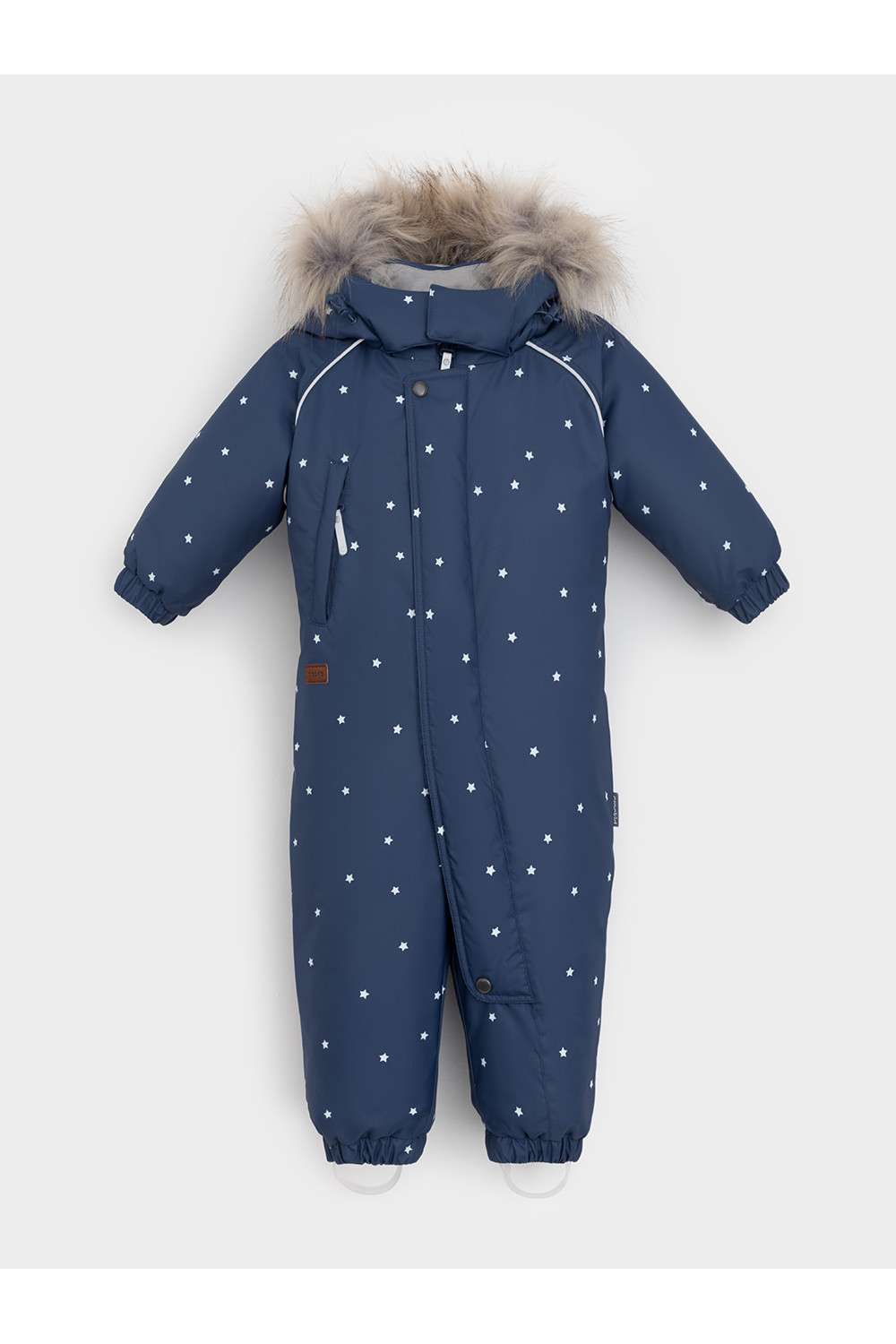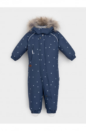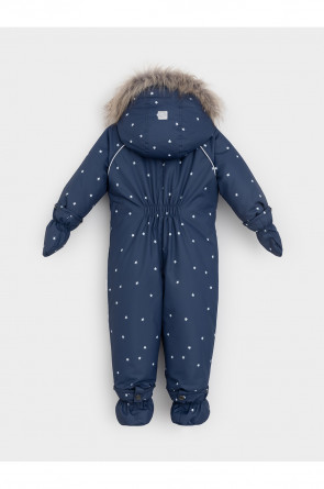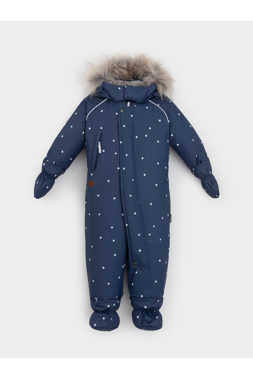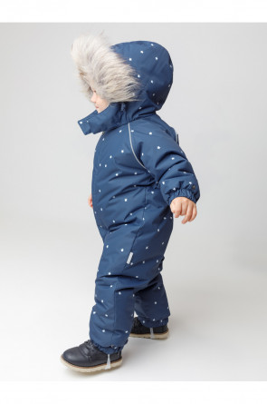 Зимний комбинезон ясельный с утеплителем Fellex®: 300 г/м2. Выполнен из мембранной ткани с дополнительной тефлоновой обработкой, которая предохраняет изделие от загрязнений и отталкивает влагу. Подклад выполнен из 100% хлопка. Комбинезон застёгивается на молнию и внешнюю планку на липучках, предусмотрена защита подбородка. Несъёмный капюшон имеет эластичную утяжку со стопперами и отстёгивающийся мех на молнии. Резинка по спинке для лучшего прилегания. На груди карман на молнии. По рукавам и низу изделия эластичные манжеты, на ножках отстёгивающиеся силиконовые штрипки. В размерах 74-80 и 80-86 в комплекте идут рукавицы и пинетки. Во всех изделиях верхнего ассортимента для безопасности ребёнка предусмотрены светоотражающие элементы.