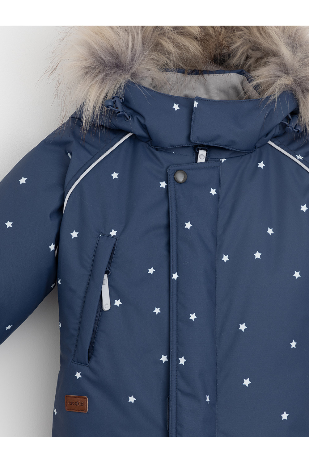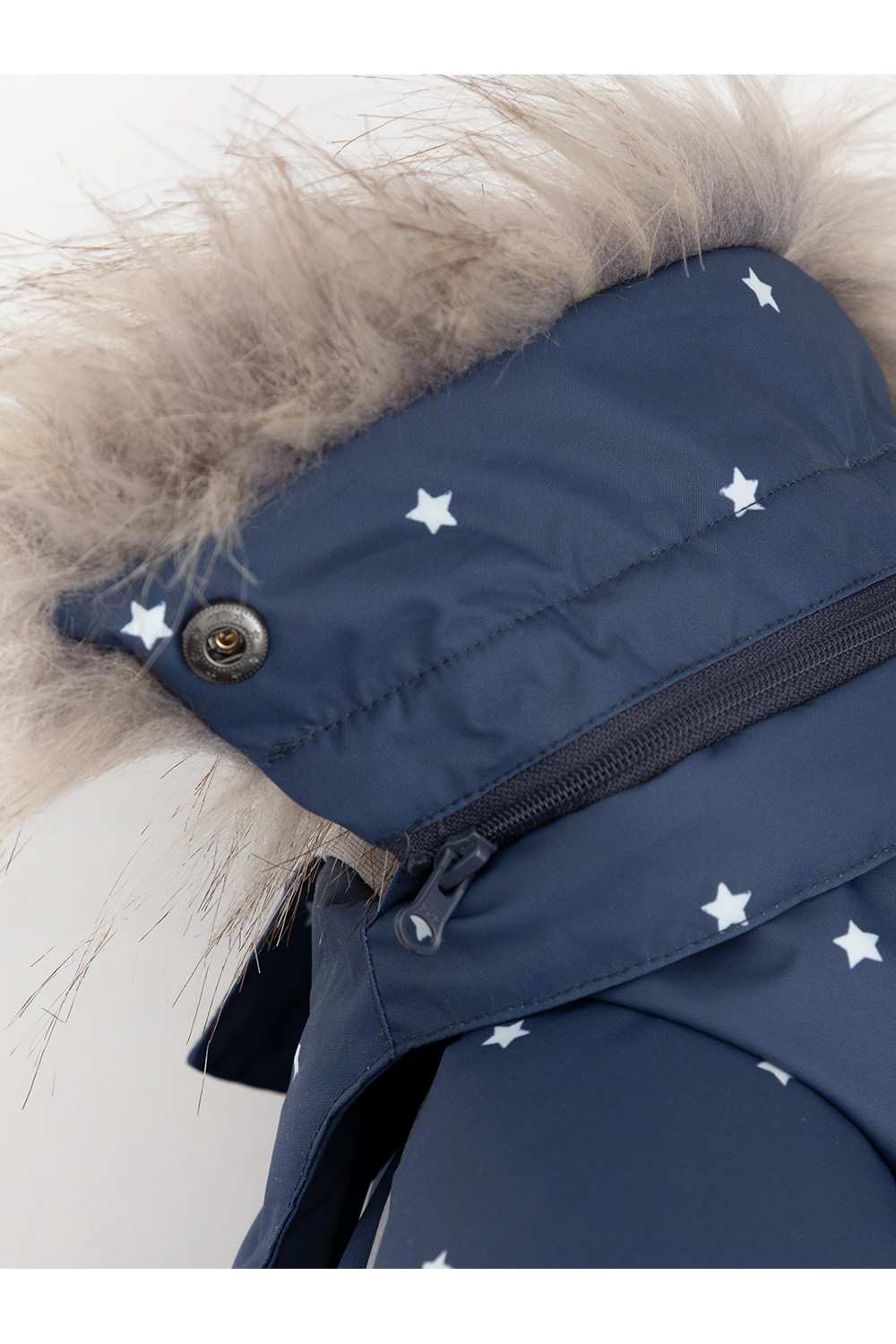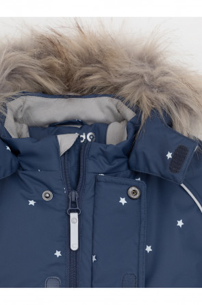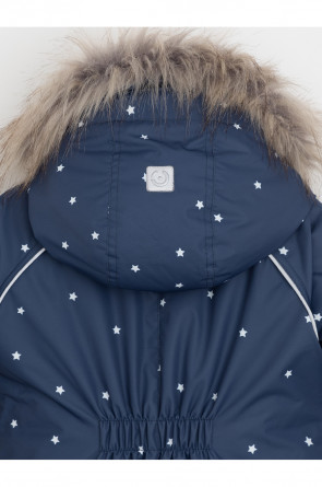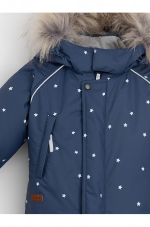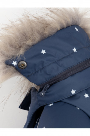 Зимний комбинезон ясельный с утеплителем Fellex®: 300 г/м2. Выполнен из мембранной ткани с дополнительной тефлоновой обработкой, которая предохраняет изделие от загрязнений и отталкивает влагу. Подклад выполнен из 100% хлопка. Комбинезон застёгивается на молнию и внешнюю планку на липучках, предусмотрена защита подбородка. Несъёмный капюшон имеет эластичную утяжку со стопперами и отстёгивающийся мех на молнии. Резинка по спинке для лучшего прилегания. На груди карман на молнии. По рукавам и низу изделия эластичные манжеты, на ножках отстёгивающиеся силиконовые штрипки. В размерах 74-80 и 80-86 в комплекте идут рукавицы и пинетки. Во всех изделиях верхнего ассортимента для безопасности ребёнка предусмотрены светоотражающие элементы.