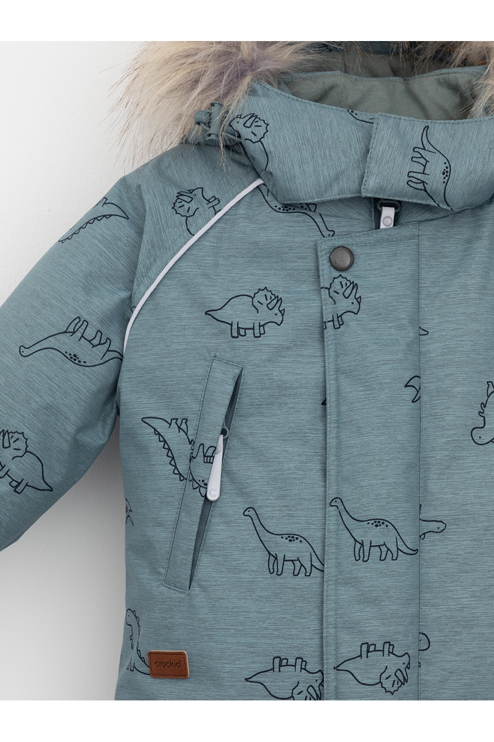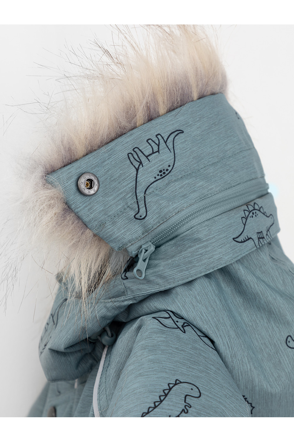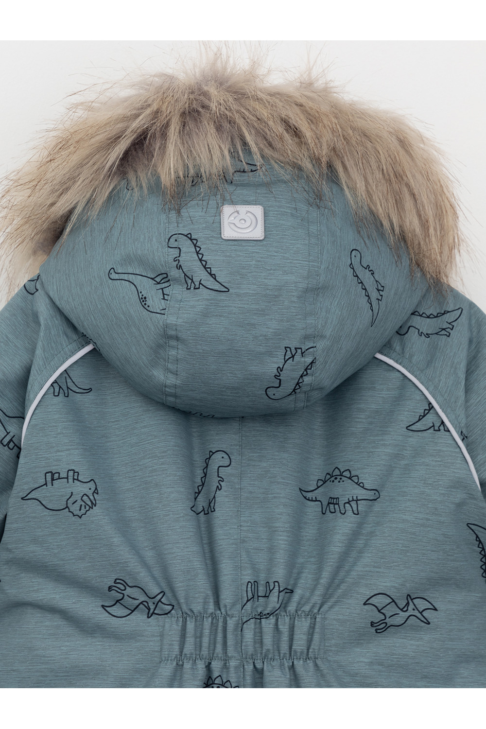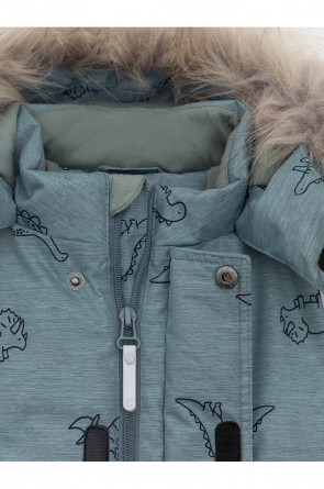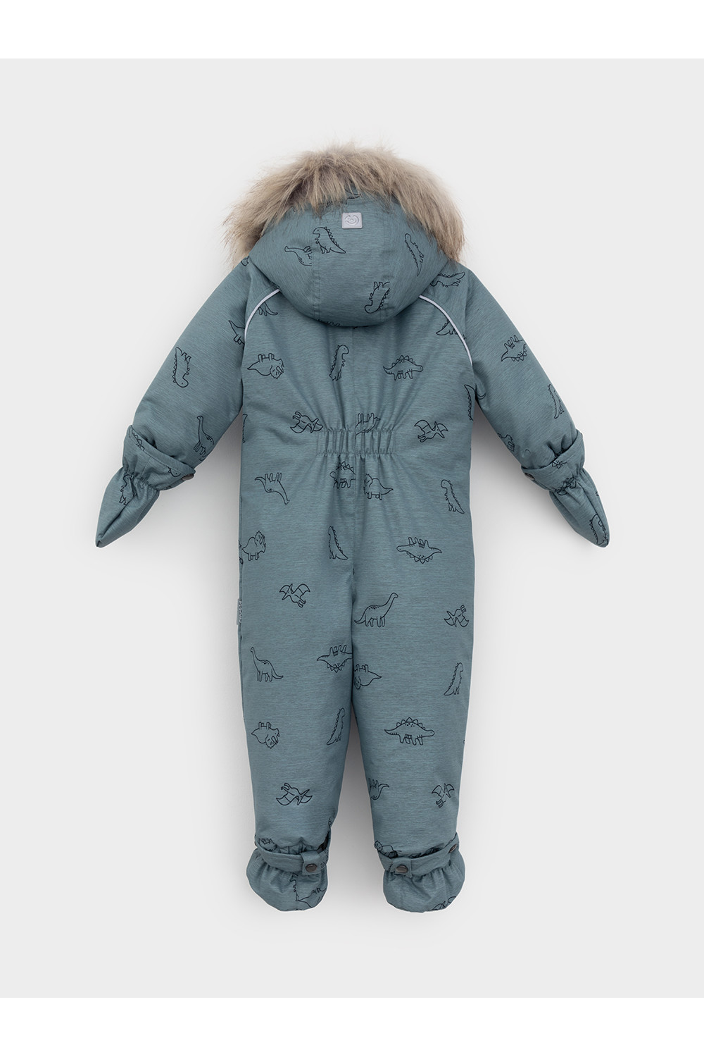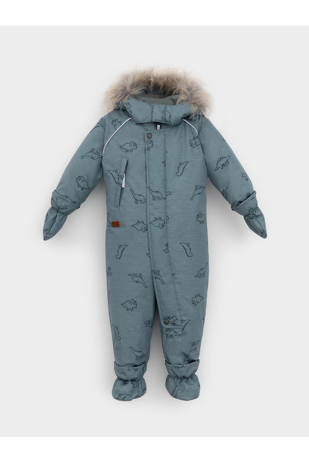 Зимний комбинезон ясельный с утеплителем Fellex®: 300 г/м2. Выполнен из мембранной ткани с дополнительной тефлоновой обработкой, которая предохраняет изделие от загрязнений и отталкивает влагу. Подклад выполнен из 100% хлопка. Комбинезон застёгивается на молнию и внешнюю планку на липучках, предусмотрена защита подбородка. Несъёмный капюшон имеет эластичную утяжку со стопперами и отстёгивающийся мех на молнии. Резинка по спинке для лучшего прилегания. На груди карман на молнии. По рукавам и низу изделия эластичные манжеты, на ножках отстёгивающиеся силиконовые штрипки. В размерах 74-80 и 80-86 в комплекте идут рукавицы и пинетки. Во всех изделиях верхнего ассортимента для безопасности ребёнка предусмотрены светоотражающие элементы.