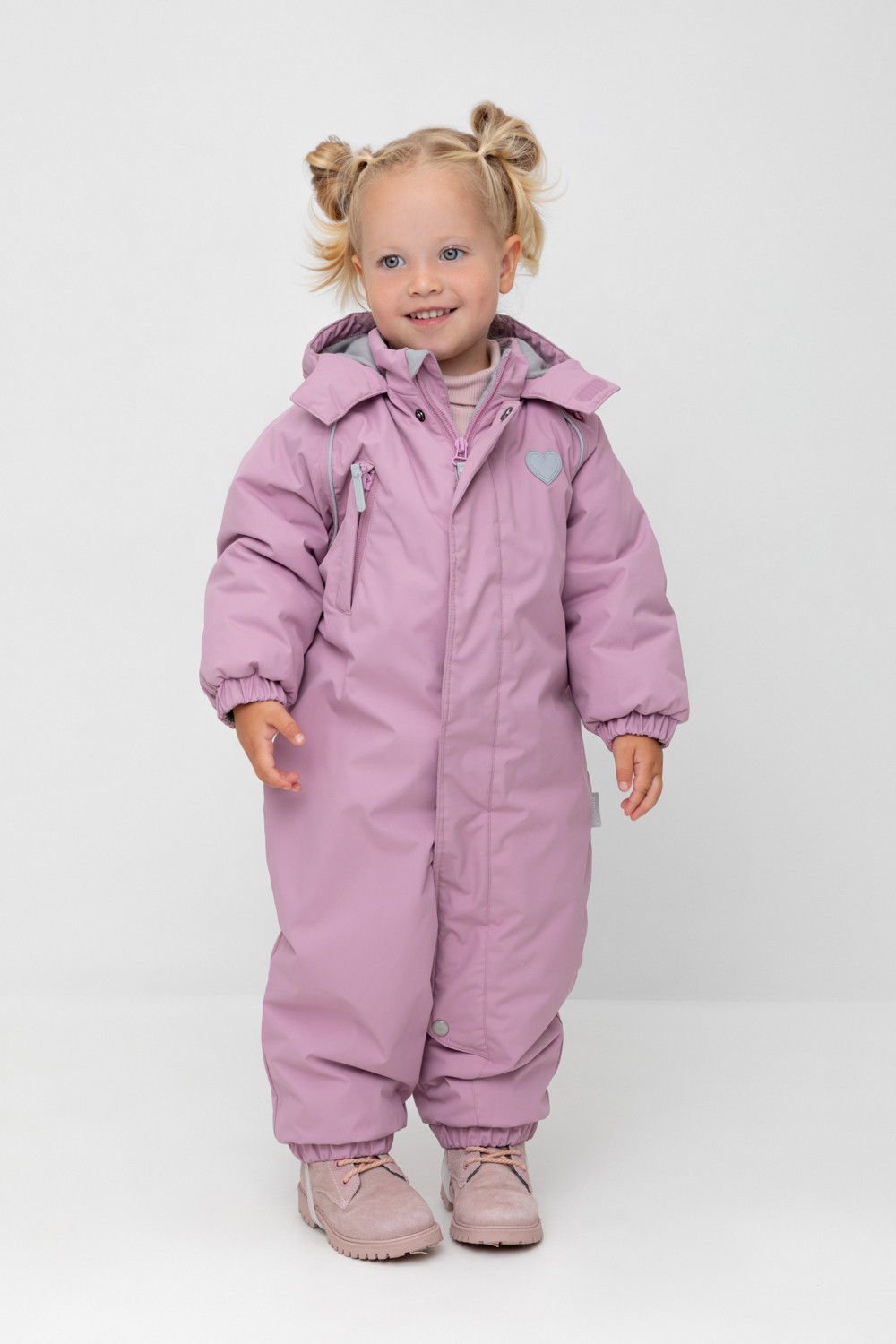 • Дополнительно в размерах 74-80, 80-86 пристегивающиеся утепленные варежки и пинетки.