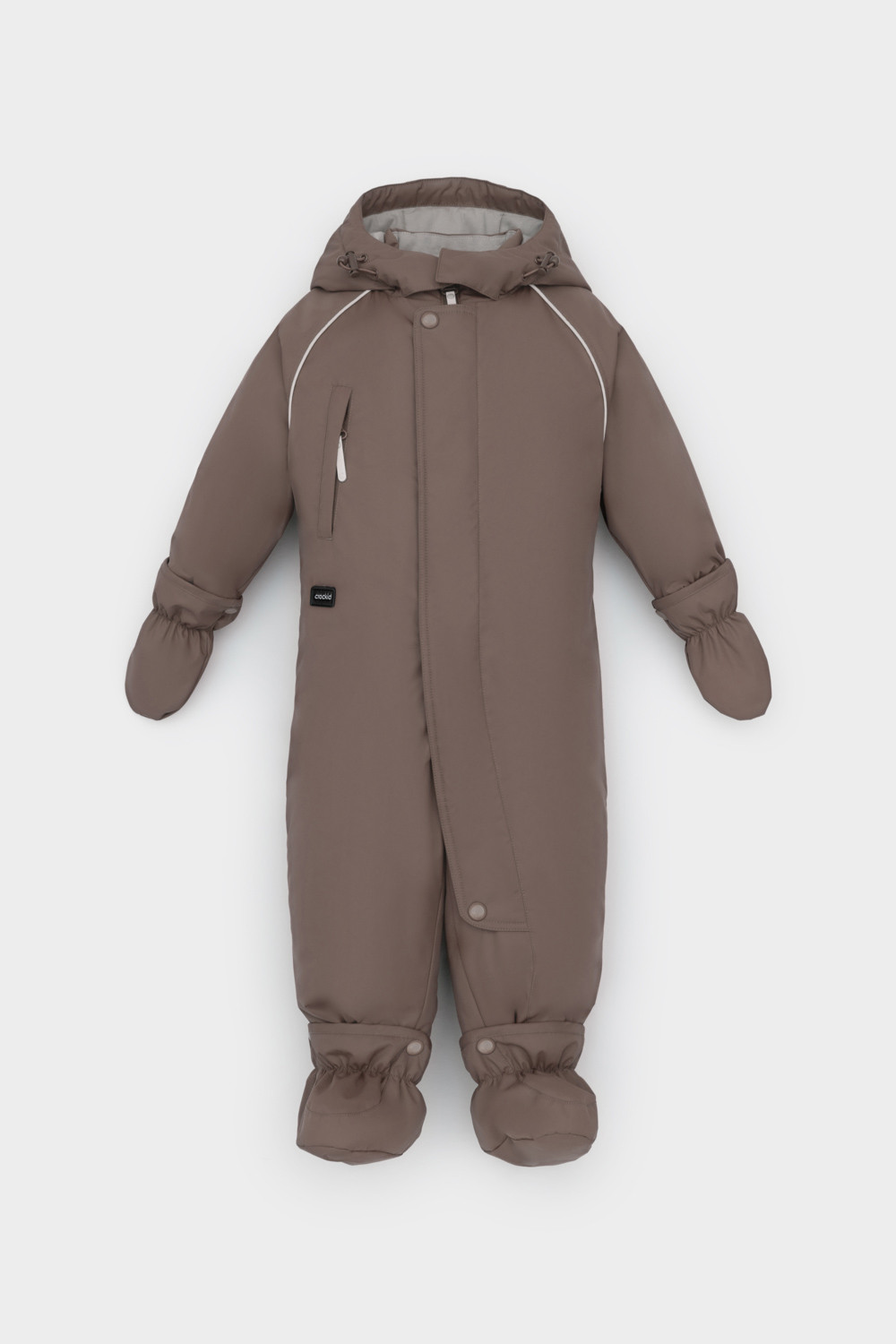 • Дополнительно в размерах 74-80, 80-86 пристегивающиеся утепленные варежки и пинетки.