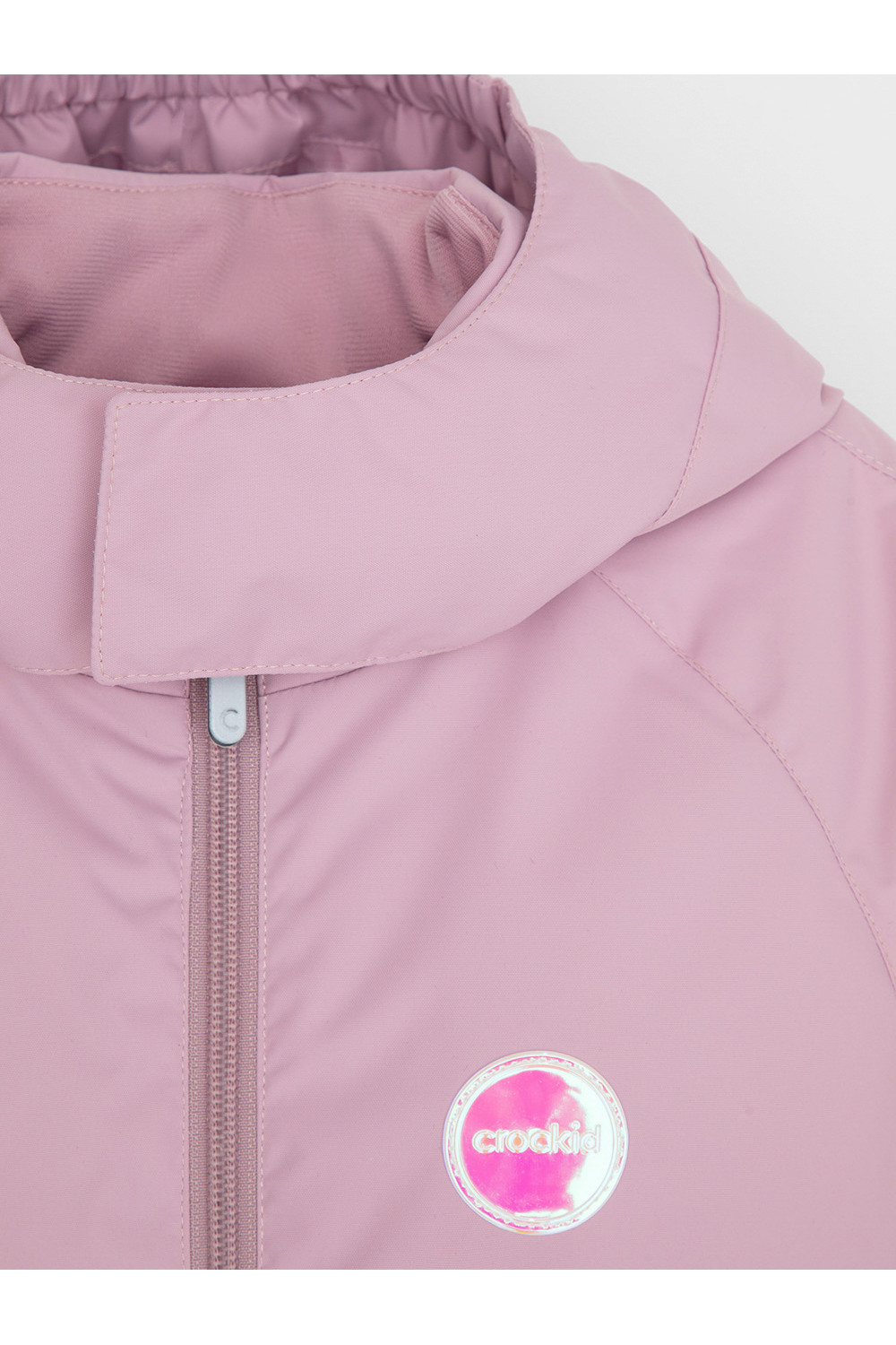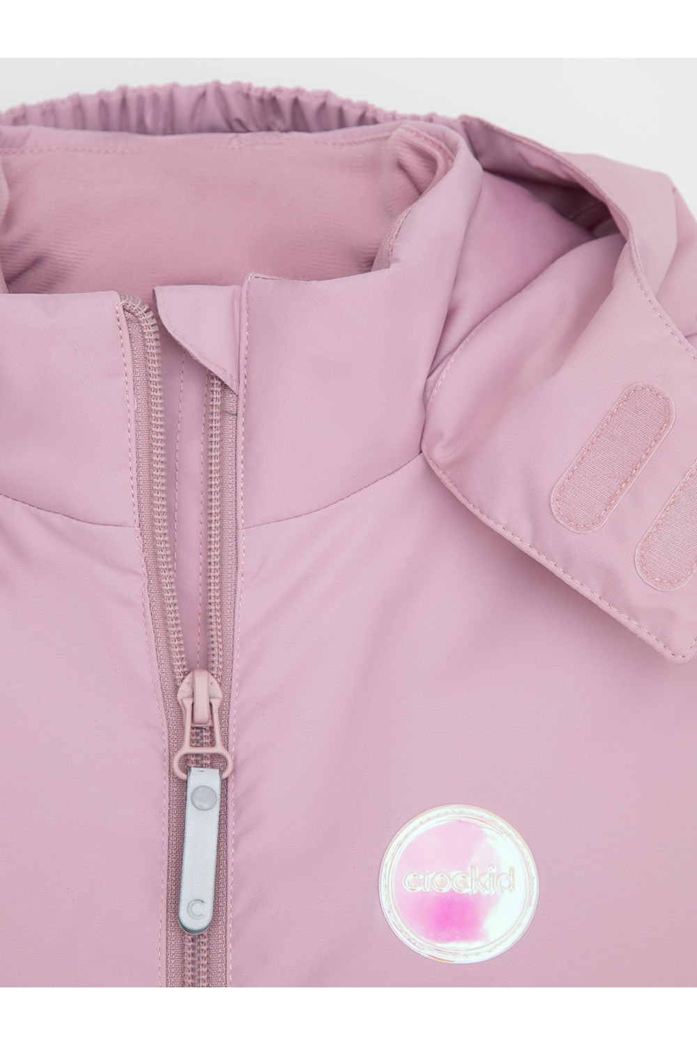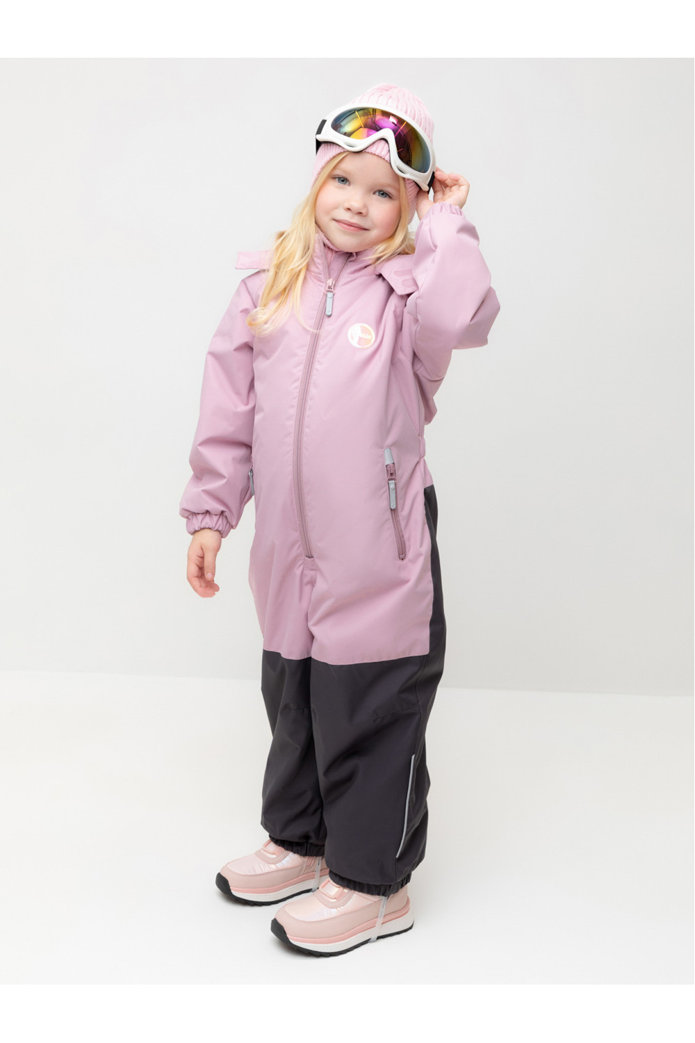 Демисезонный комбинезон для девочки с утеплителем SEE®: 120 г/м2. Выполнен из мембранной ткани с дополнительной тефлоновой обработкой. Данный вид обработки предохраняет изделие от загрязнения и лучше отводит влагу. Подклад из 100% полиэстра. У изделия удлиненная молния для легкого одевания с защитой подбородка. Несъемный капюшон имеет эластичную резинку для лучшего прилегания. По низу рукавов и брючин эластичные манжеты. Функциональный карман с молнией на груди. Для фиксации комбинезона используются съемные силиконовые штрипки. Во всех изделиях верхнего ассортимента для безопасности ребенка предусмотрены светоотражающие элементы.