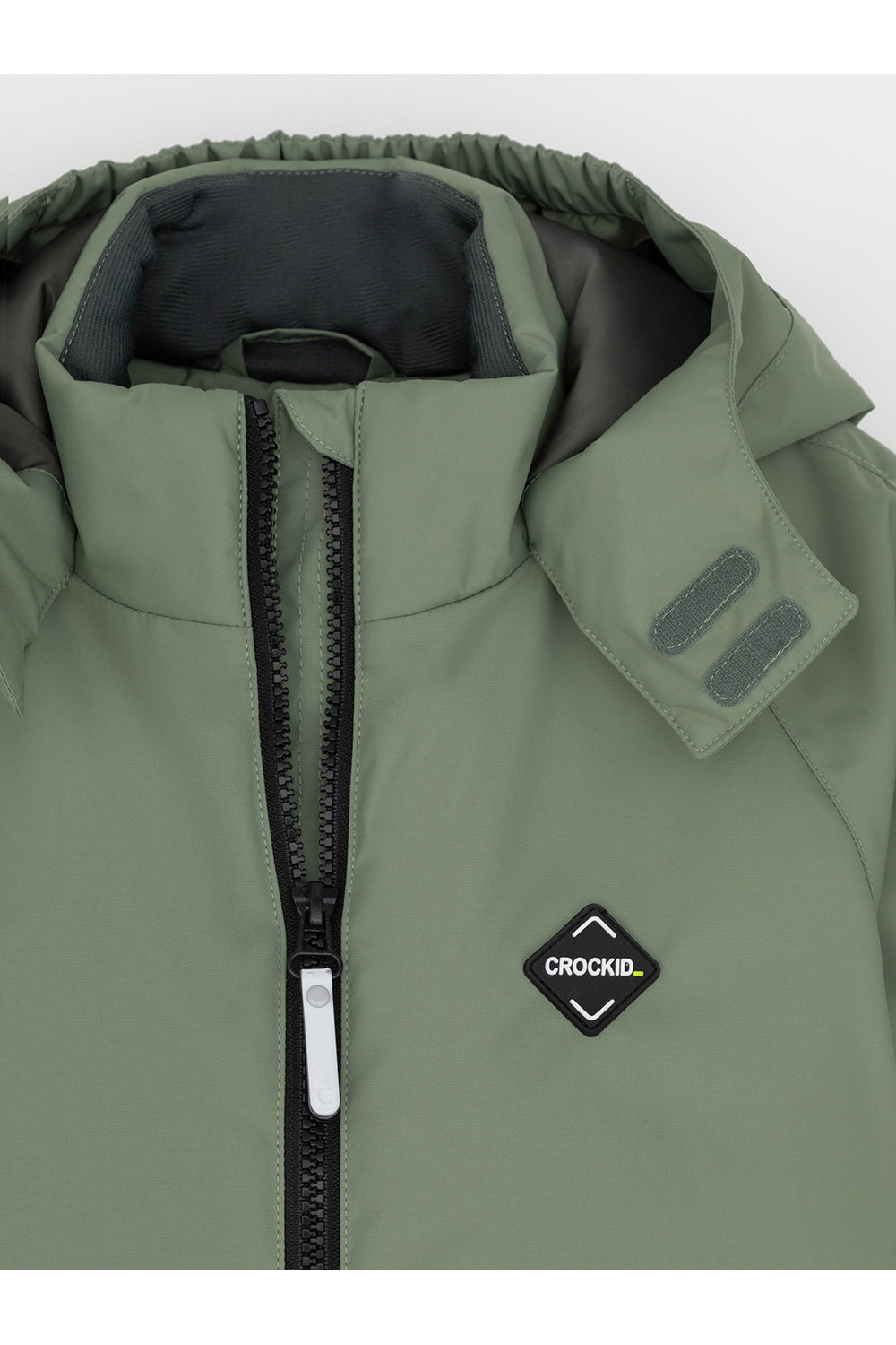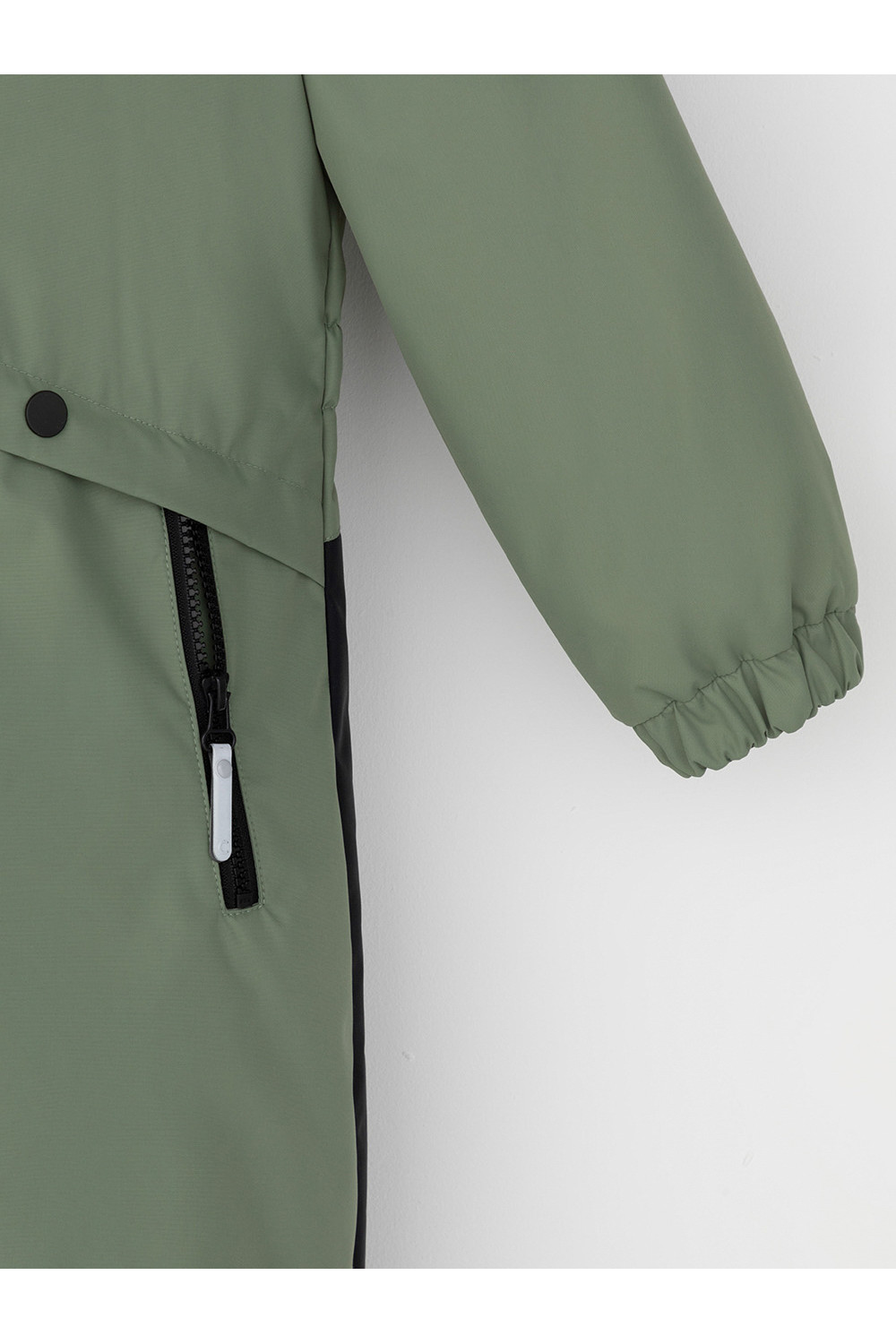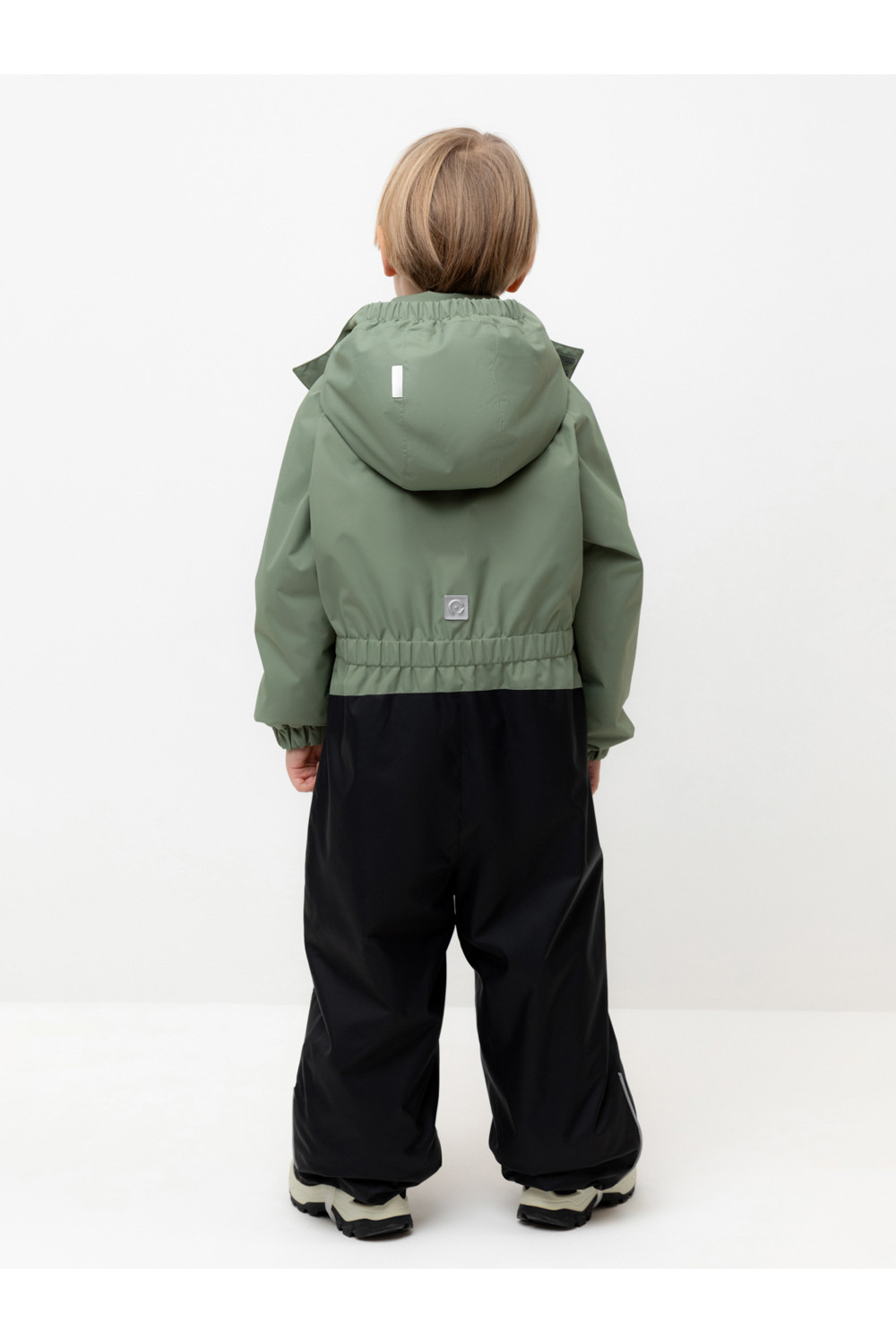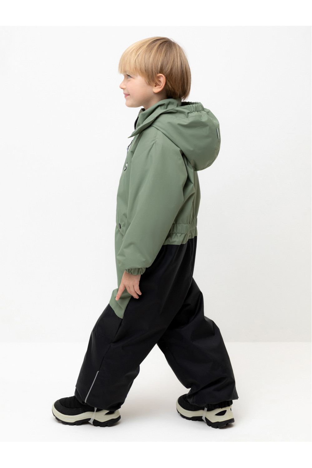Демисезонный комбинезон для мальчика с утеплителем SEE®: 120 г/м2. Выполнен из мембранной ткани с дополнительной тефлоновой обработкой. Данный вид обработки предохраняет изделие от загрязнения и лучше отводит влагу. Подклад из 100% полиэстра. У изделия удлиненная молния для легкого одевания с защитой подбородка. Утяжка по спинке со стопперами. Несъемный капюшон имеет эластичную резинку для лучшего прилегания. По низу рукавов эластичные манжеты. По бокам два кармана на молнии. Для фиксации комбинезона используются съемные силиконовые штрипки. Во всех изделиях верхнего ассортимента для безопасности ребенка предусмотрены светоотражающие элементы.