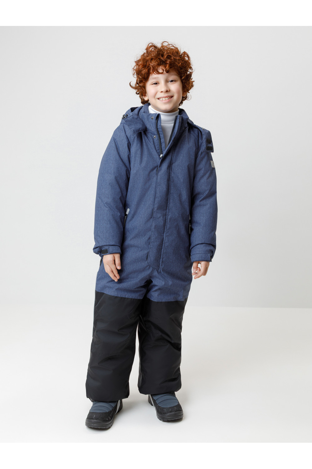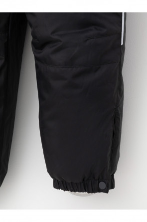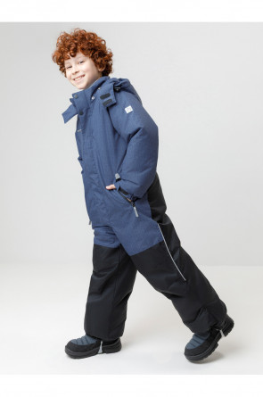 Зимний комбинезон для мальчика с утеплителем SEE®: 250 г/м2 . Выполнен из мембранной ткани с дополнительной тефлоновой обработкой, которая предохраняет изделие от загрязнений и отталкивает влагу. Подклад выполнен из 100% полиэстера Tricot. Комбинезон застёгивается на молнию и внешнюю планку на липучках и кнопках, предусмотрена защита подбородка. Съёмный капюшон имеет эластичную утяжку со стопперами. Резинка по спинке обеспечивает лучшее прилегание. По бокам два кармана на молнии. Эластичные манжеты на рукавах регулируются по ширине с помощью липучки, по низу изделия - с помощью кнопки. Внутренняя противоснежная юбка защищает обувь от попадания снега и удерживает комбинезон в закреплённом положении. В размерах с 98-104 по 116-122 предусмотрены отстёгивающиеся штрипки. Во всех изделиях верхнего ассортимента для безопасности ребёнка предусмотрены светоотражающие элементы.