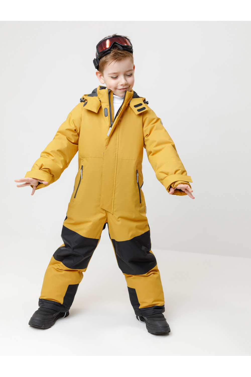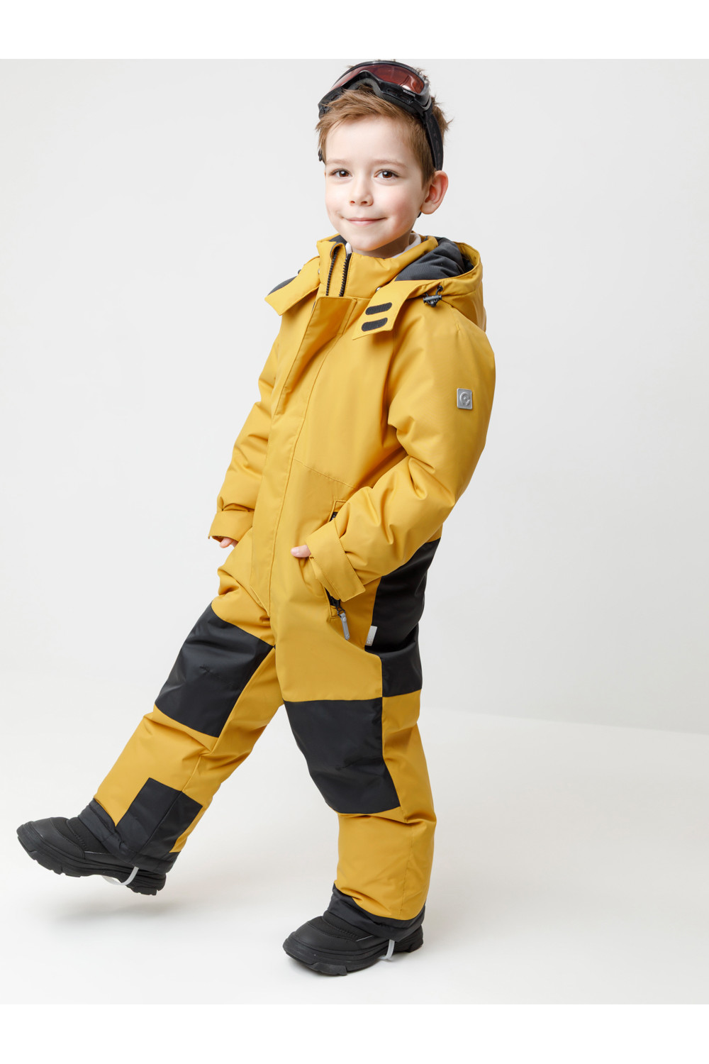 Зимний комбинезон для мальчика с утеплителем SEE®: 250 г/м2 . Выполнен из мембранной ткани с дополнительной тефлоновой обработкой, которая предохраняет изделие от загрязнений и отталкивает влагу. Подклад выполнен из 100% полиэстера Tricot. Комбинезон застёгивается на молнию и внешнюю планку на липучках и кнопках, предусмотрена защита подбородка. Съёмный капюшон имеет эластичную утяжку со стопперами. Резинка по спинке обеспечивает лучшее прилегание. По бокам два кармана на молнии. На рукавах дополнительние внутренние манжеты, ширина регулируются с помощью липучки. Внутренняя противоснежная юбка по низу изделия защищает обувь от попадания снега и удерживает комбинезон в закреплённом положении. В размерах с 98-104 по 116-122 предусмотрены отстёгивающиеся штрипки. Во всех изделиях верхнего ассортимента для безопасности ребёнка предусмотрены светоотражающие элементы.