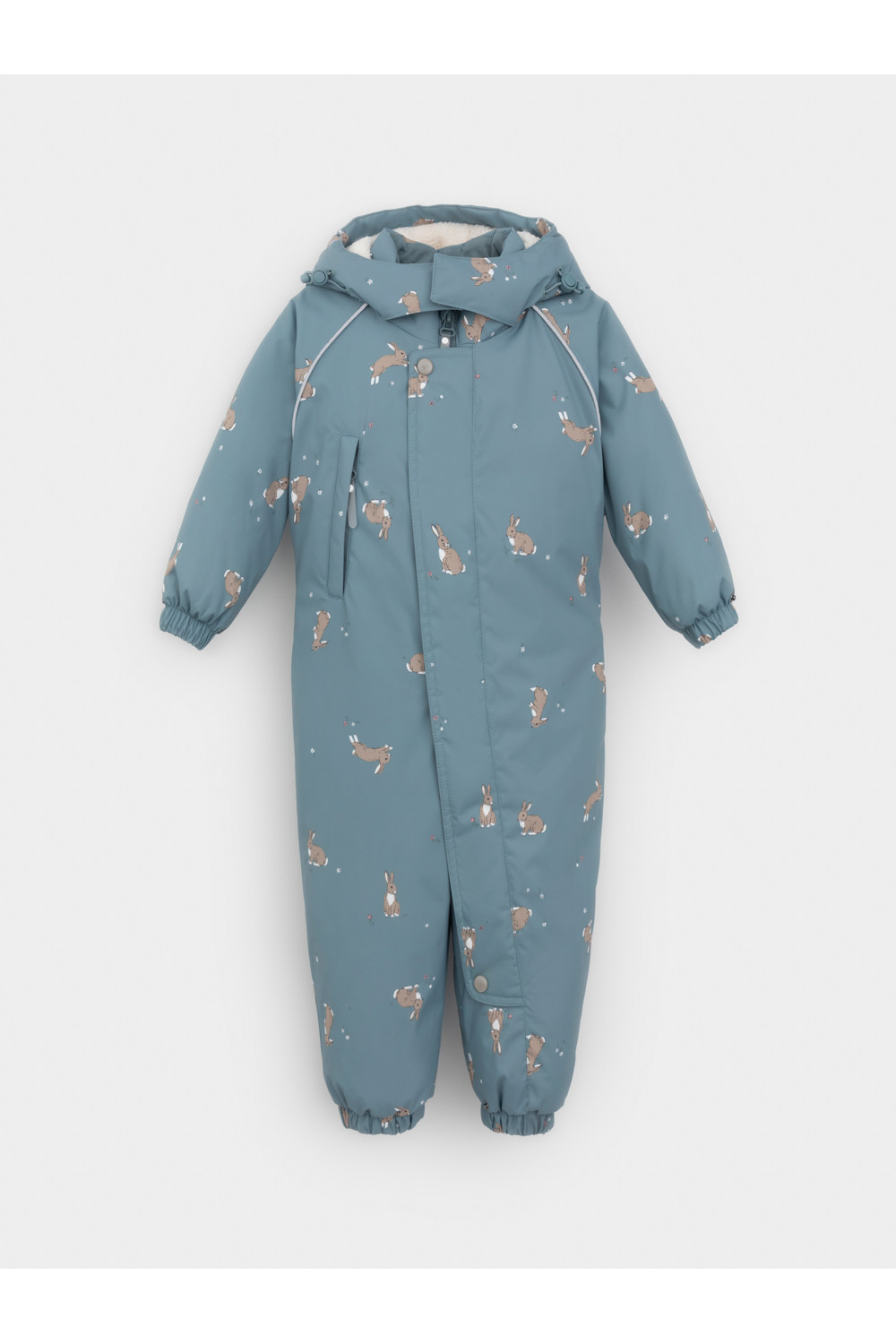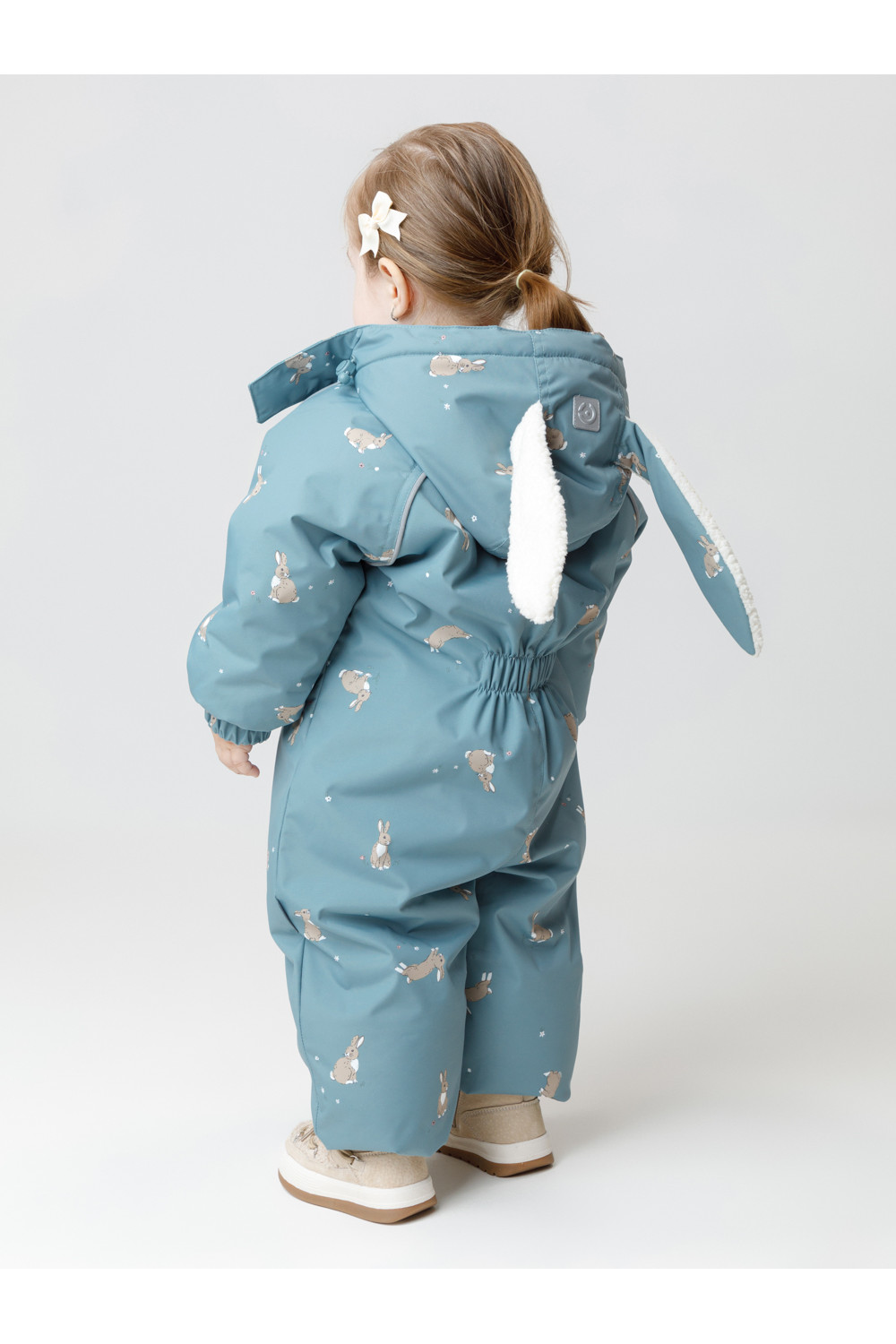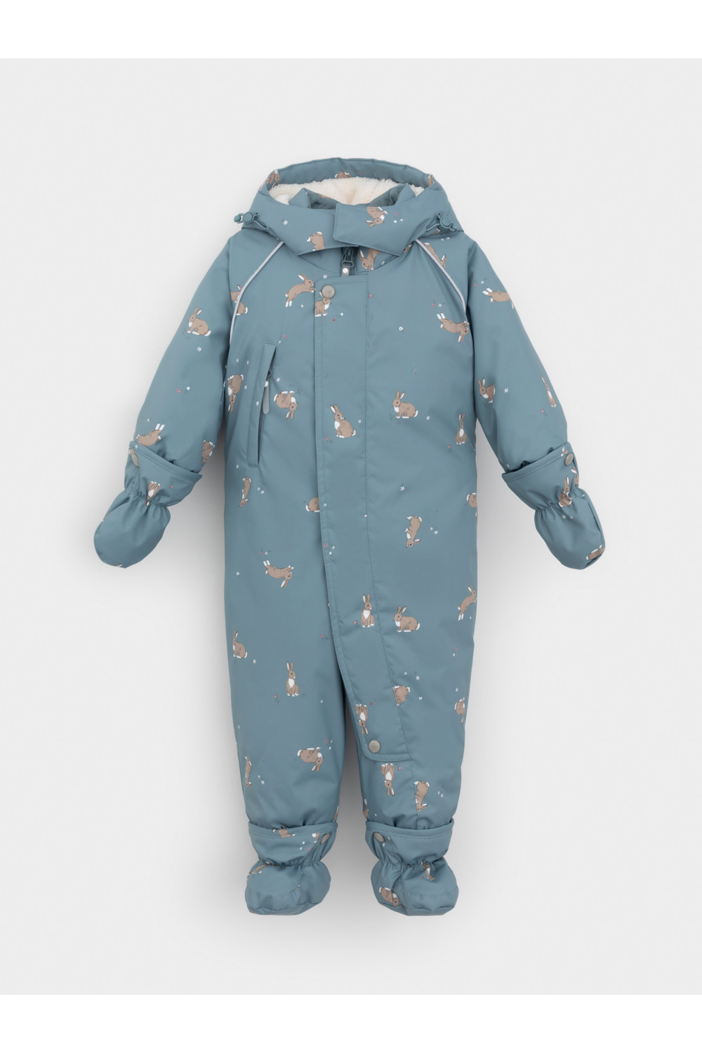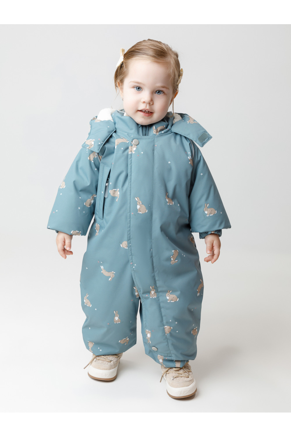 Зимний комбинезон ясельный с утеплителем SEE®: 250 г/м2. Выполнен из мембранной ткани с дополнительной тефлоновой обработкой, которая предохраняет изделие от загрязнений и отталкивает влагу. Подклад выполнен из 100% хлопка. Комбинезон застёгивается на молнию и внешнюю планку на липучках, предусмотрена защита подбородка. Несъёмный капюшон с подкладом из мягкого флиса имеет эластичную утяжку со стопперами и декоративные ушки. Резинка по спинке для лучшего прилегания. На груди карман на молнии. По рукавам и низу изделия эластичные манжеты, на ножках отстёгивающиеся силиконовые штрипки. До размера 80-86 включительно в комплекте идут рукавицы и пинетки. Во всех изделиях верхнего ассортимента для безопасности ребёнка предусмотрены светоотражающие элементы.