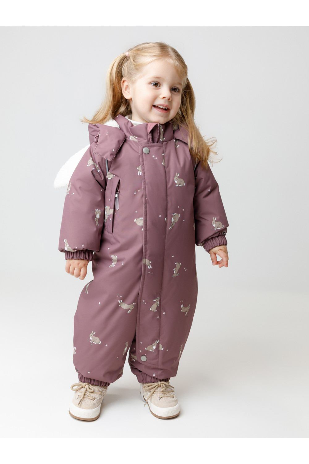 Зимний комбинезон ясельный с утеплителем SEE®: 250 г/м2. Выполнен из мембранной ткани с дополнительной тефлоновой обработкой, которая предохраняет изделие от загрязнений и отталкивает влагу. Подклад выполнен из 100% хлопка. Комбинезон застёгивается на молнию и внешнюю планку на липучках, предусмотрена защита подбородка. Несъёмный капюшон с подкладом из мягкого флиса имеет эластичную утяжку со стопперами и декоративные ушки. Резинка по спинке для лучшего прилегания. На груди карман на молнии. По рукавам и низу изделия эластичные манжеты, на ножках отстёгивающиеся силиконовые штрипки. До размера 80-86 включительно в комплекте идут рукавицы и пинетки. Во всех изделиях верхнего ассортимента для безопасности ребёнка предусмотрены светоотражающие элементы.