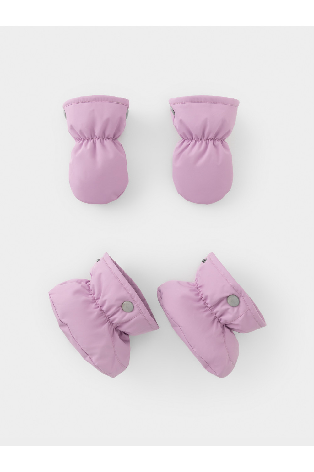 Зимний комбинезон ясельный с утеплителем SEE®: 300 г/м2. Выполнен из мембранной ткани с дополнительной тефлоновой обработкой, которая предохраняет изделие от загрязнений и отталкивает влагу. Подклад выполнен из велюра (80% хлопок, 20% полиэстер) и полиэстера Tricot. Комбинезон застёгивается на молнию и внешнюю планку на липучках, предусмотрена защита подбородка. Несъёмный капюшон имеет эластичную утяжку со стопперами и декоративные ушки. Резинка по спинке для лучшего прилегания. На груди карман на молнии. По рукавам и низу изделия эластичные манжеты, на ножках отстёгивающиеся силиконовые штрипки. До размера 80-86 включительно в комплекте идут рукавицы и пинетки. Во всех изделиях верхнего ассортимента для безопасности ребёнка предусмотрены светоотражающие элементы.
