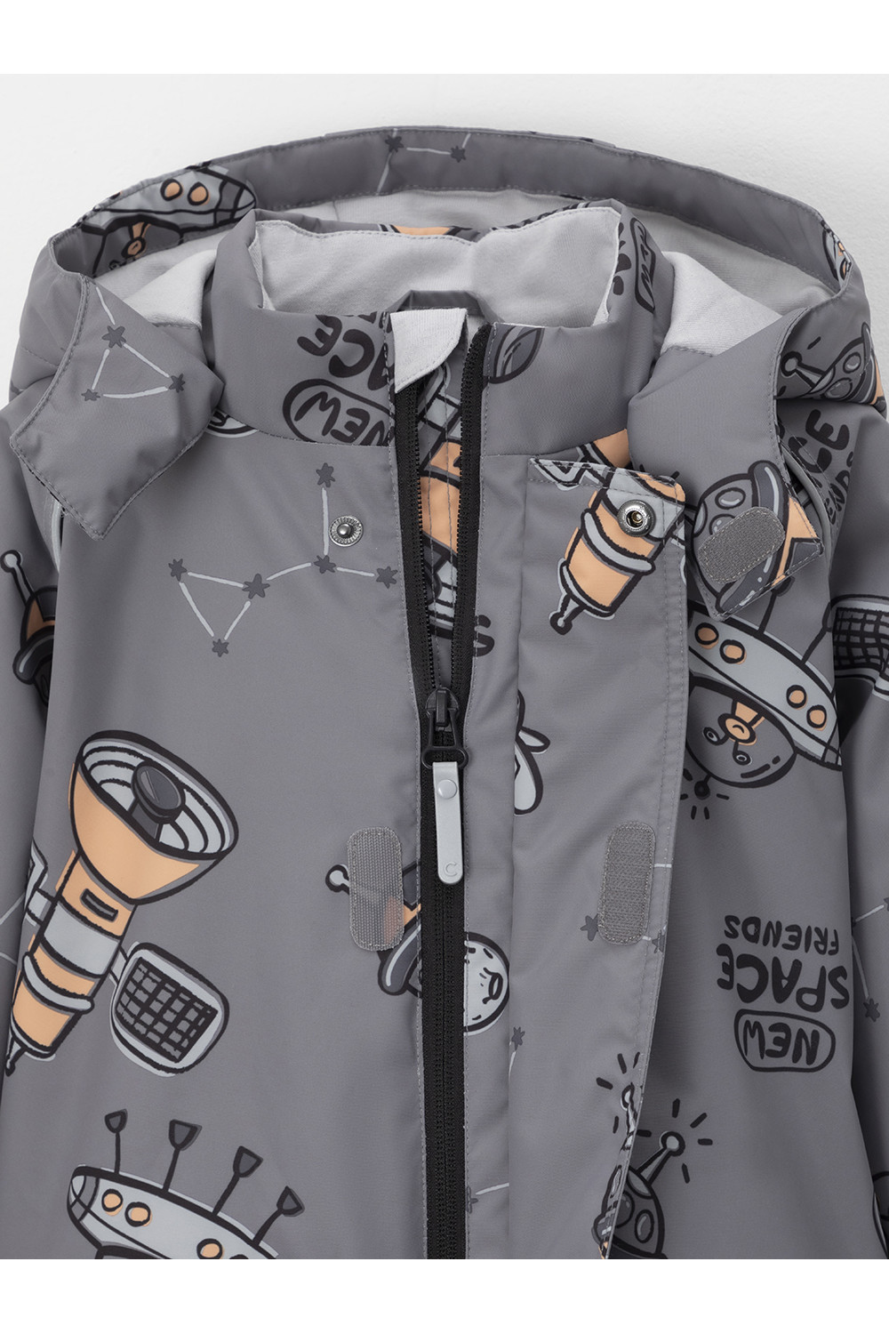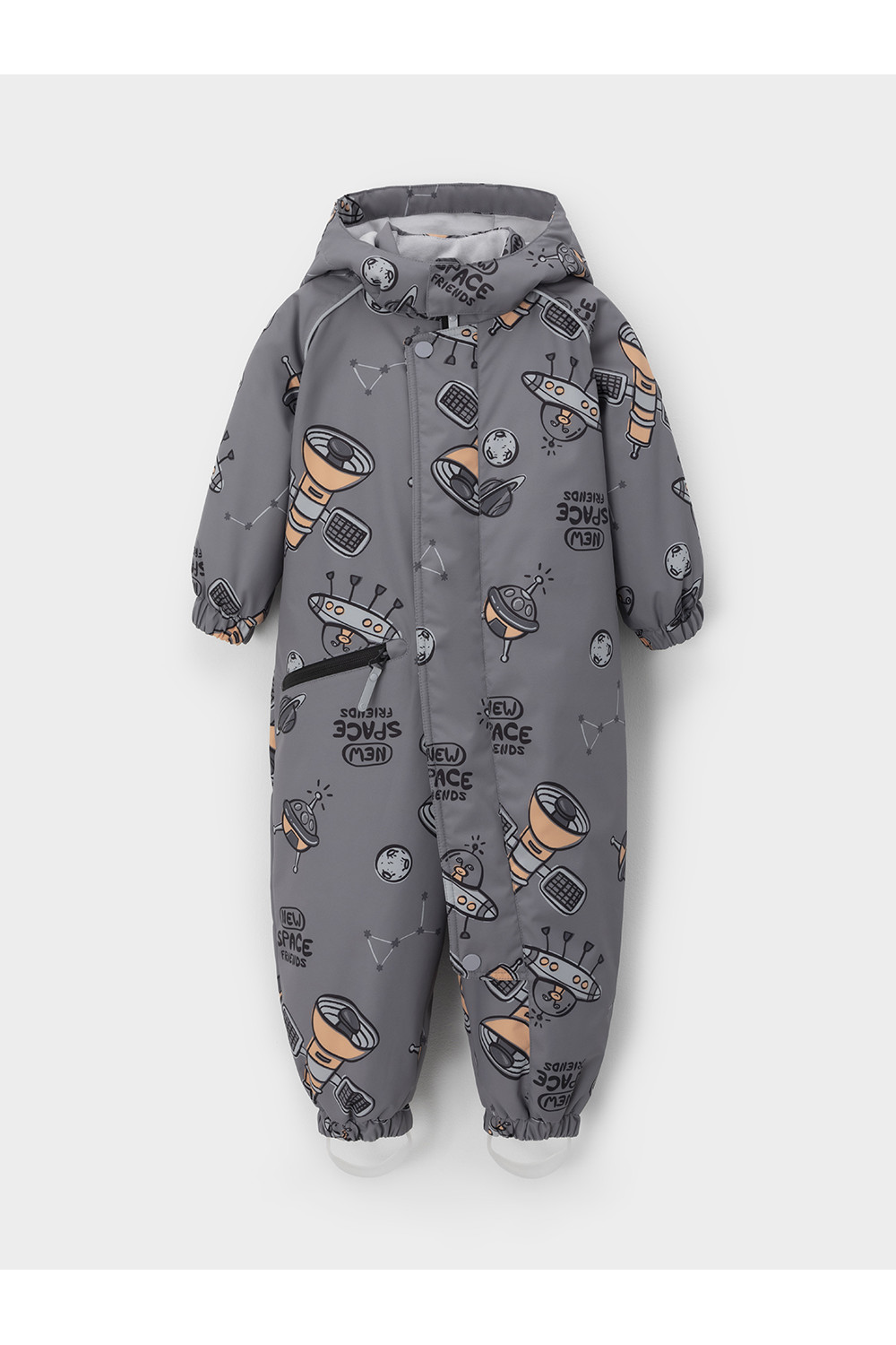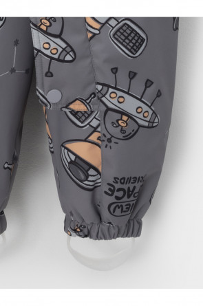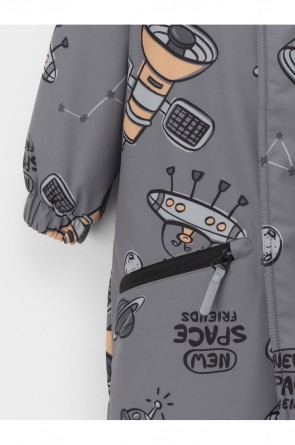 Демисезонный комбинезон ясельный с утеплителем Fellex®, 120 г/м2. Выполнен из мембранной ткани с дополнительной тефлоновой обработкой. Данный вид обработки предохраняет изделие от загрязнения и лучше отводит влагу. Подклад из 100% хлопка. Для удобного одевания комбинезон застёгивается на удлинённую молнию с защитой подбородка. Ветрозащитная планка фиксируется на липучках и кнопках. Утяжка на капюшоне с потайным стоппером. По низу рукавов и брючин, а также на спинке изделия предусмотрены эластичные резинки для лучшего прилегания. Для фиксации комбинезона используются съёмные силиконовые штрипки. В размере 74-80 есть функциональные отвороты на рукавах и брючинах. Во всех изделиях верхнего ассортимента для безопасности ребёнка предусмотрены светоотражающие элементы.