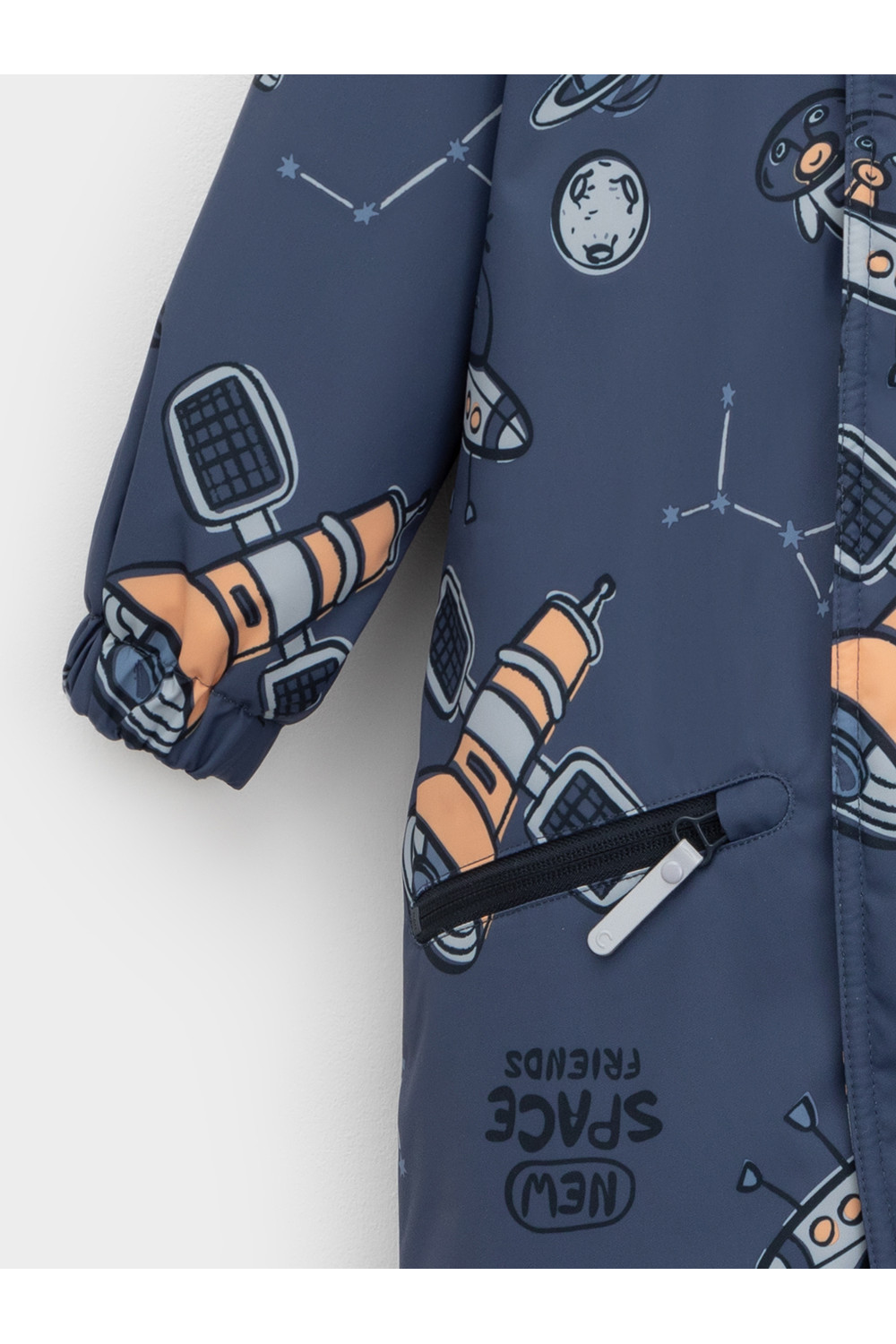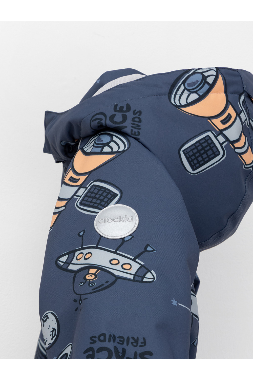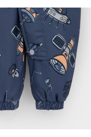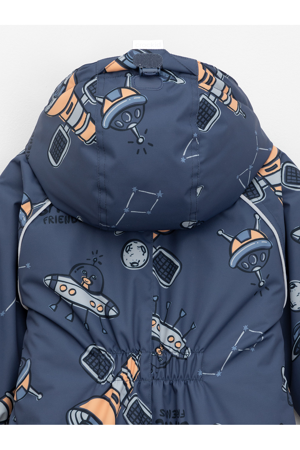 Демисезонный комбинезон ясельный с утеплителем Fellex®, 120 г/м2. Выполнен из мембранной ткани с дополнительной тефлоновой обработкой. Данный вид обработки предохраняет изделие от загрязнения и лучше отводит влагу. Подклад из 100% хлопка. Для удобного одевания комбинезон застёгивается на удлинённую молнию с защитой подбородка. Ветрозащитная планка фиксируется на липучках и кнопках. Утяжка на капюшоне с потайным стоппером. По низу рукавов и брючин, а также на спинке изделия предусмотрены эластичные резинки для лучшего прилегания. Для фиксации комбинезона используются съёмные силиконовые штрипки. В размере 74-80 есть функциональные отвороты на рукавах и брючинах. Во всех изделиях верхнего ассортимента для безопасности ребёнка предусмотрены светоотражающие элементы.