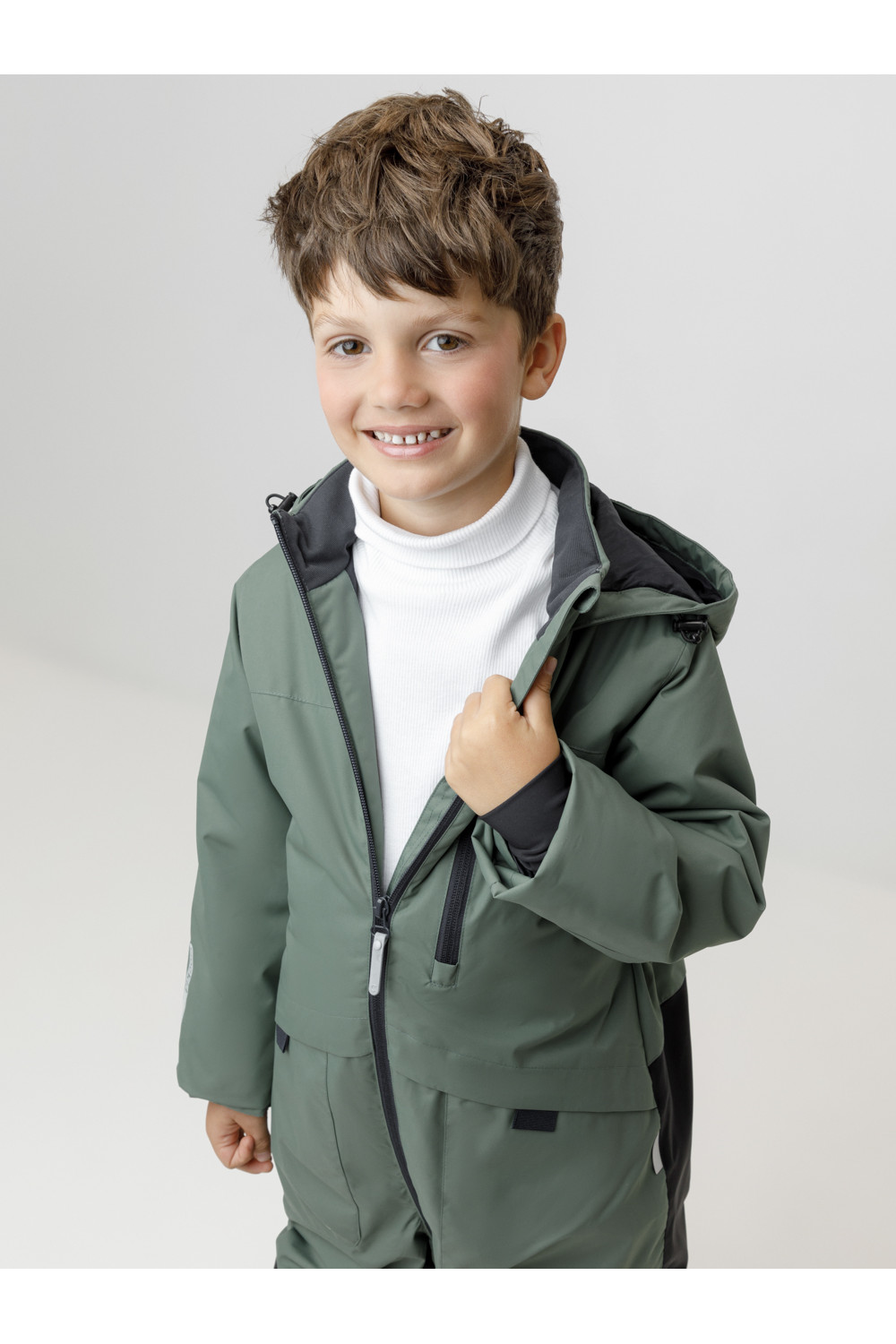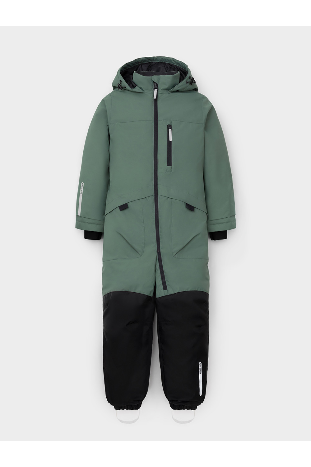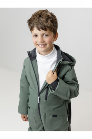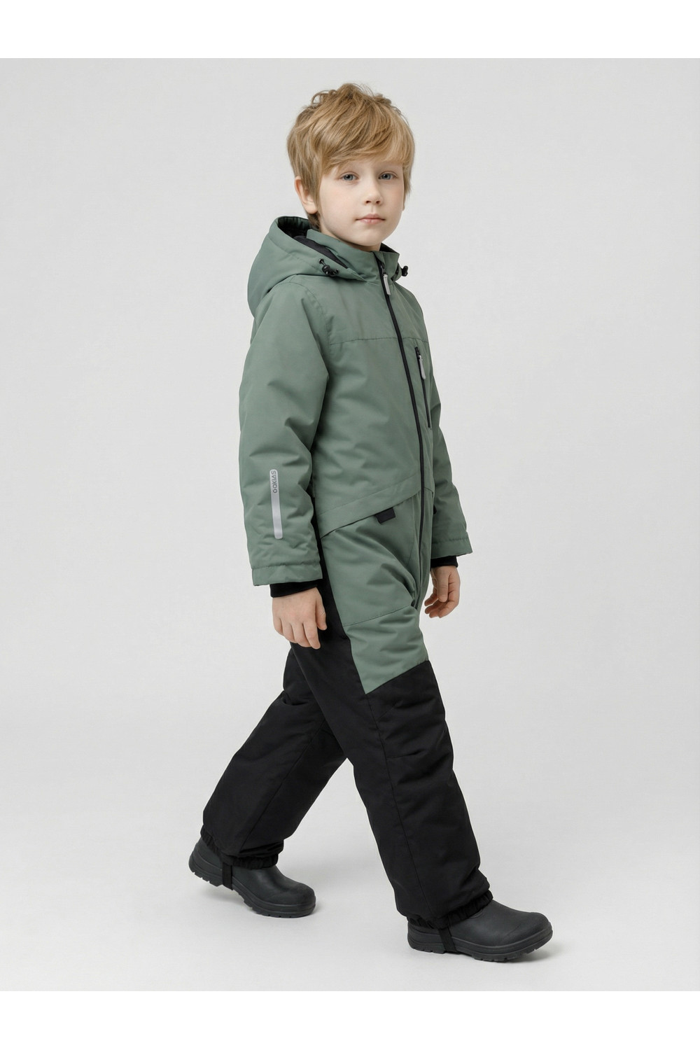 Демисезонный комбинезон для мальчика с утеплителем Fellex®, 120 г/м2. Выполнен из мембранной ткани с дополнительной тефлоновой обработкой. Данный вид обработки предохраняет изделие от загрязнения и лучше отводит влагу. Подклад из 100% полиэстера. Для удобного одевания комбинезон застёгивается на удлинённую молнию с защитой подбородка. Капюшон не снимается, по бокам эластичная утяжка со стопперами. Внутри рукавов мягкие манжеты из лайкры. По низу и по спинке изделия предусмотрены эластичные резинки для лучшего прилегания. Для фиксации комбинезона используются съёмные силиконовые штрипки. Во всех изделиях верхнего ассортимента для безопасности ребёнка предусмотрены светоотражающие элементы.