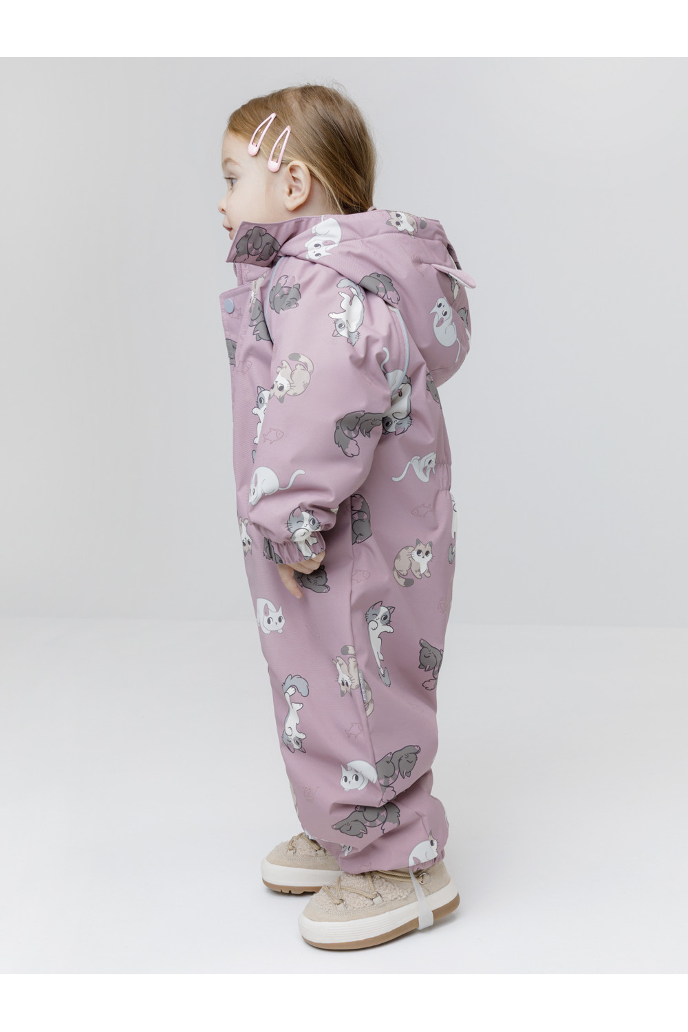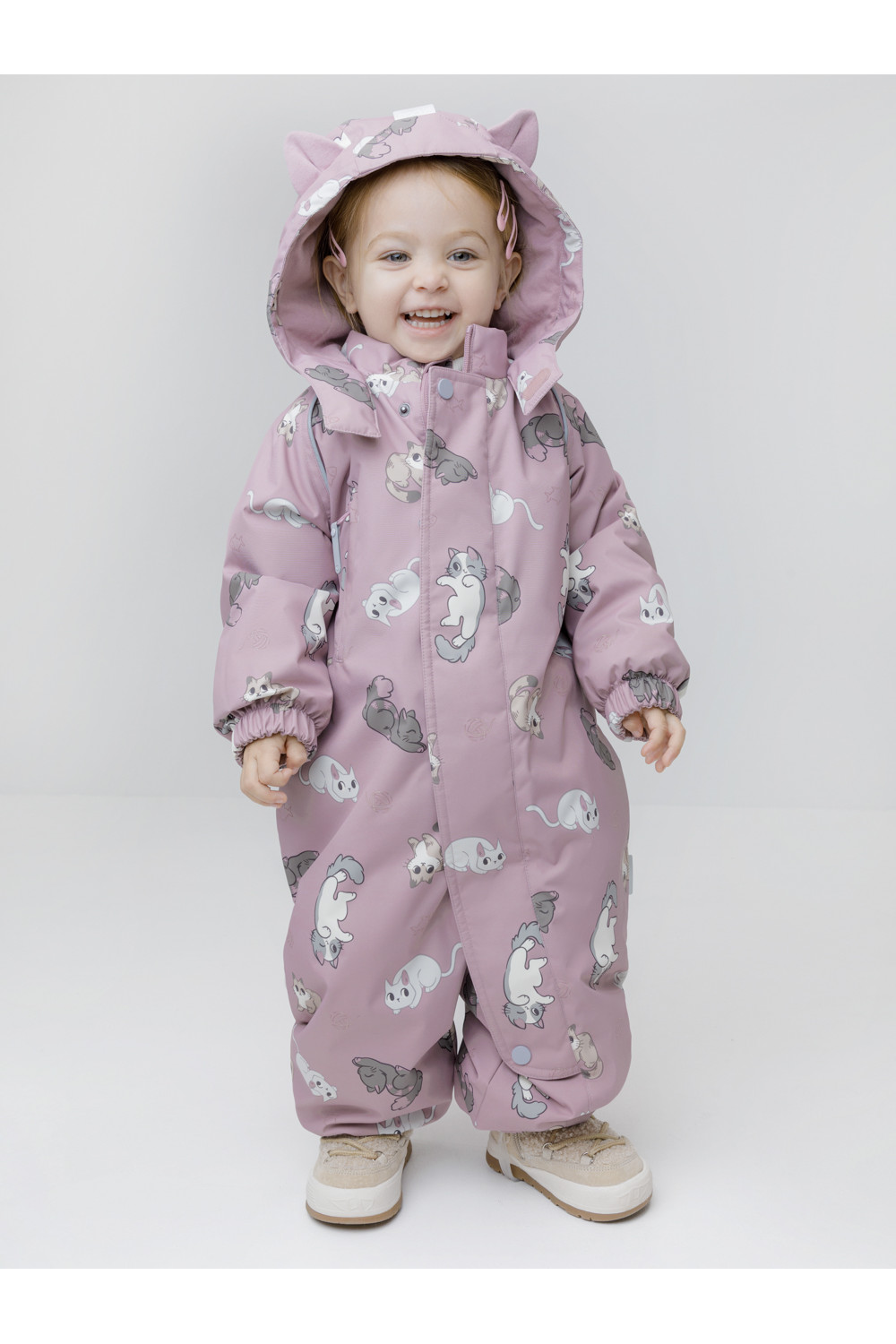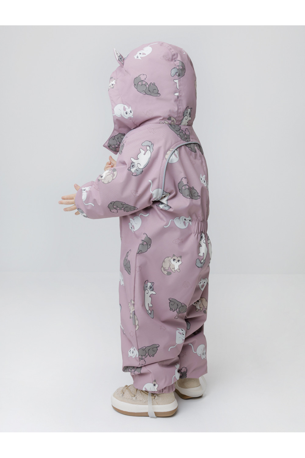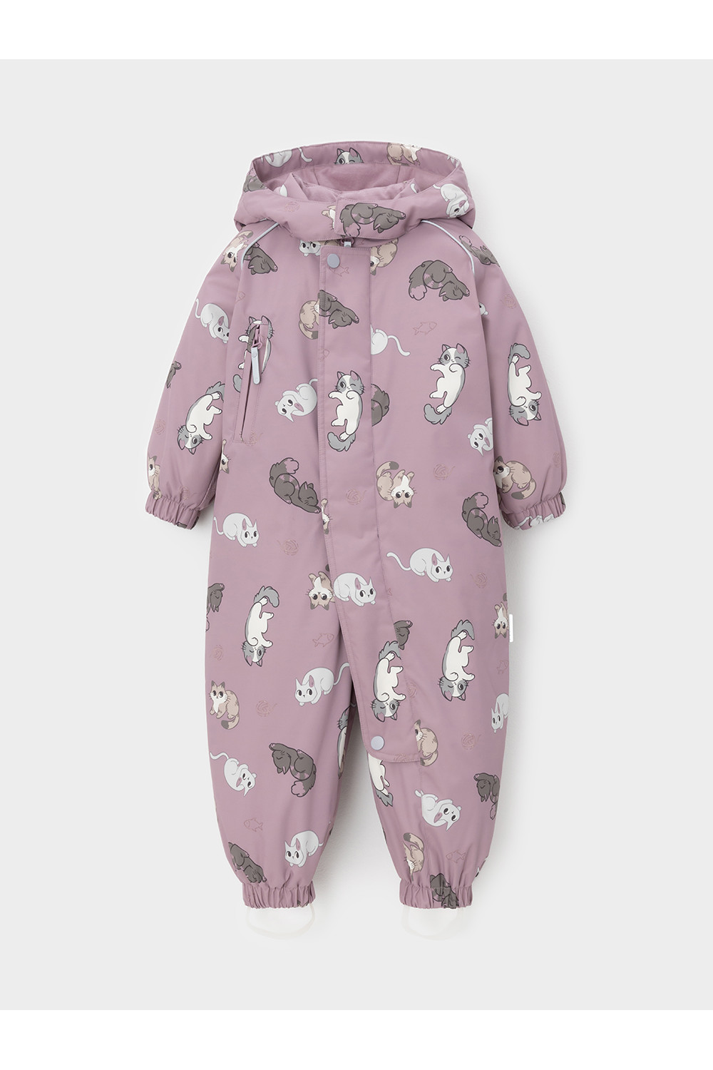 Демисезонный комбинезон ясельный с утеплителем SEE, 120 г/м2. Выполнен из мембранной ткани с дополнительной тефлоновой обработкой. Данный вид обработки предохраняет изделие от загрязнения и лучше отводит влагу. Подклад из 100% хлопка. Для удобного одевания комбинезон застёгивается на удлинённую молнию с защитой подбородка. Ветрозащитная планка фиксируется на липучках и кнопках. Утяжка на капюшоне с потайным стоппером. По низу рукавов и брючин, а также на спинке изделия предусмотрены эластичные резинки для лучшего прилегания. Для фиксации комбинезона используются съёмные силиконовые штрипки. В размерах 68-74 и 74-80 есть функциональные отвороты на рукавах и брючинах. Во всех изделиях верхнего ассортимента для безопасности ребёнка предусмотрены светоотражающие элементы.