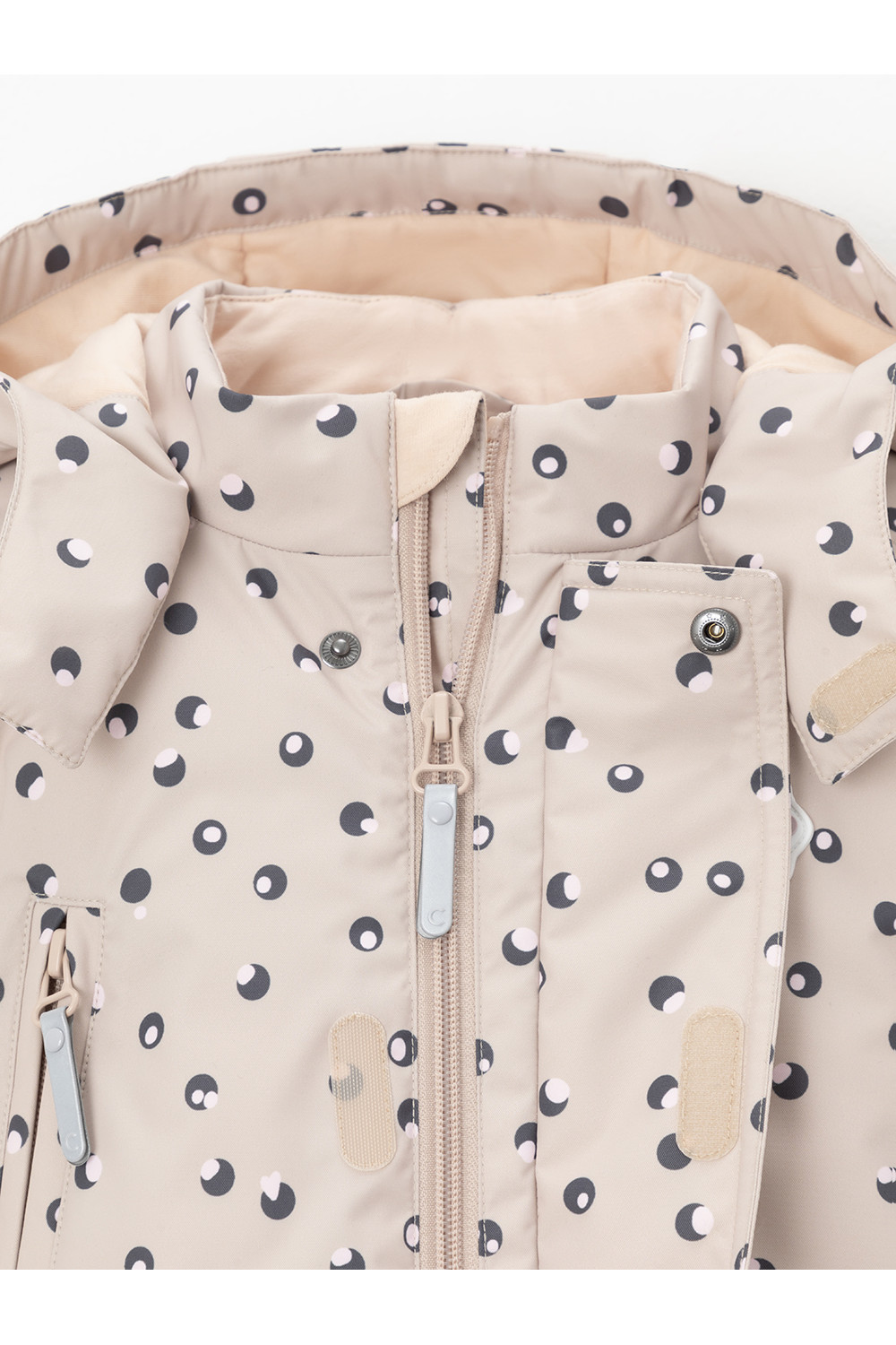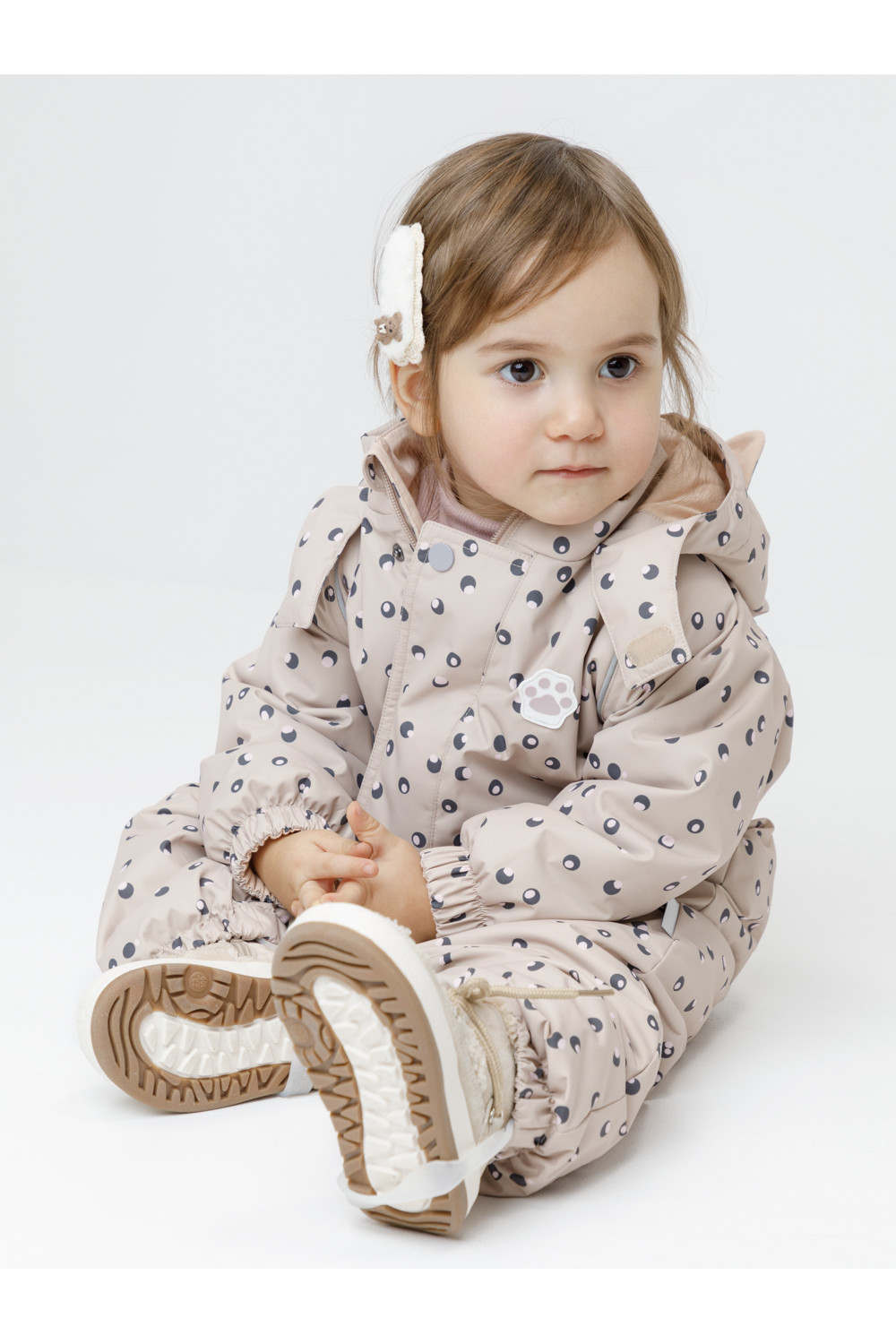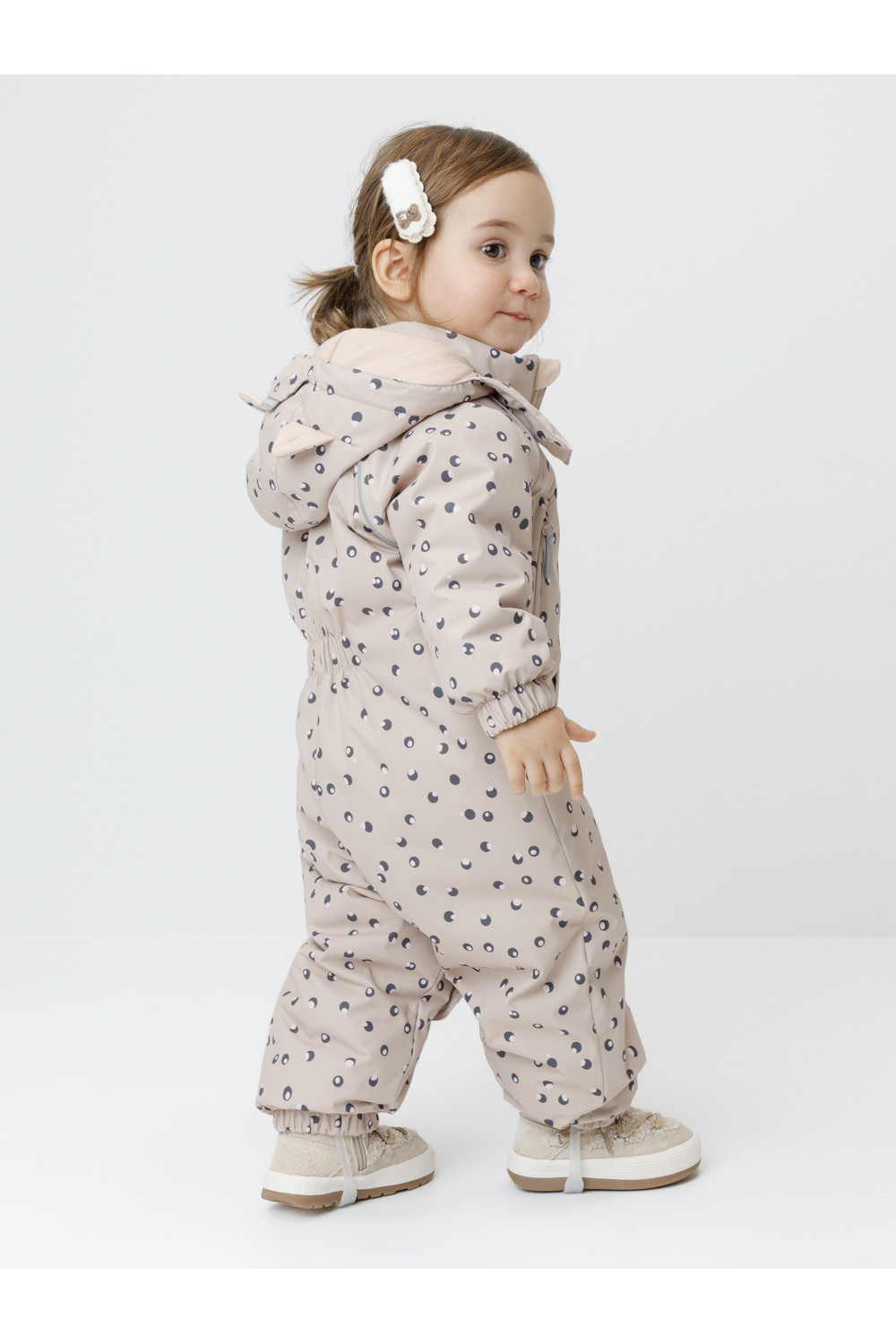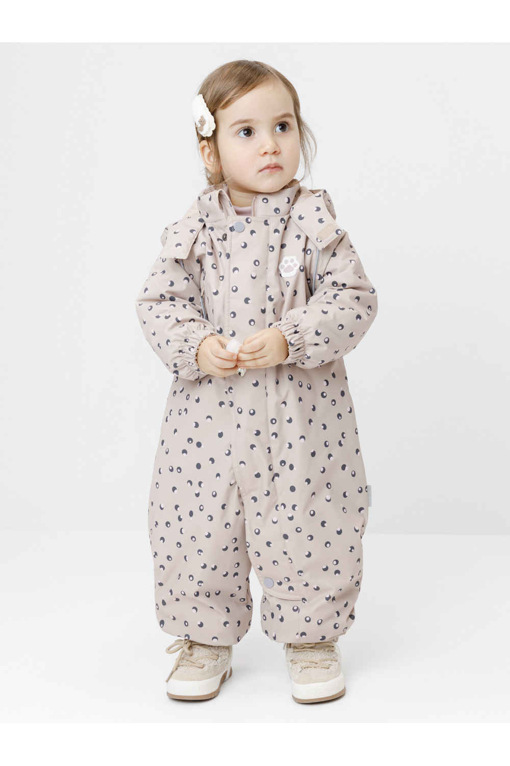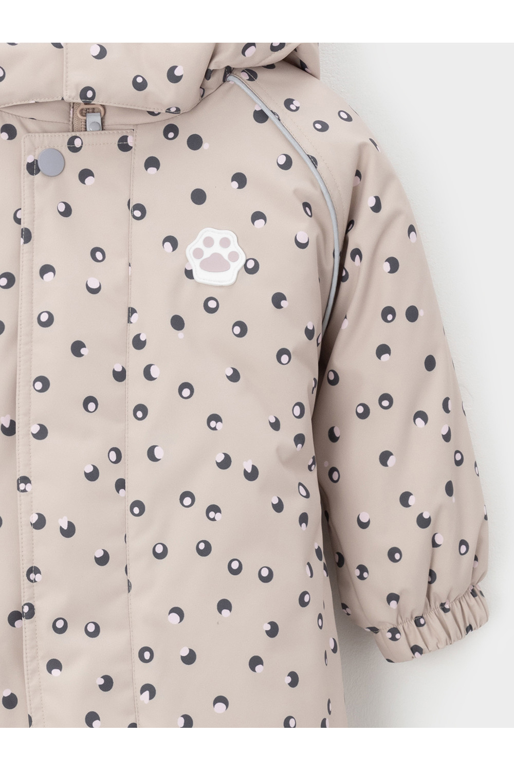 Демисезонный комбинезон ясельный с утеплителем SEE, 120 г/м2. Выполнен из мембранной ткани с дополнительной тефлоновой обработкой. Данный вид обработки предохраняет изделие от загрязнения и лучше отводит влагу. Подклад из 100% хлопка. Для удобного одевания комбинезон застёгивается на удлинённую молнию с защитой подбородка. Ветрозащитная планка фиксируется на липучках и кнопках. Утяжка на капюшоне с потайным стоппером. По низу рукавов и брючин, а также на спинке изделия предусмотрены эластичные резинки для лучшего прилегания. Для фиксации комбинезона используются съёмные силиконовые штрипки. В размерах 68-74 и 74-80 есть функциональные отвороты на рукавах и брючинах. Во всех изделиях верхнего ассортимента для безопасности ребёнка предусмотрены светоотражающие элементы.