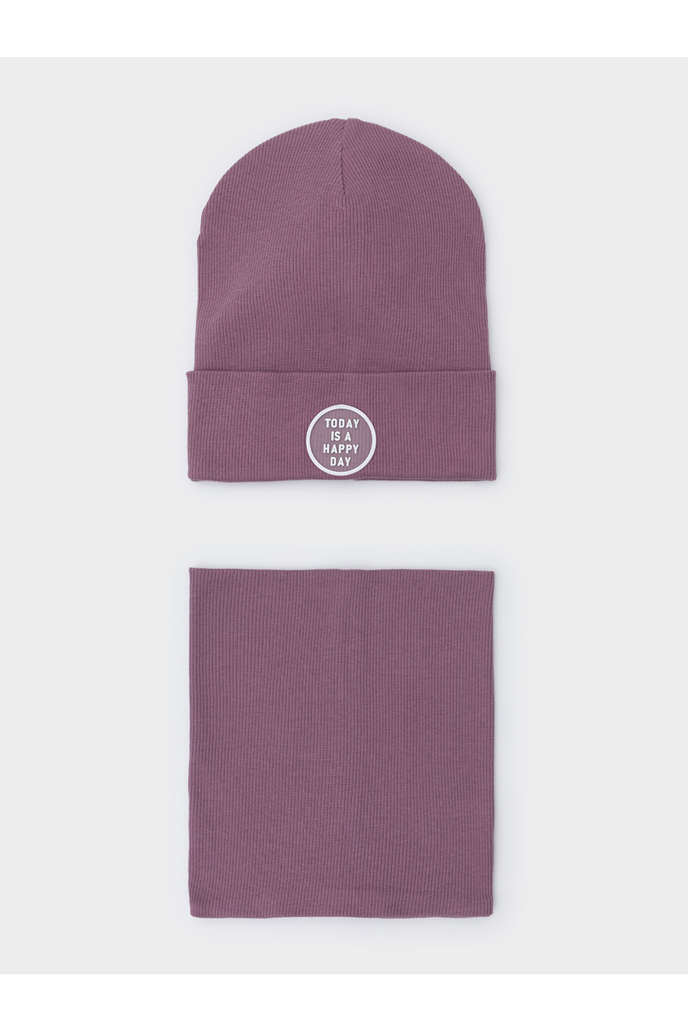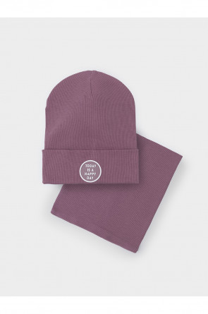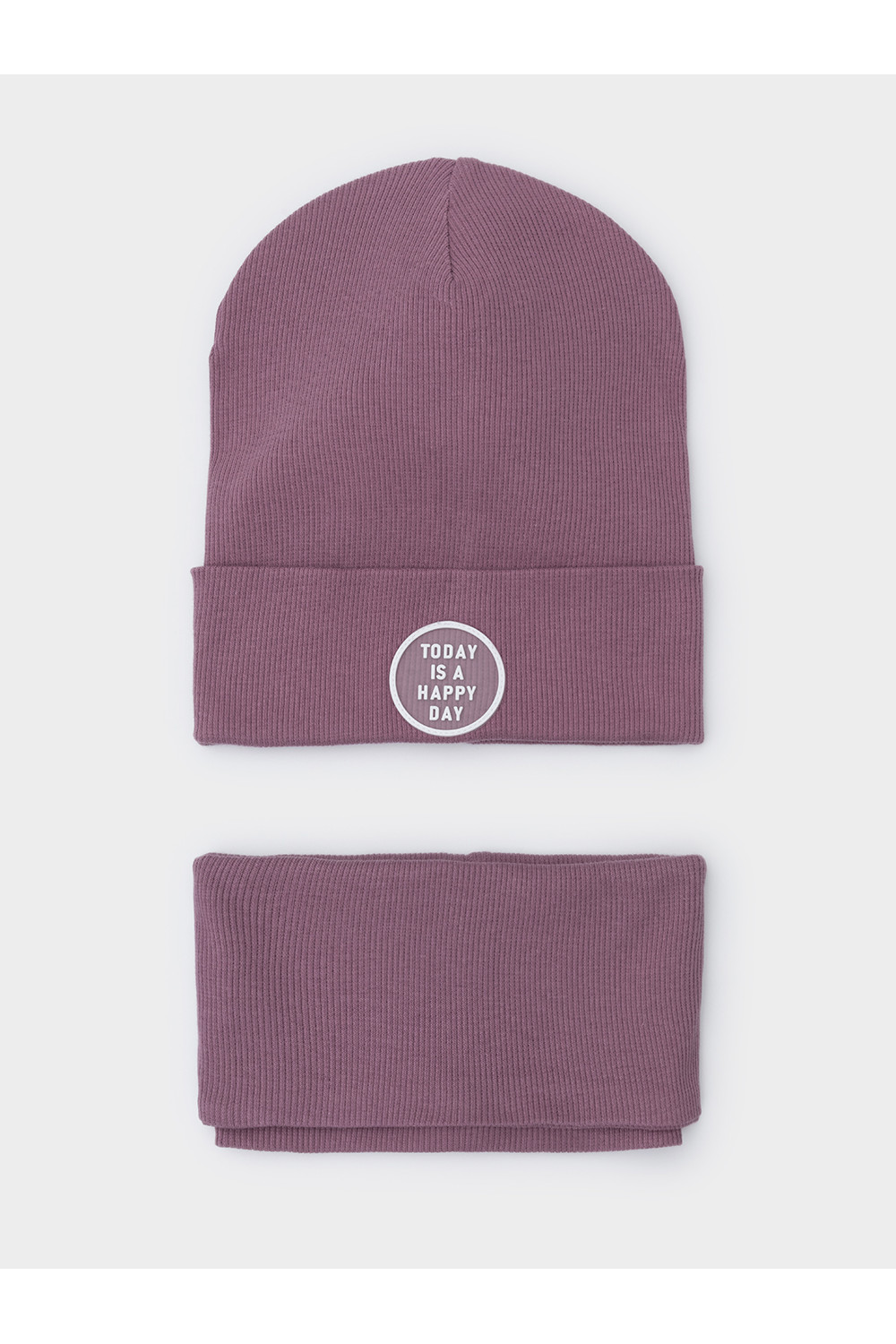 Комплект для девочки: шапка и снуд из хлопкового трикотажа в рубчик с добавлением эластана, окрашенного стойкими гипоаллергенными текстильными красителями. Изделия хорошо тянутся, после многократных стирок сохраняют цвет и форму.